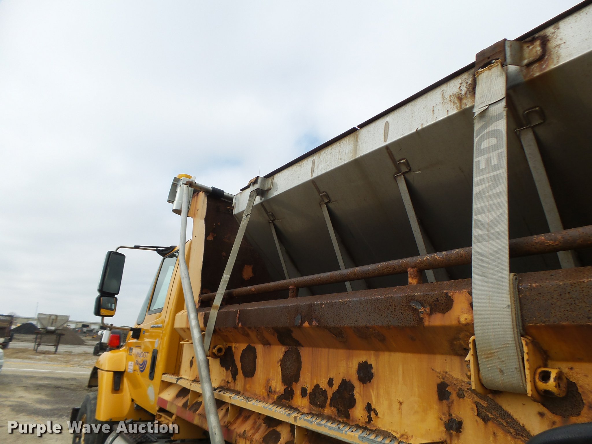 2006 International 7400 dump truck. 156,356 miles on odometer, 8,310 hours on meter, International DT466 7.6L L6 turbo diesel engine, Allison automatic transmission, Single axle, AC and heat, AM/FM, Heated mirrors, Air suspension seat, Brake controller, PTO, Toolboxes, Wheeler HT1624 steel dump bed 10'L x 8'W, 24" side height, Air operated end gate, Single ram hoist, 8' side plow, Flink spreader MODOT ID 3A09265, Single fuel tank, Pintle hitch, Trailer wiring, Spring suspension, Air brakes, 315/80R22.5 front tires, 11R22.5 rear tires, AC clutch may need to be replaced, CB radio not included, Rust, MODOT ID 7418. Missouri title. Title distribution may be delayed up to 14 days from verification of funds. 1HTWDAAR06J204174. Missouri Department of Transportation (MODOT). 26826 US Hwy 63. Macon, MO 63552
