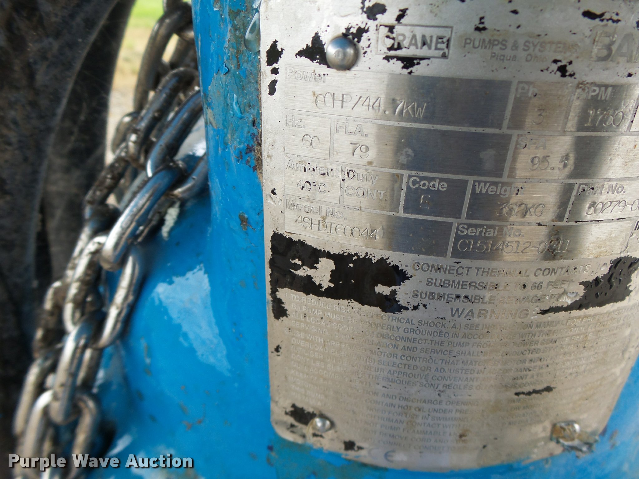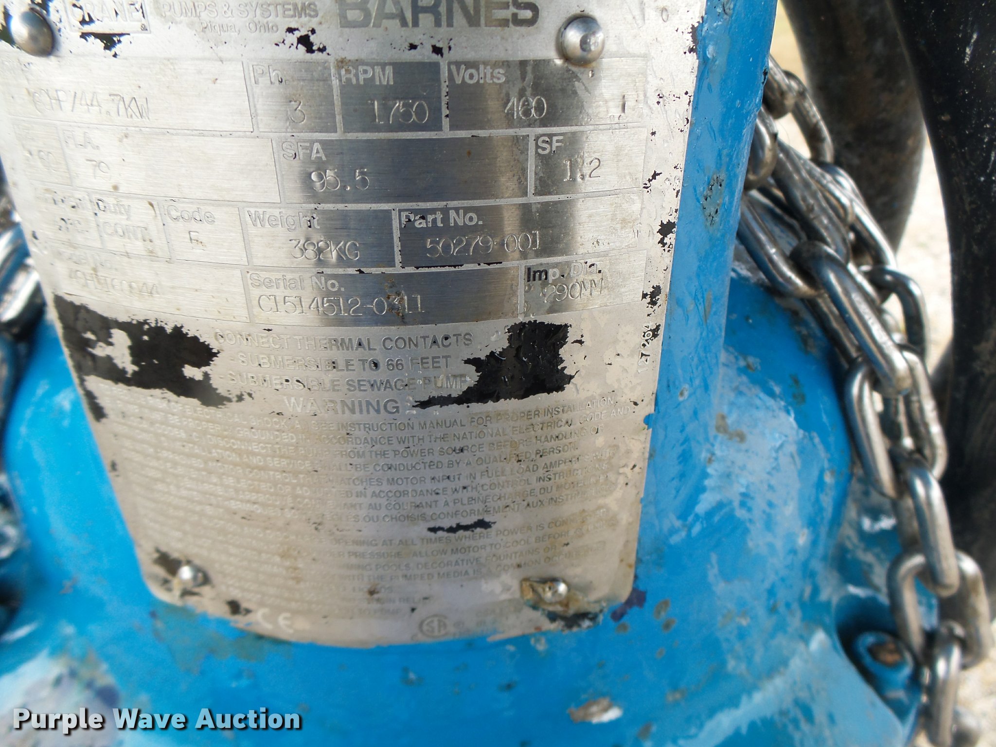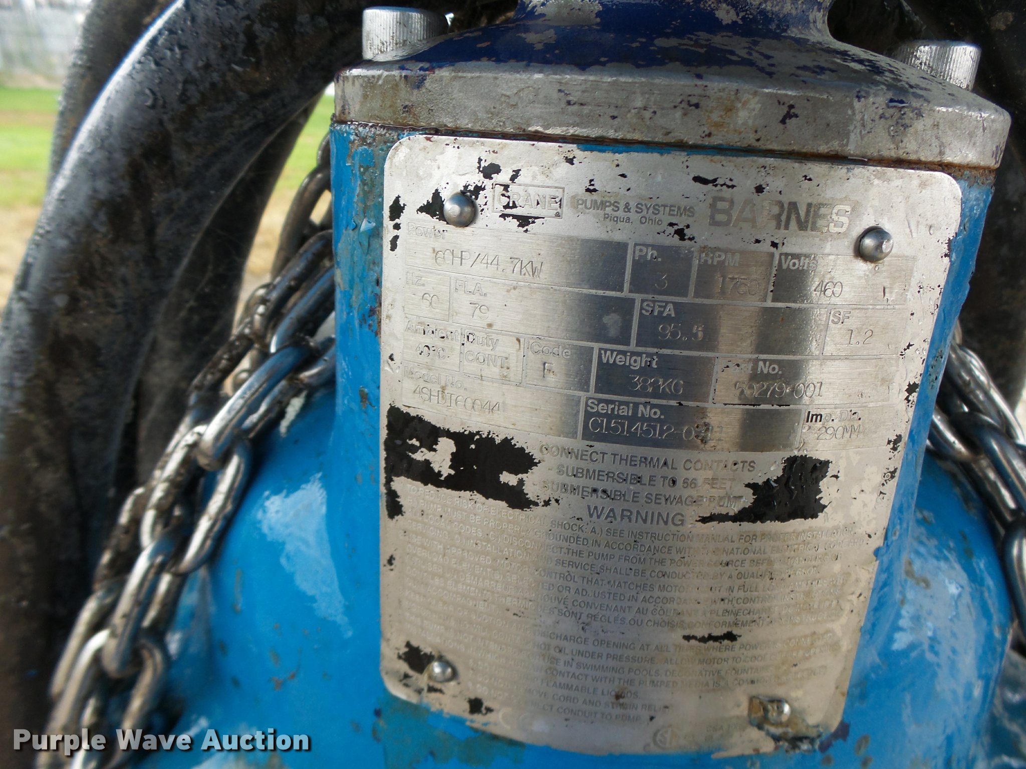 Barnes 4SHDI 60044 pump/grinder. Three phase motor, 40 HP, 60 Hz, 460V. City of Brookfield. 206 N Brunswick. Brookfield, MO 64628