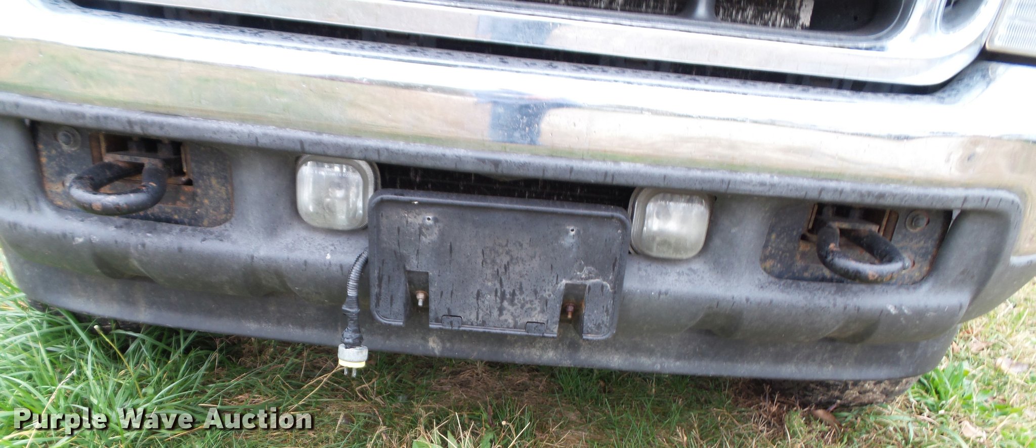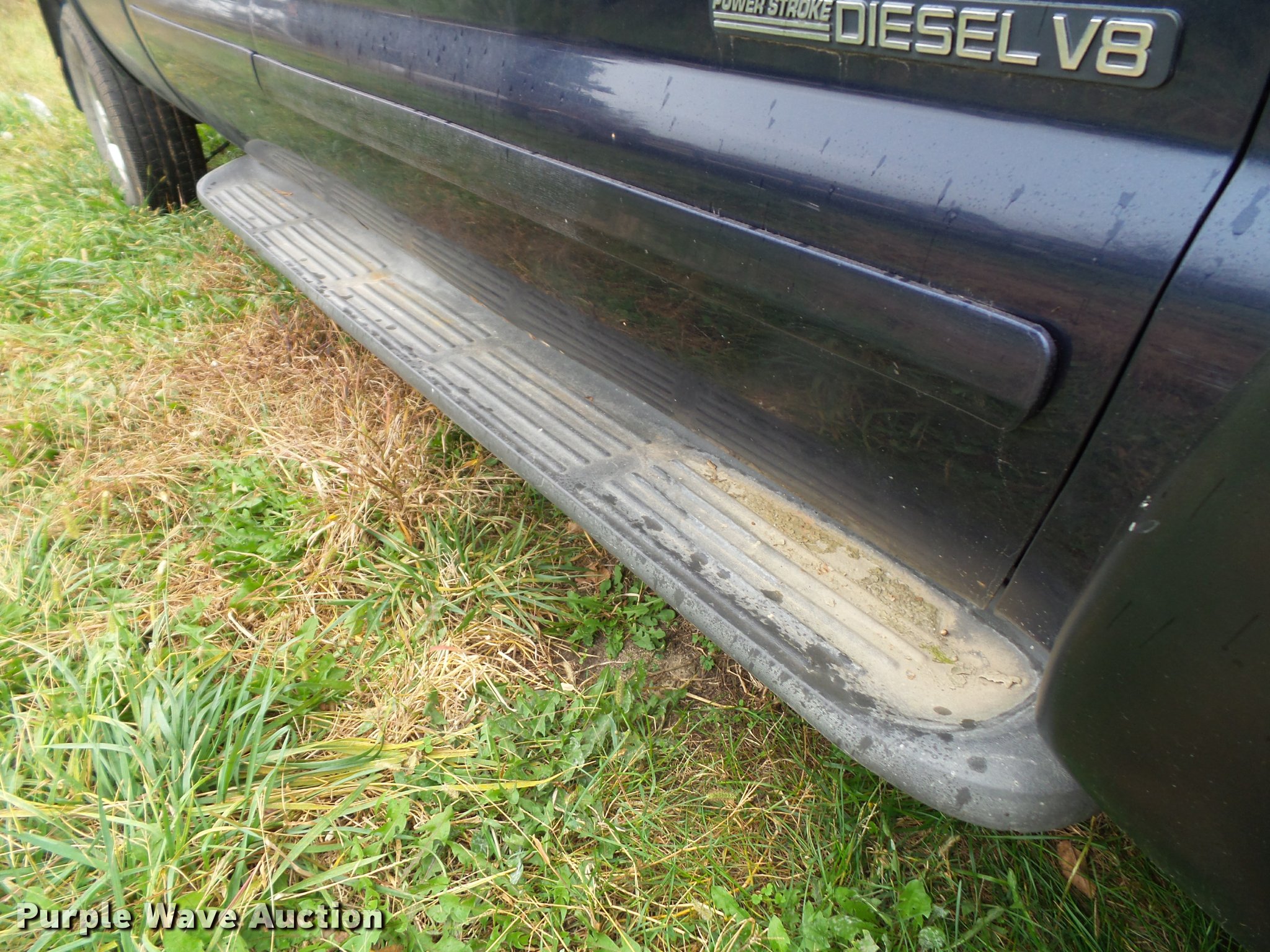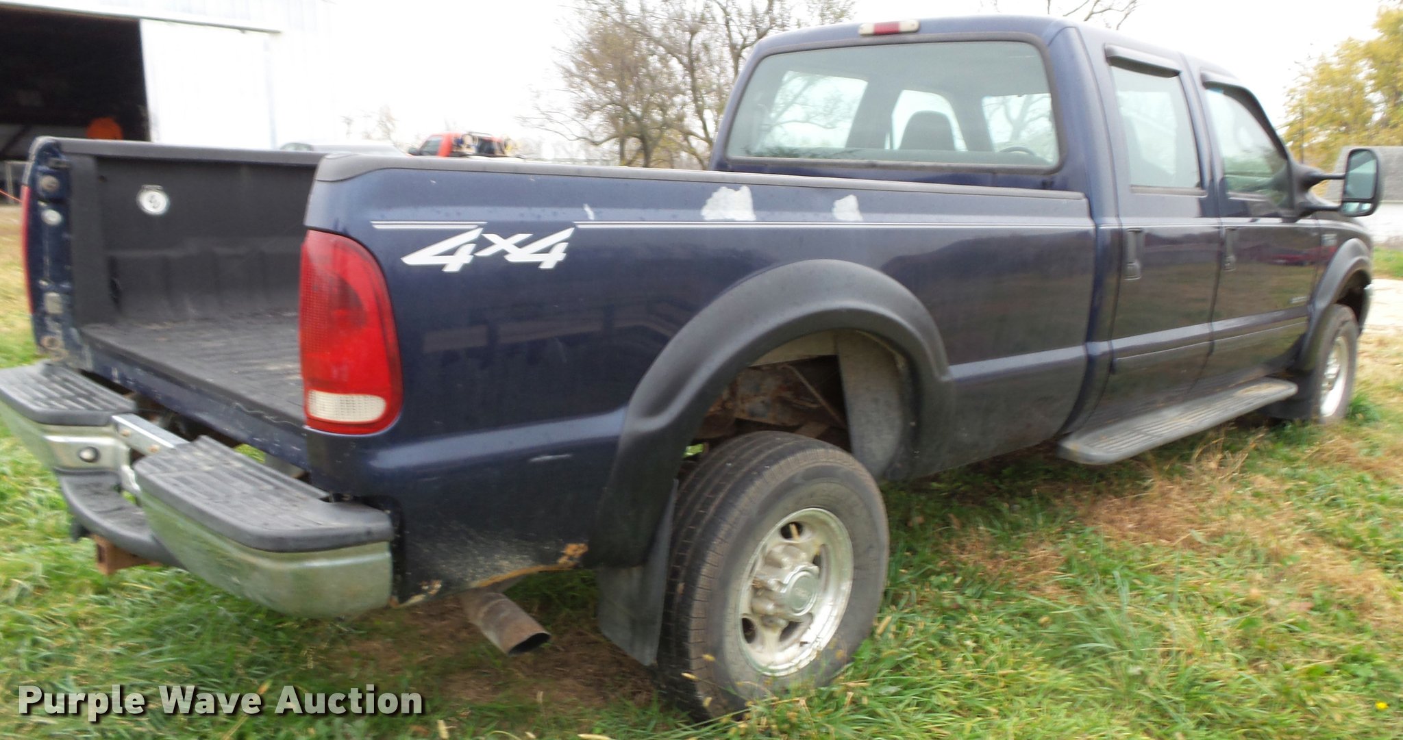 Purple Wave is selling a used 3/4 or 1 Ton Pickup or Van in Kansas. This item is a 2002 Ford F250 Super Duty XLT Crew Cab pickup truck with the following: 268,288 miles on odometer, 7.3L V8 OHV 16V turbo diesel engine, Automatic transmission, Four wheel drive, AC and heat, Tilt, Cruise, AM/FM/CD, Power windows, locks, and mirrors, Cloth interior, Fog lights, Front tow hooks, Running boards, Bed liner, B&M turn over gooseneck hitch, Receiver hitch, Trailer wiring, (7) add-a-leaf springs, 265/75R16 tires, Engine issues, Engine knocks, Oil in antifreeze, No tailgate, Windshield cracked, Paint chipped, Seat torn