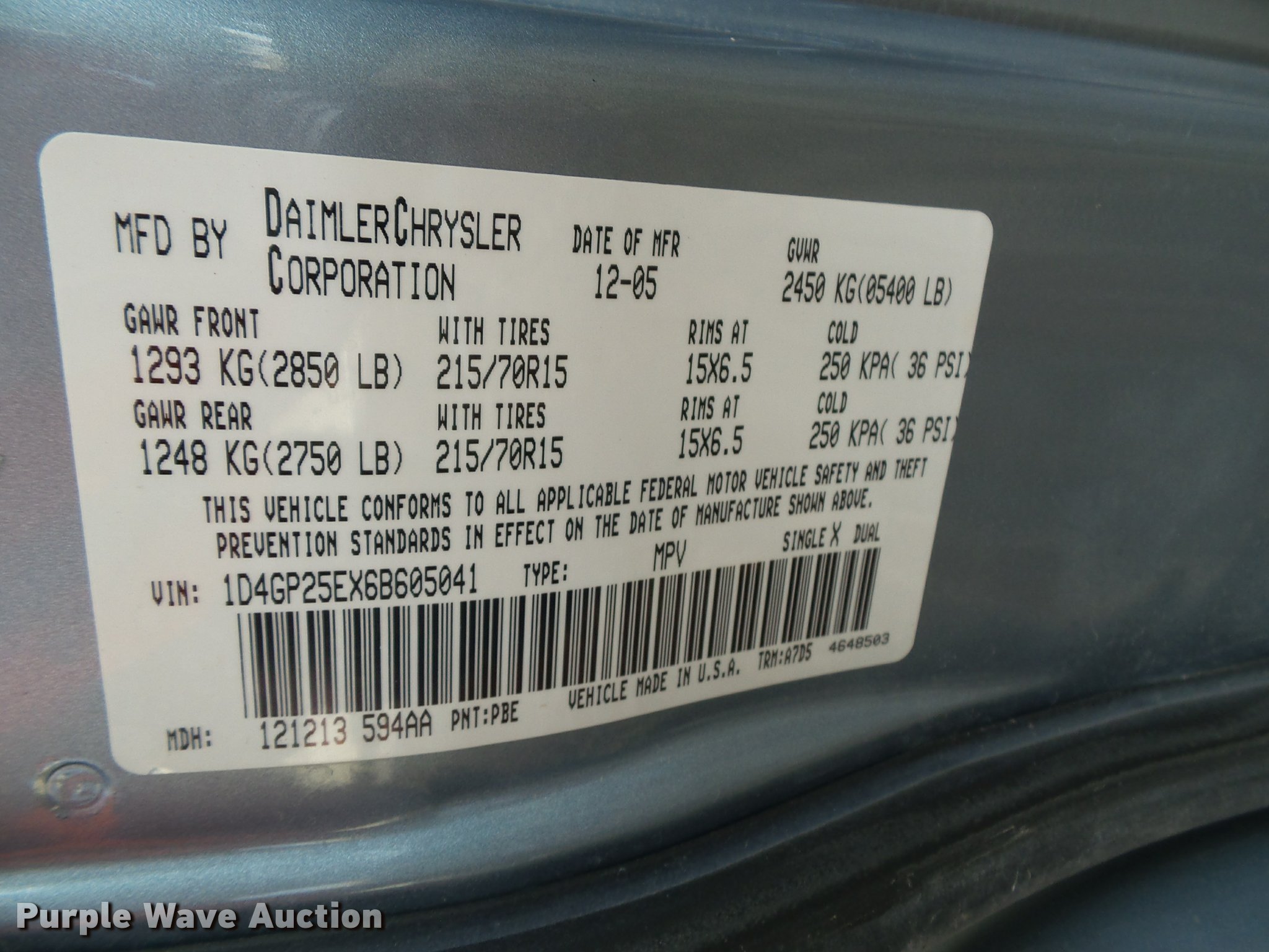 Purple Wave is selling a used Passenger Vehicle in Kansas. This item is a 2006 Dodge Caravan van with the following: 181,994 miles on odometer, 3.3L V6 OHV 12V FFV gas engine, Automatic transmission, AC and heat, Tilt, Cruise, AM/FM/CD, Power windows and locks, Cloth interior, 215/70R15 tires