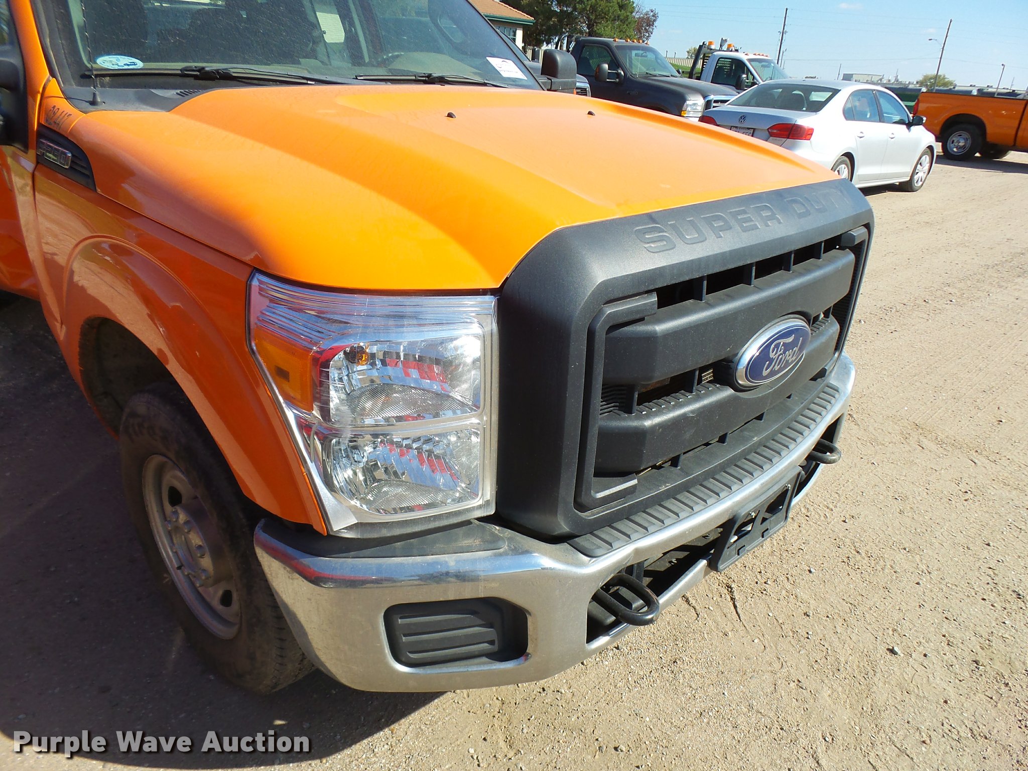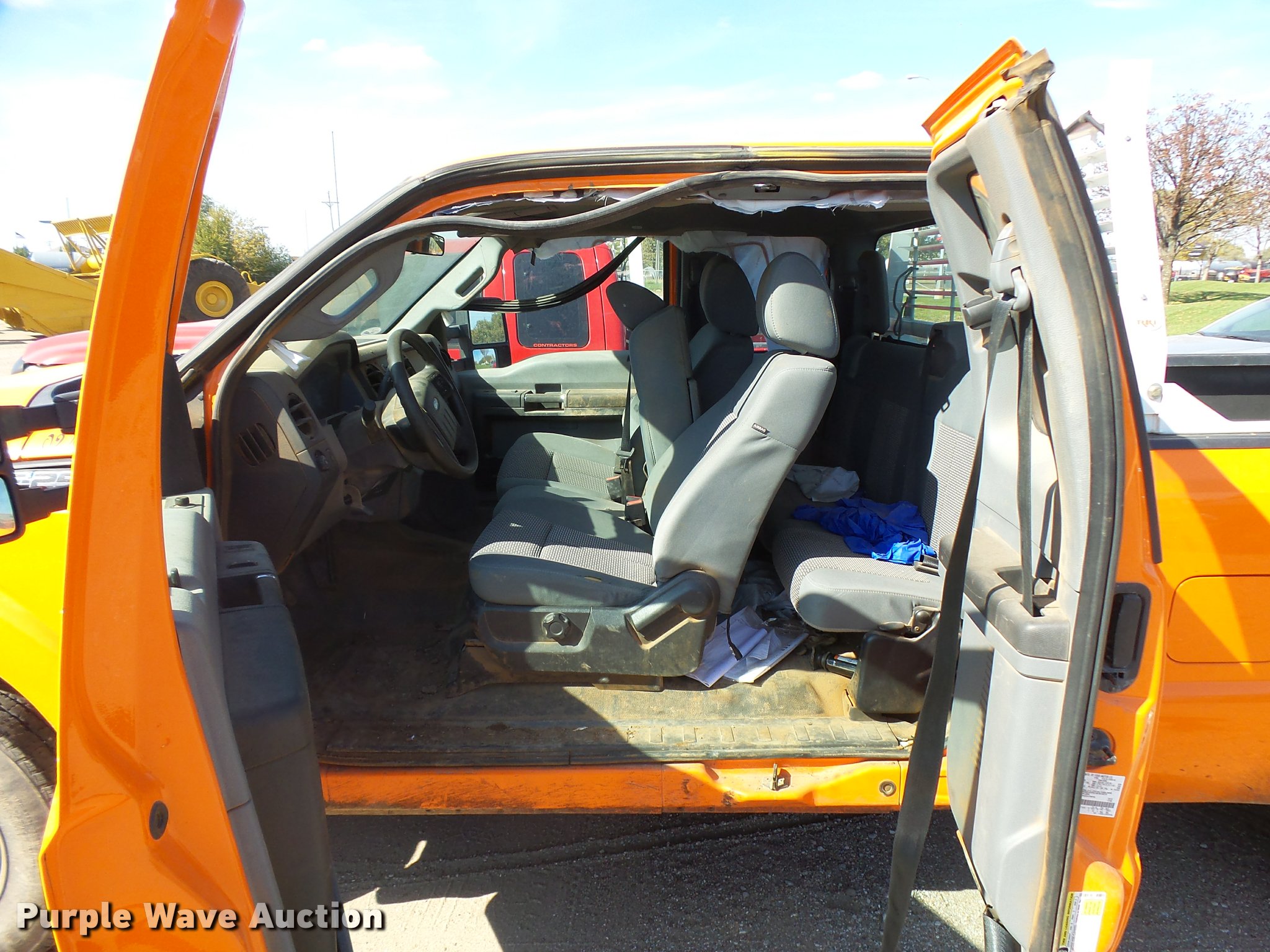 Purple Wave is selling a used 3/4 or 1 Ton Pickup or Van in Kansas. This item is a 2013 Ford F250 Super Duty SuperCab pickup truck with the following: 100,515 miles on odometer, 6.2L V8 OHV 16V gas engine, Automatic transmission, AC and heat, Tilt, Cruise, AM/FM/CD, Power windows, locks, and mirrors, Cloth interior, Front tow hooks, Headache rack, Receiver hitch, Trailer wiring, LT245/75R17 front tires, LT265/70R17 rear tires, Passenger side body damage, Runs rough, Dead battery, Headliner damage, Passenger seat damage, Unit# 02.447