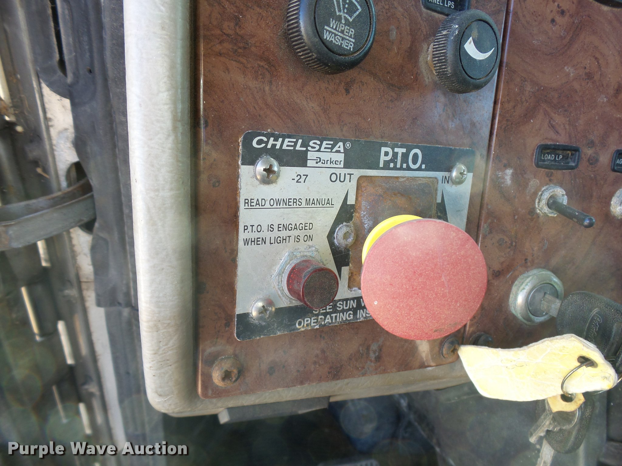 Purple Wave is selling a used Truck Chassis in Kansas. This item is a 2007 Peterbilt 335 truck cab and chassis with the following: 229,692 miles on odometer, Cummins ISC 8.3L L6 diesel engine, 315 HP, Eaton Fuller eight speed manual transmission, Single axle, Full differential lock, AC and heat, Cruise, Panasonic weatherband, Heated mirrors, Air suspension seat, Chelsea PTO, Exterior visor, Dual fuel tanks, 4:10 gear ratio, Spring suspension, Air brakes, 16' from cab to end of chassis, 11R22.5 tires, GVWR 33,000 lbs, Dead battery, Paint peeling, Unknown operating condition
