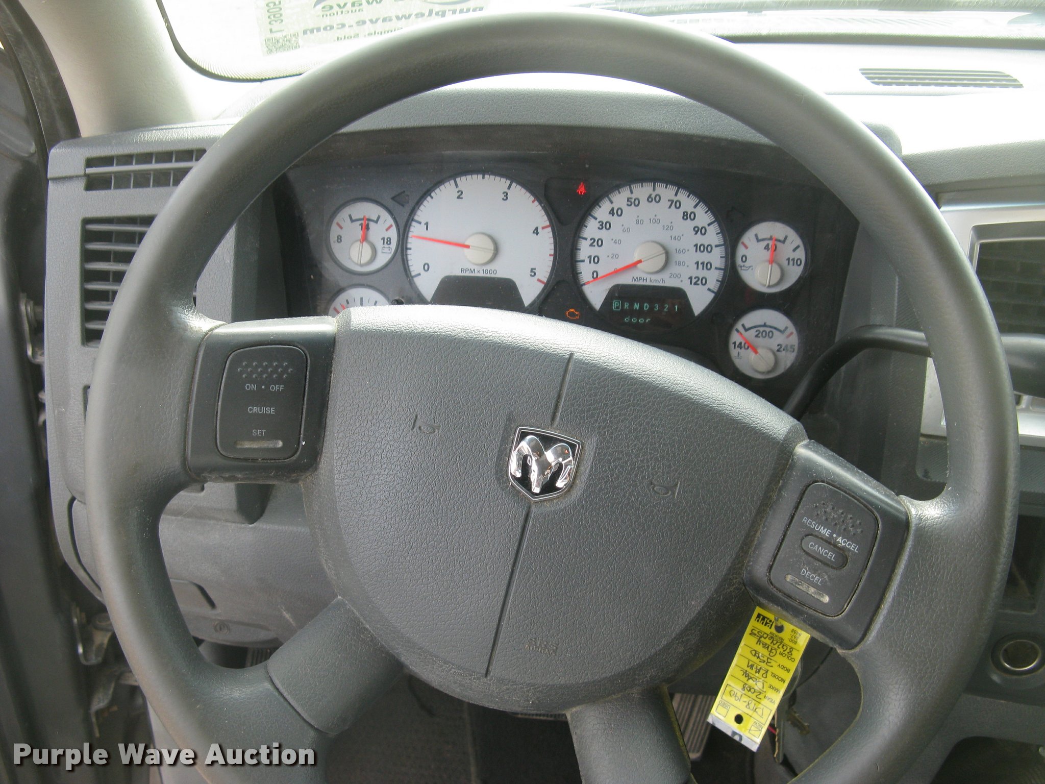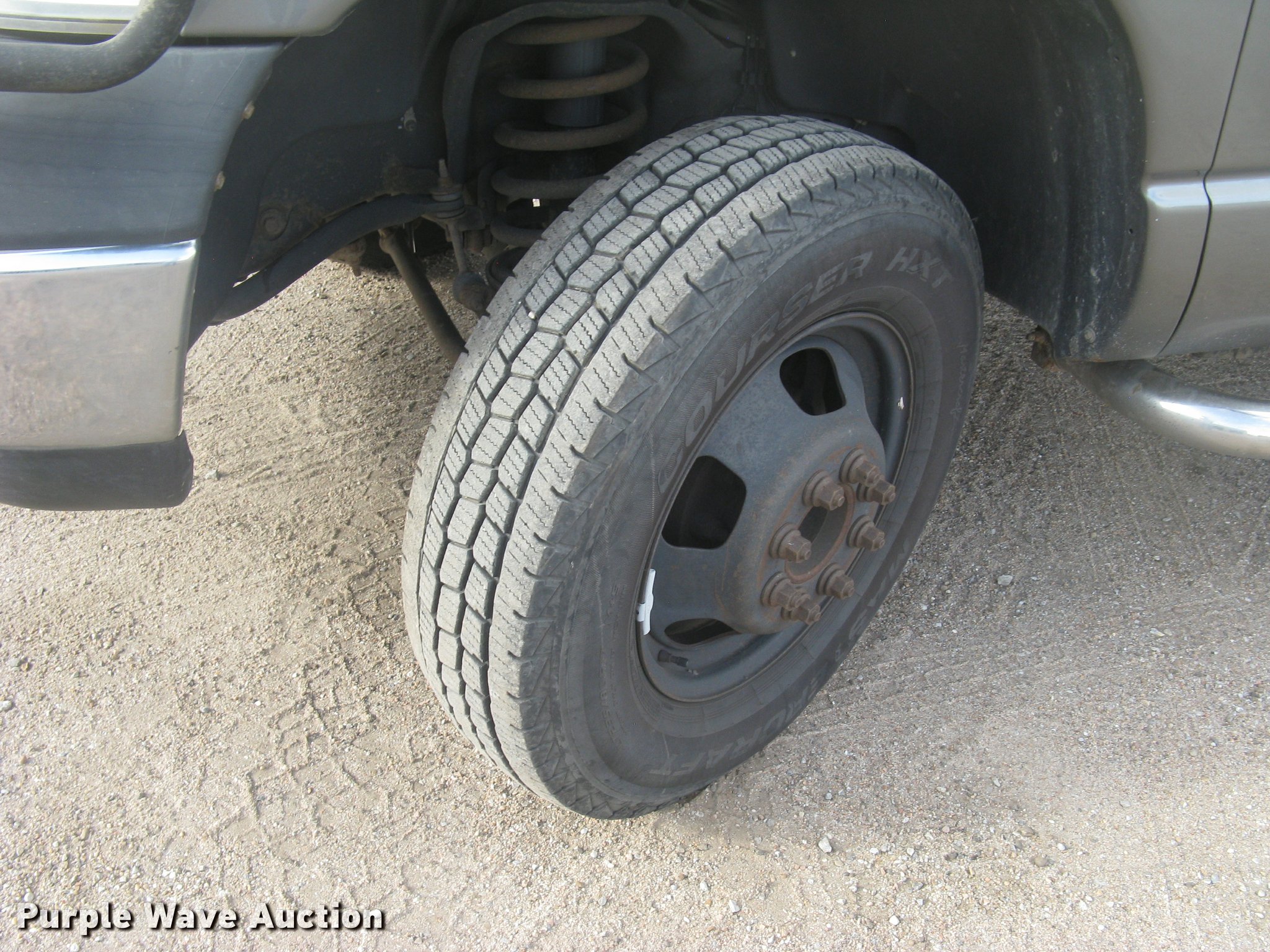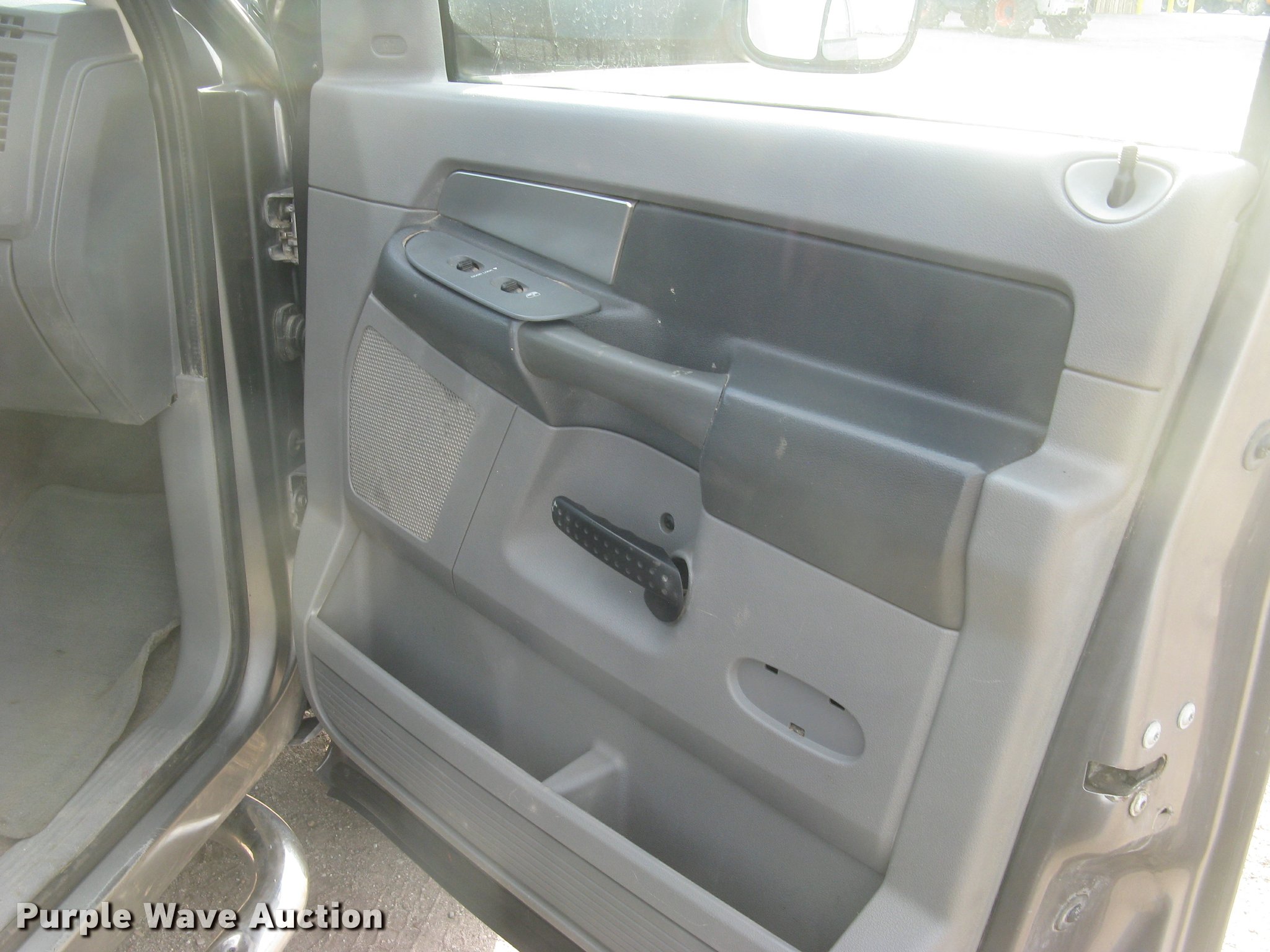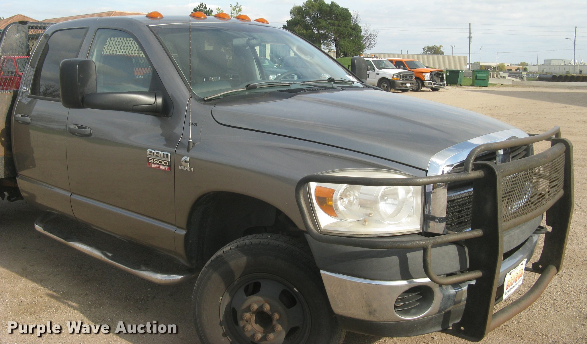 Purple Wave is selling a used 3/4 or 1 Ton Pickup or Van in Kansas. This item is a 2008 Dodge Ram 3500HD SLT Quad Cab flatbed pickup truck with the following: 232,139 miles on odometer, 6.7L L6 OHV 24V diesel engine, Automatic transmission, AC and heat, Tilt, Cruise, AM/FM/CD, Power windows, locks, and mirrors, Cloth interior, Trailer brake controller, Front tow hooks, Running boards, Brush bumper, 9.5'L x 8'W flatbed, Gooseneck ball, Receiver hitch, Trailer wiring, LT235/80R17 tires, Check engine light on, Unit# 04.21C