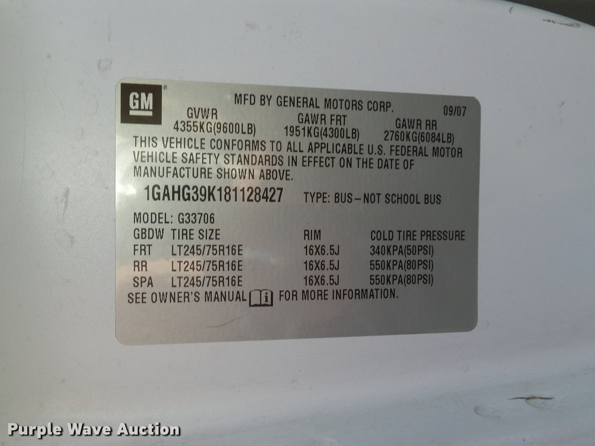 Purple Wave is selling a used 3/4 or 1 Ton Pickup or Van in Missouri. This item is a 2008 Chevrolet Express van with the following: 279,651 miles on odometer, 6.0L V8 OHV 16V gas engine, Automatic transmission, AC and heat, Tilt, Cruise, AM/FM, Power windows, locks, and mirrors, Vinyl interior, 245/75R16 tires, Passenger door dented, TPMS light is on, MODOT ID 8075