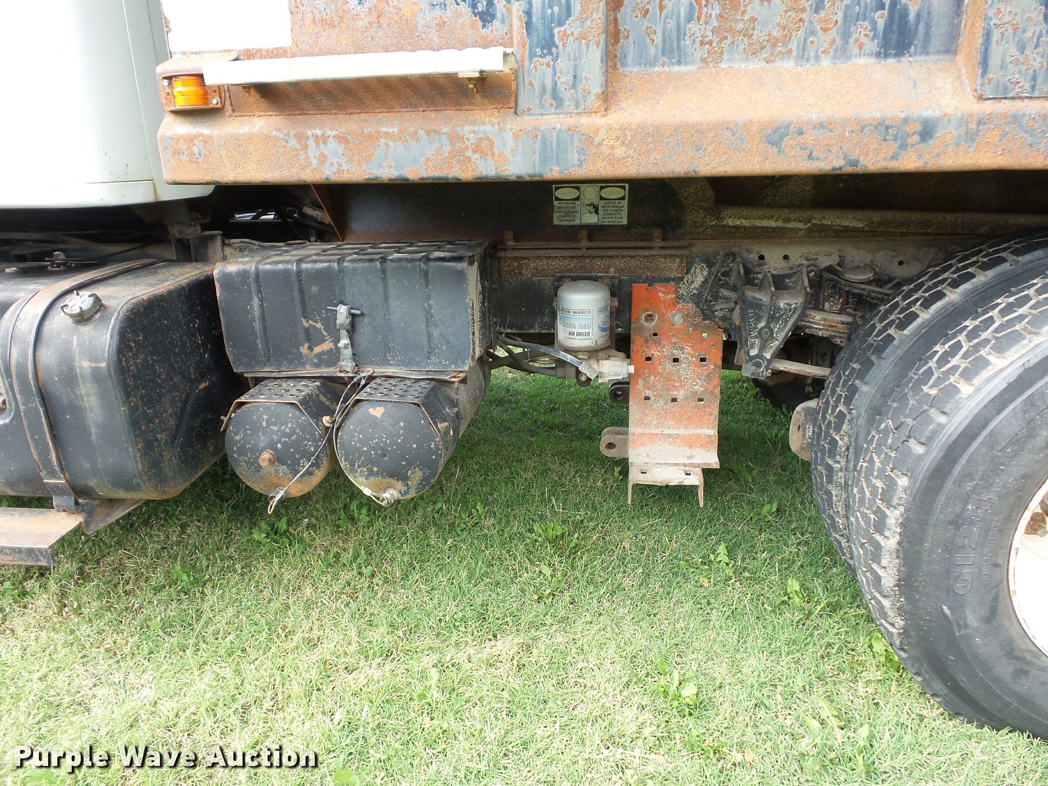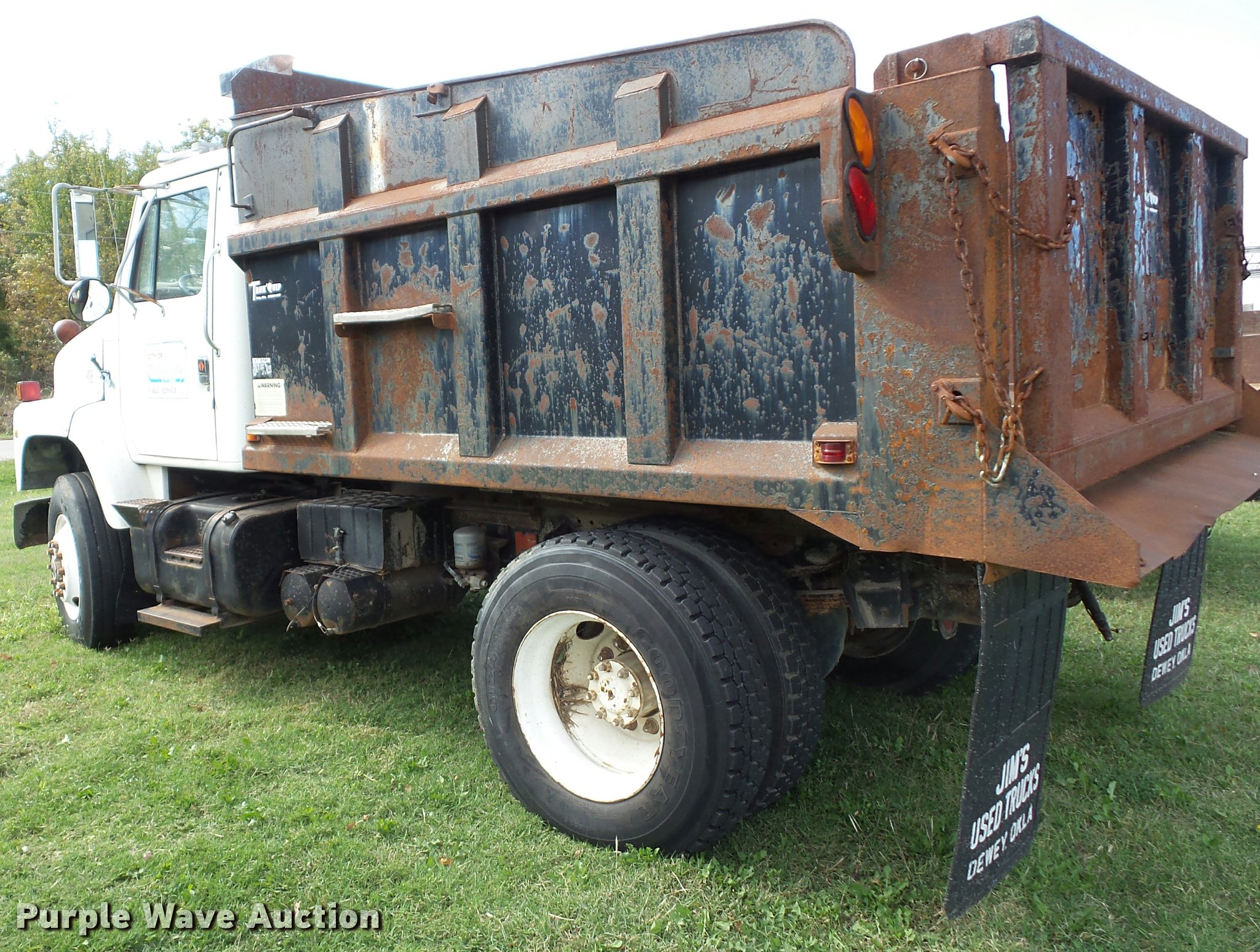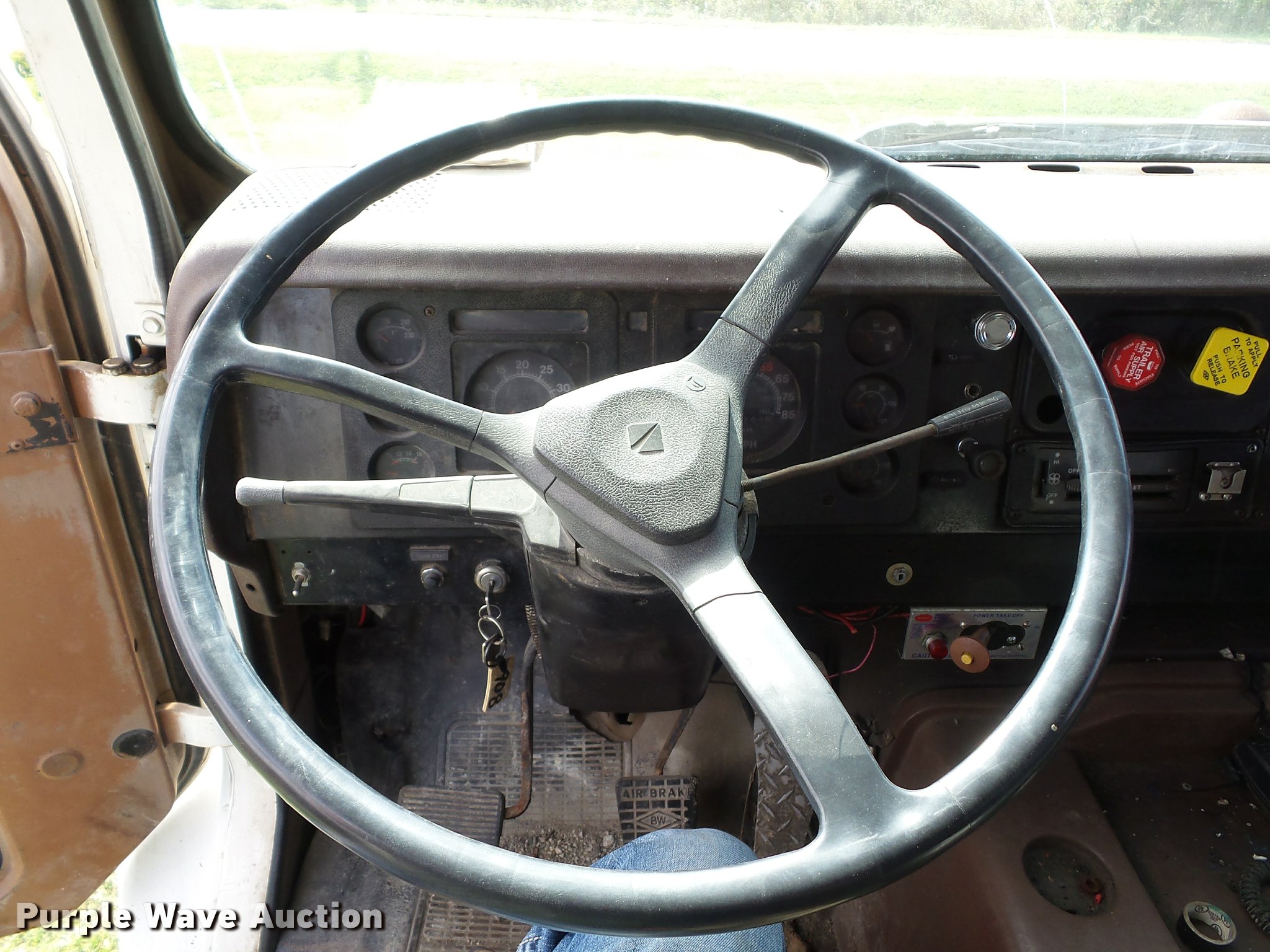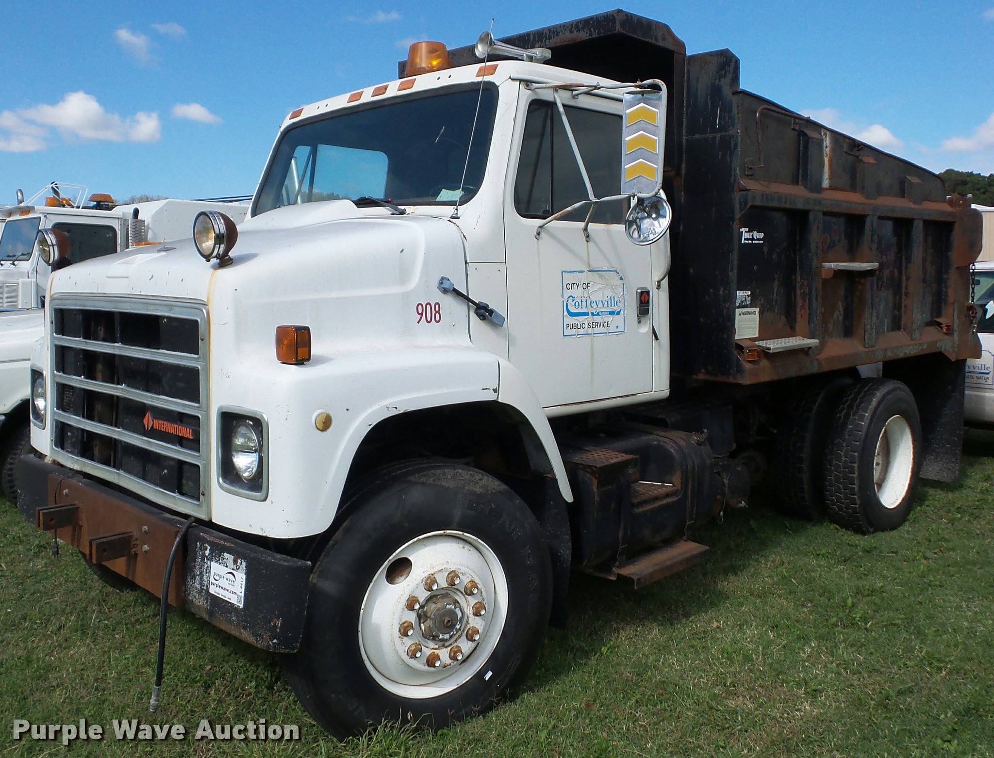 Purple Wave is selling a used Construction Dump Truck in Kansas. This item is a 1987 International S2300 dump truck with the following: 528,203 miles on odometer, Cummins L10 10.0L L6 turbo diesel engine, Manual transmission, Single axle, 10'L x 8'W dump bed, Pintle hitch, Spring suspension, Air brakes, 11R22.5 tires, GVWR 29,900 lbs, Dead battery, Unit has to be jump started