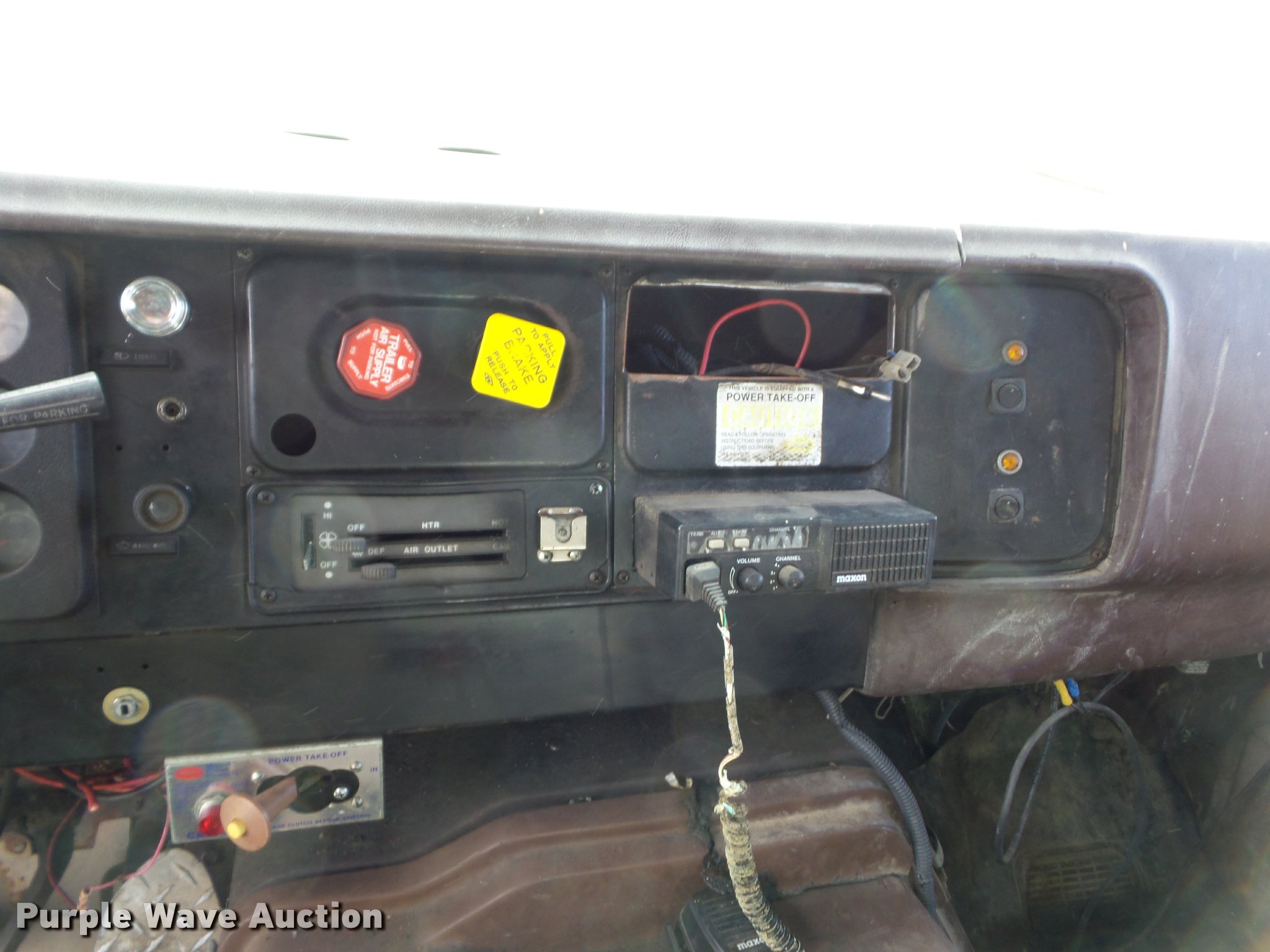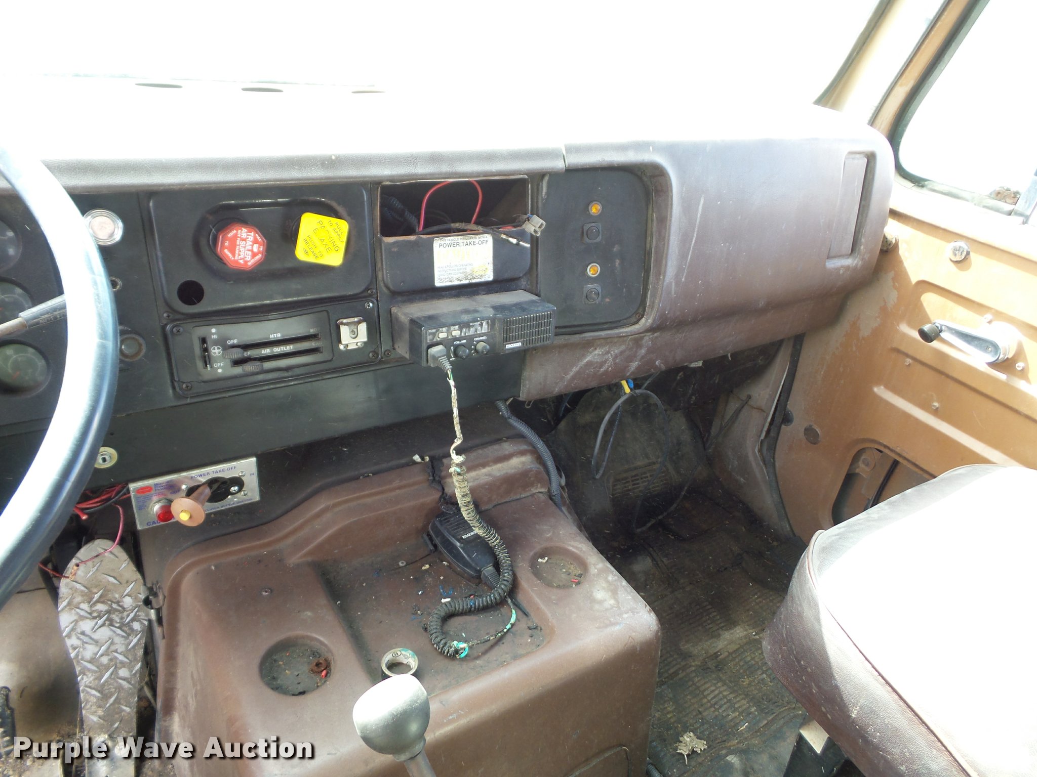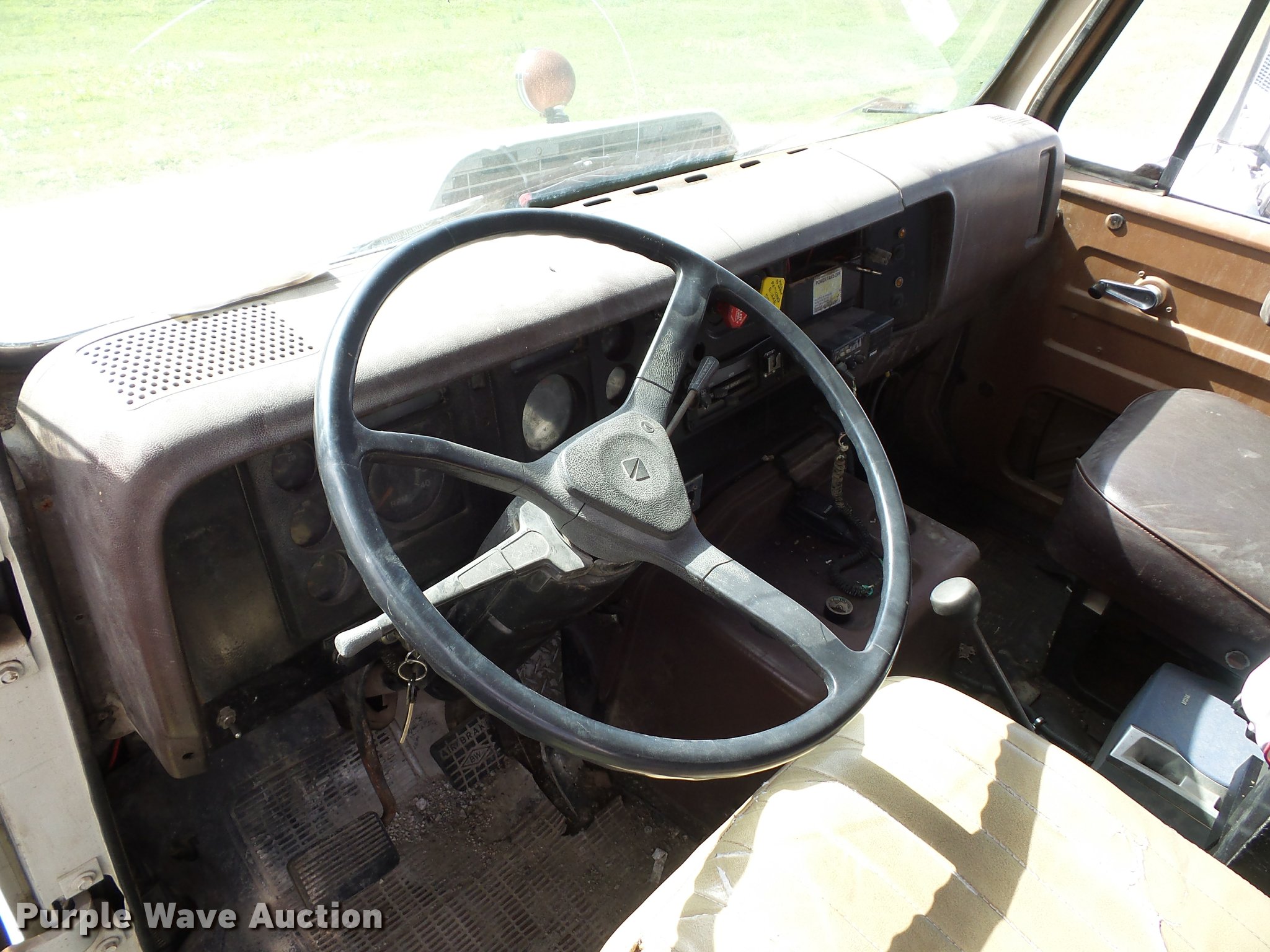 Purple Wave is selling a used Construction Dump Truck in Kansas. This item is a 1987 International S2300 dump truck with the following: 528,203 miles on odometer, Cummins L10 10.0L L6 turbo diesel engine, Manual transmission, Single axle, 10'L x 8'W dump bed, Pintle hitch, Spring suspension, Air brakes, 11R22.5 tires, GVWR 29,900 lbs, Dead battery, Unit has to be jump started