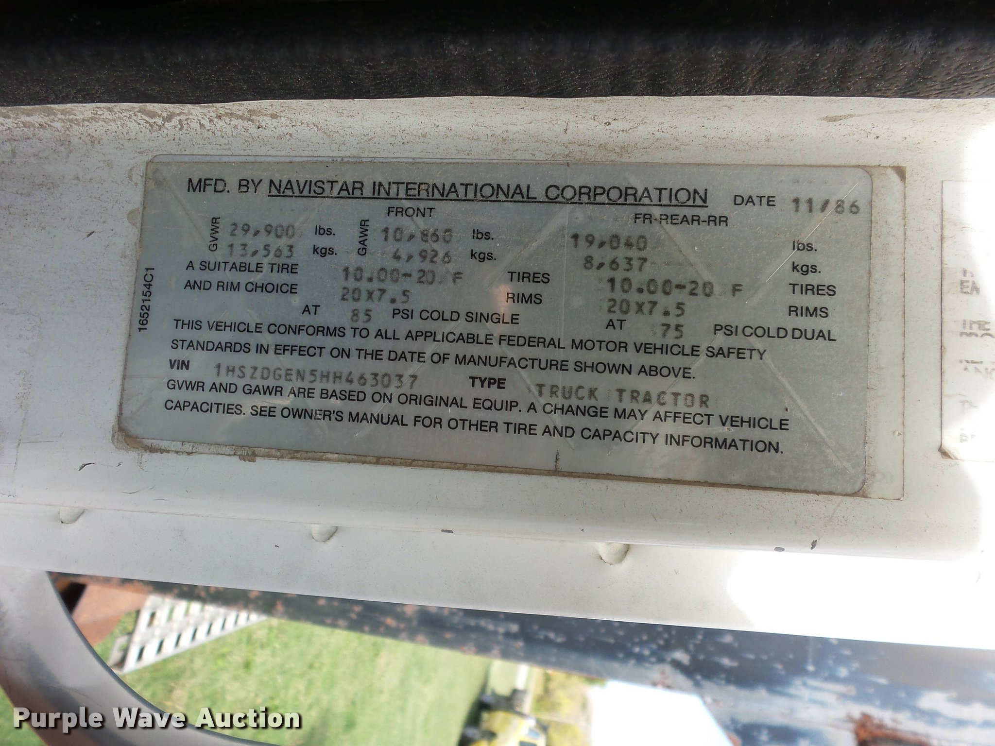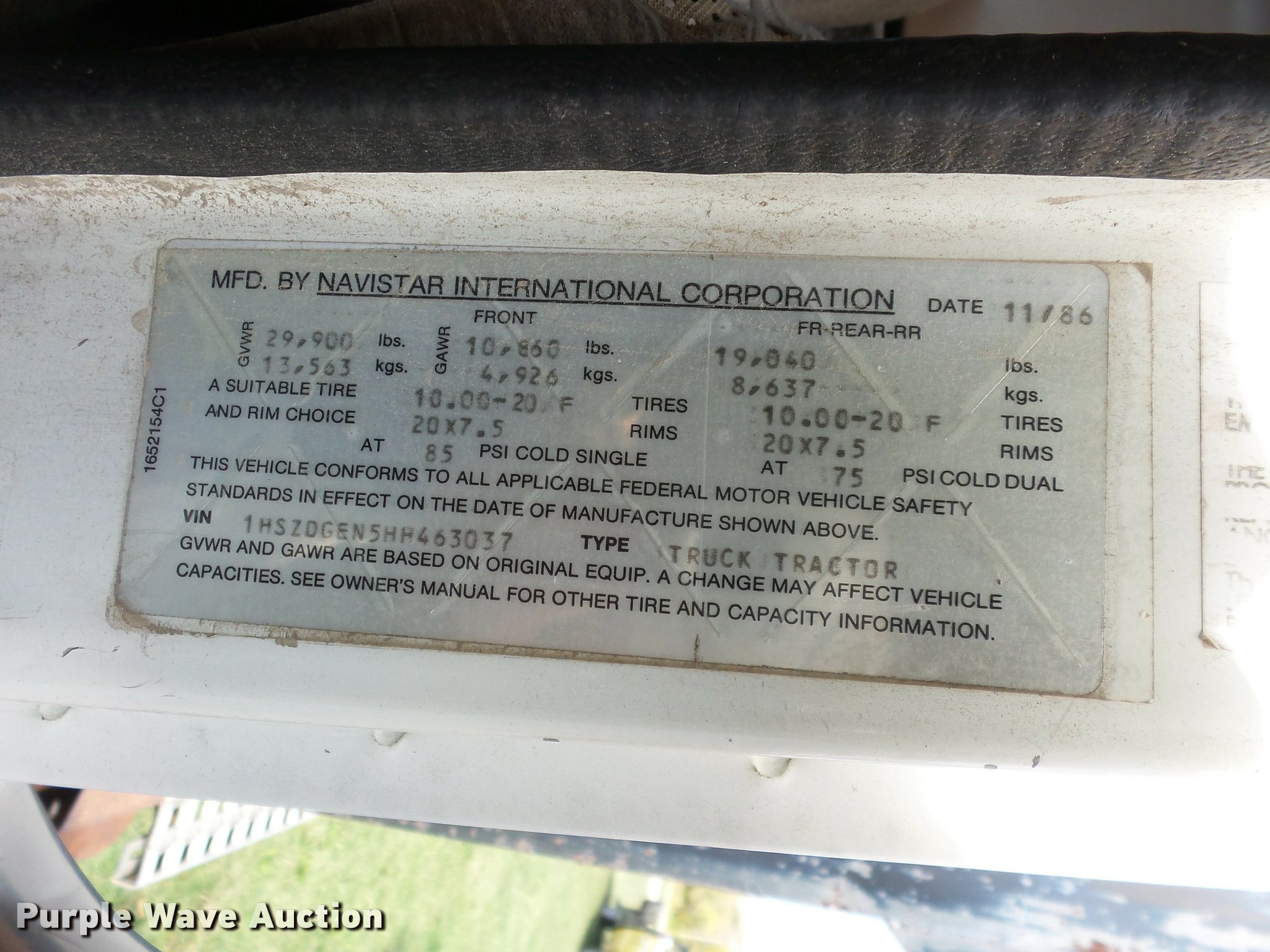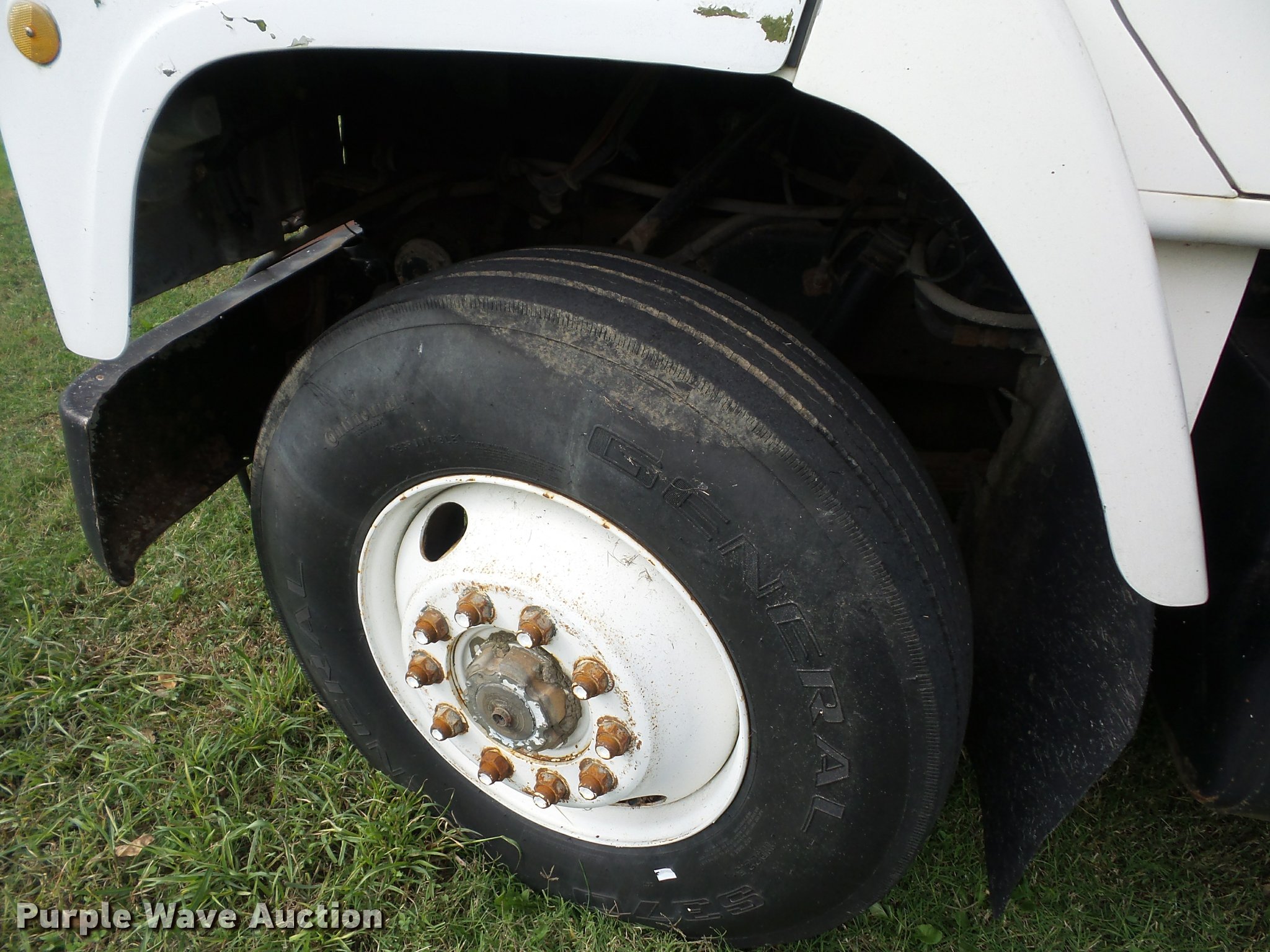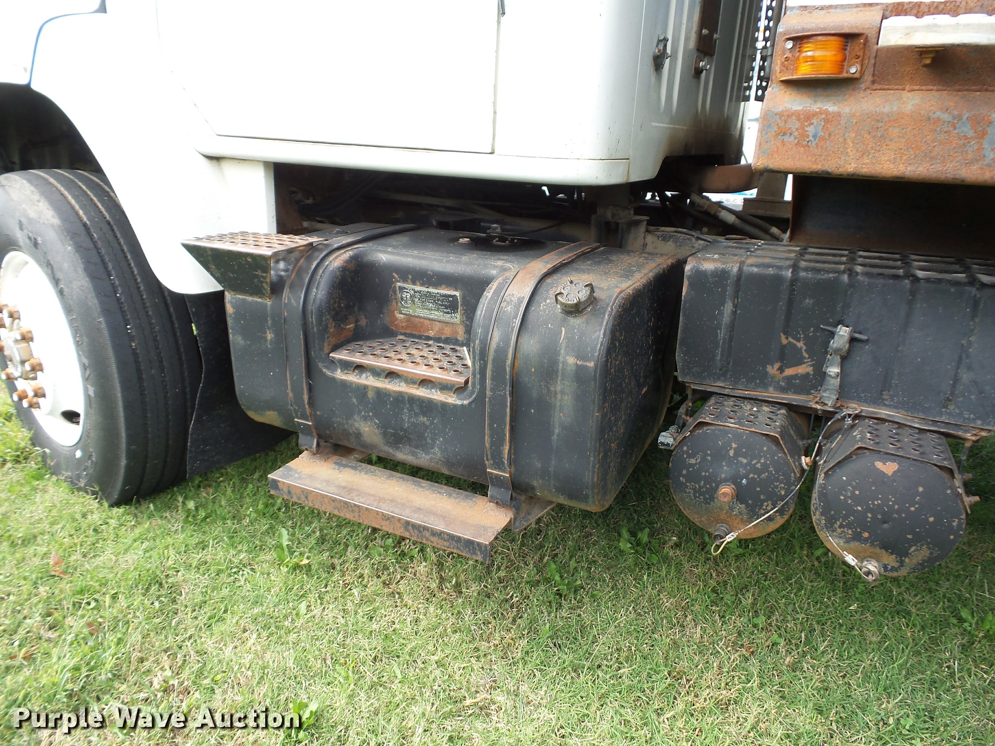 Purple Wave is selling a used Construction Dump Truck in Kansas. This item is a 1987 International S2300 dump truck with the following: 528,203 miles on odometer, Cummins L10 10.0L L6 turbo diesel engine, Manual transmission, Single axle, 10'L x 8'W dump bed, Pintle hitch, Spring suspension, Air brakes, 11R22.5 tires, GVWR 29,900 lbs, Dead battery, Unit has to be jump started