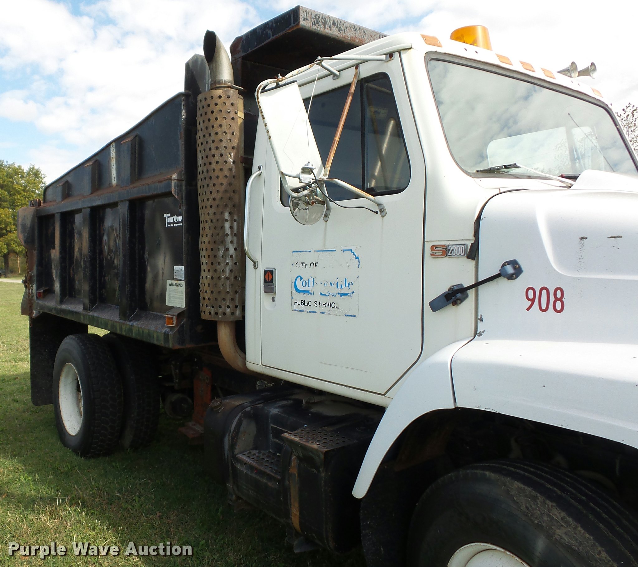 1987 International S2300 dump truck. 528,203 miles on odometer, Cummins L10 10.0L L6 turbo diesel engine, Manual transmission, Single axle, 10'L x 8'W dump bed, Pintle hitch, Spring suspension, Air brakes, 11R22.5 tires, GVWR 29,900 lbs, Dead battery, Unit has to be jump started. Kansas title. 1HSZDGEN5HH463037. City of Coffeyville. 1106 Stark. Coffeyville, KS 67337