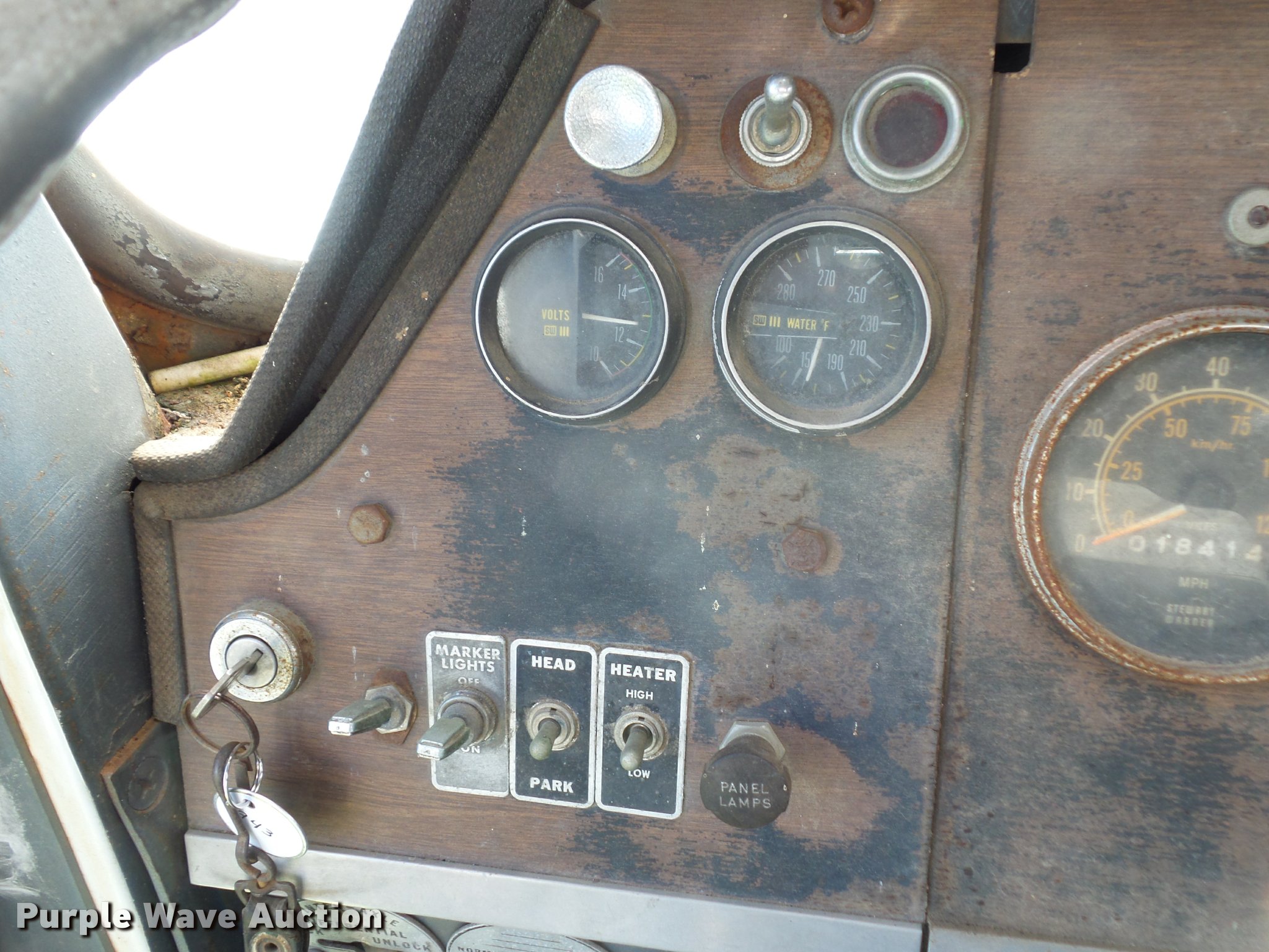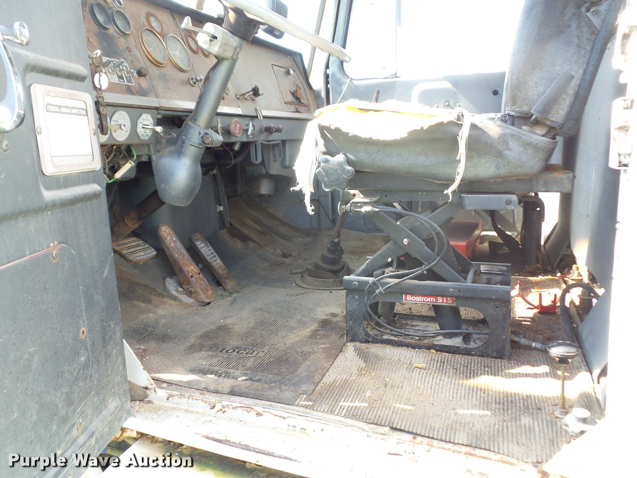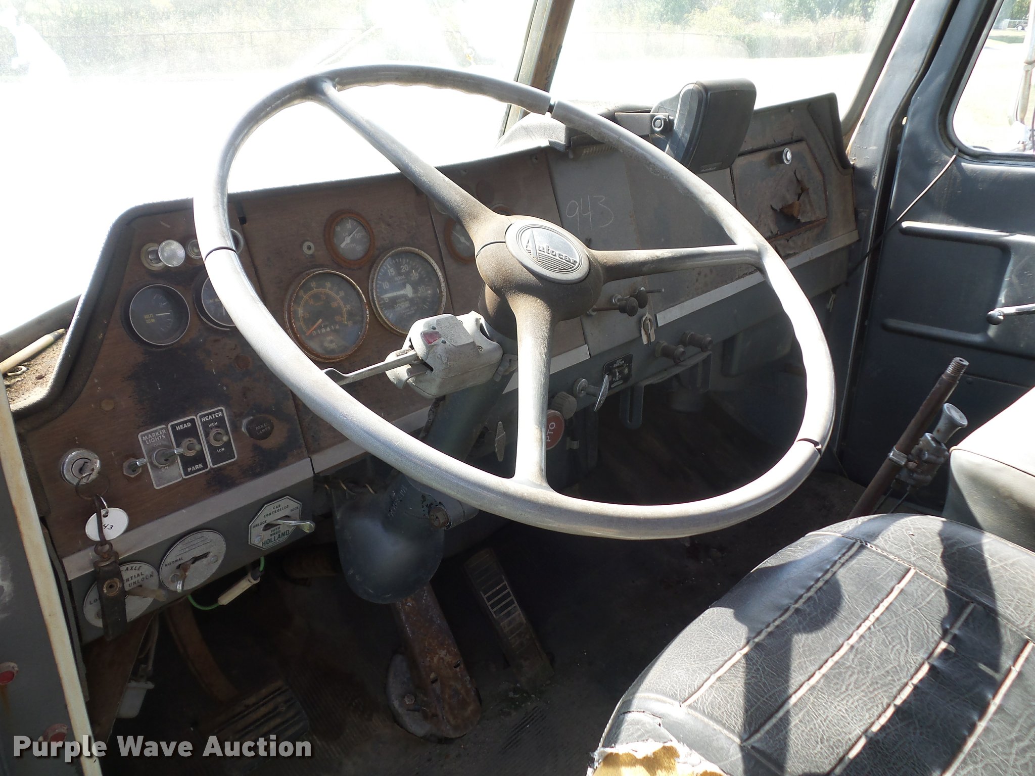 Purple Wave is selling a used Rollback or Tow Truck in Kansas. This item is a 1965 Autocar tow truck with the following: 18,414 miles on odometer, 9,877 hours on meter, Six cylinder turbo diesel engine, Manual transmission, Tandem axle, Heat, Air suspension seat, PTO, Rear hydraulic outriggers, Spring suspension, Air brakes, 11R24.5 tires, Dead battery, Cracked windshield, Unit has to be jump started