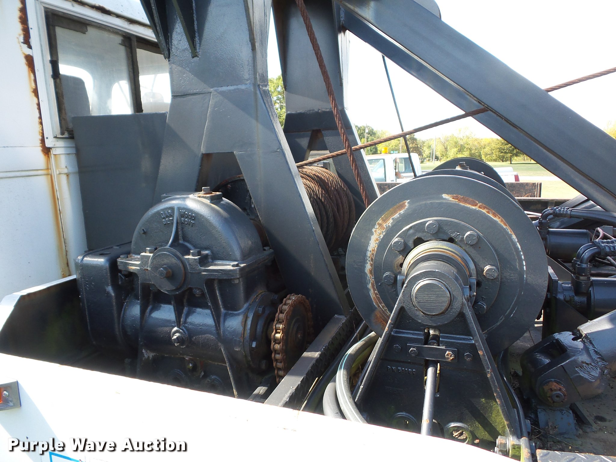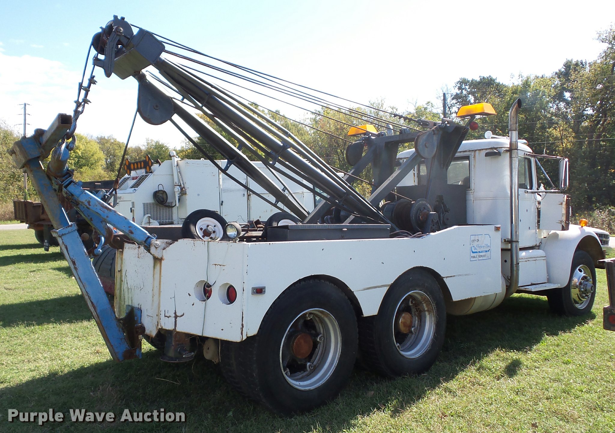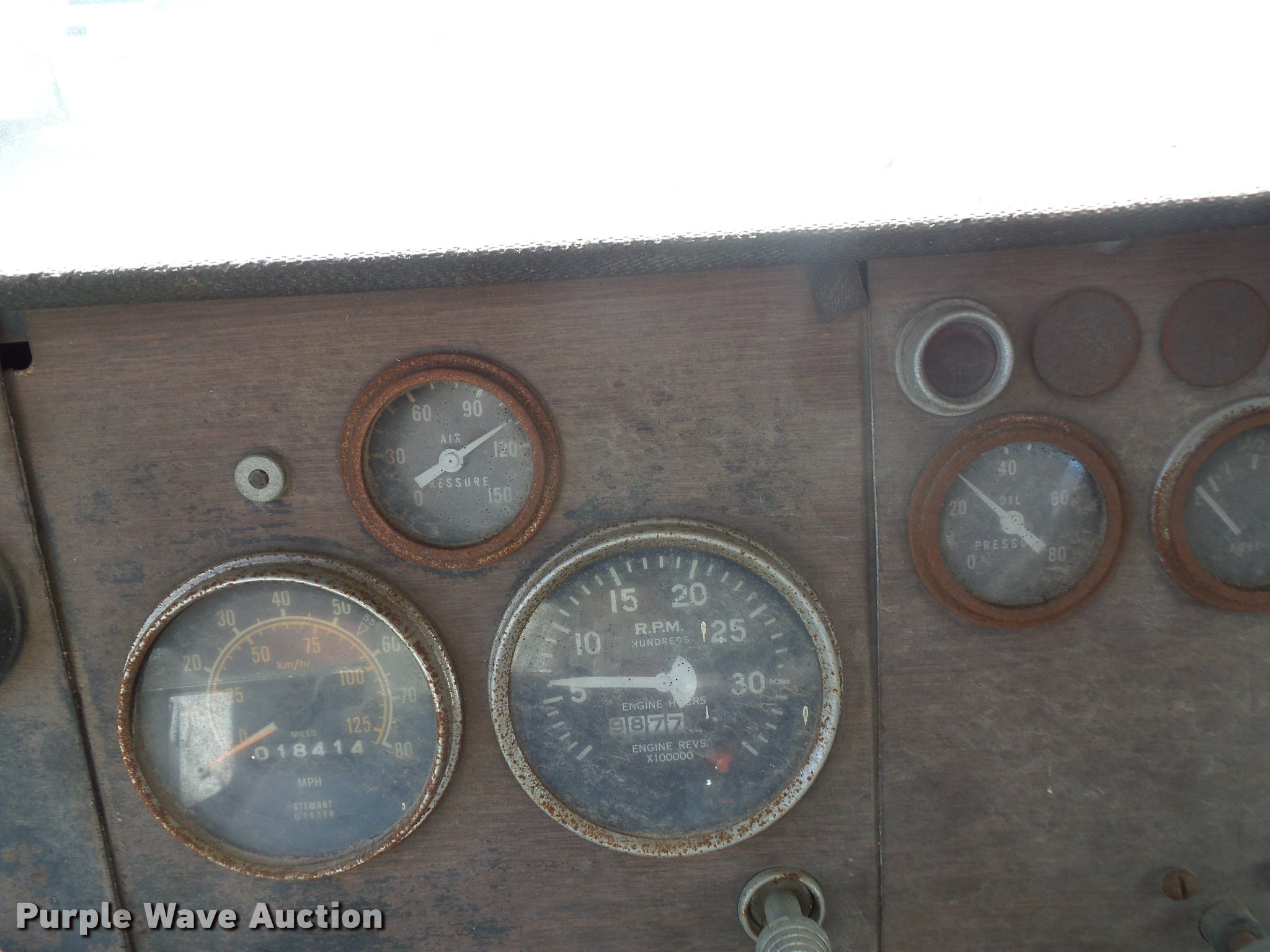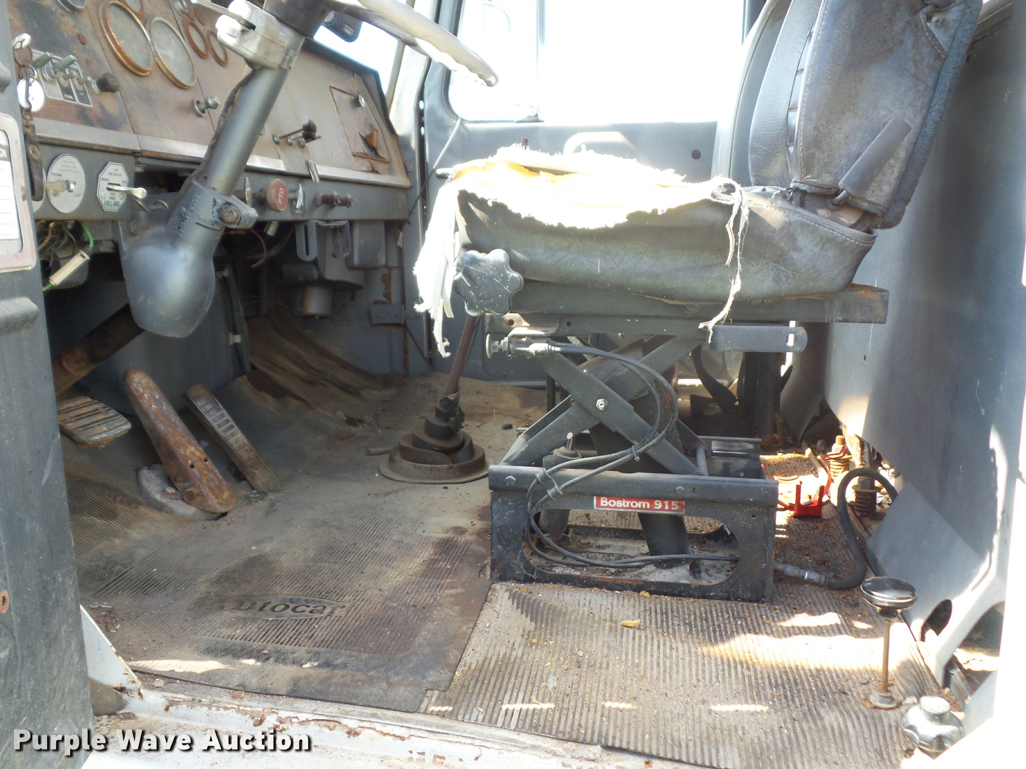 Purple Wave is selling a used Rollback or Tow Truck in Kansas. This item is a 1965 Autocar tow truck with the following: 18,414 miles on odometer, 9,877 hours on meter, Six cylinder turbo diesel engine, Manual transmission, Tandem axle, Heat, Air suspension seat, PTO, Rear hydraulic outriggers, Spring suspension, Air brakes, 11R24.5 tires, Dead battery, Cracked windshield, Unit has to be jump started