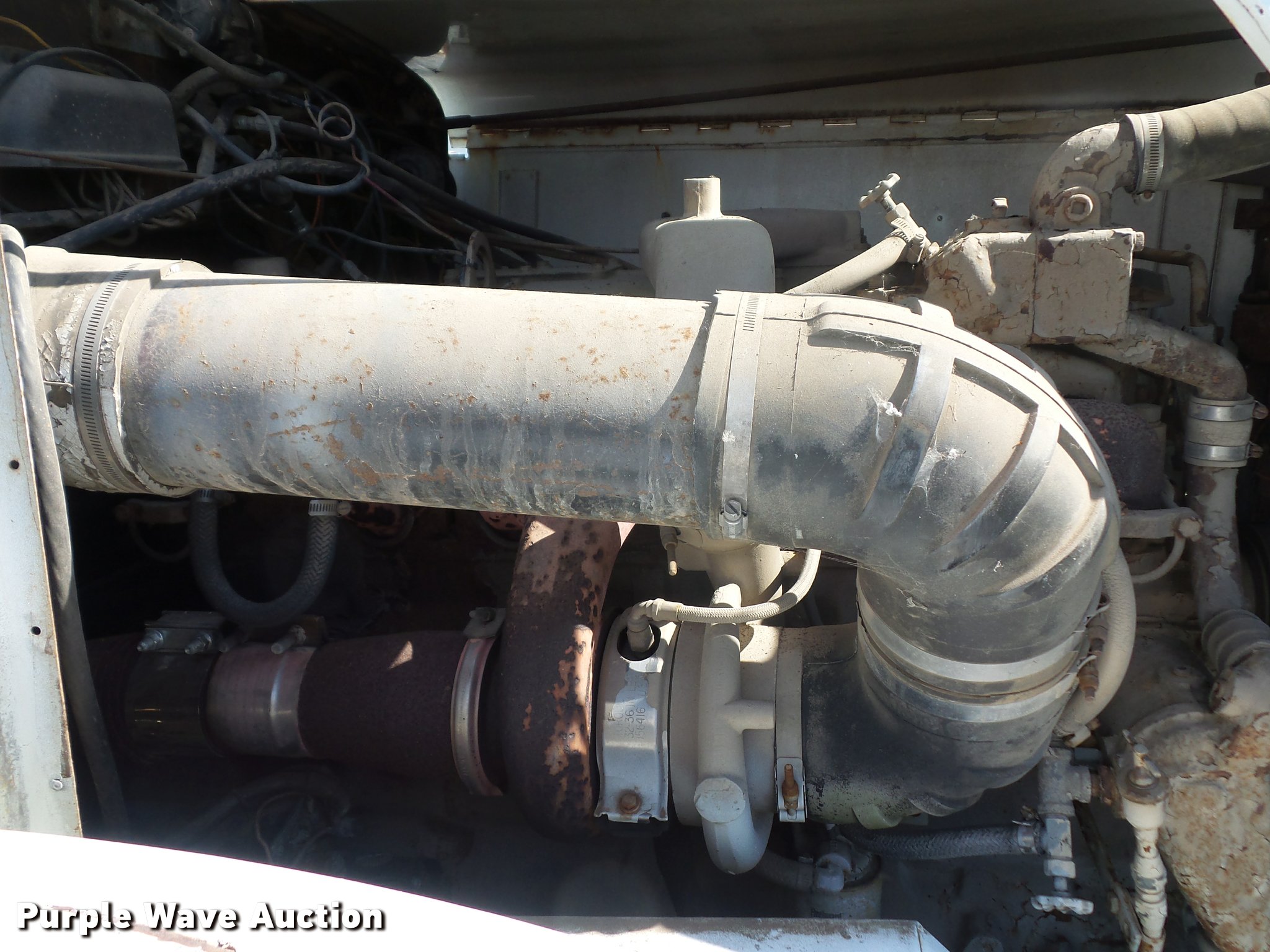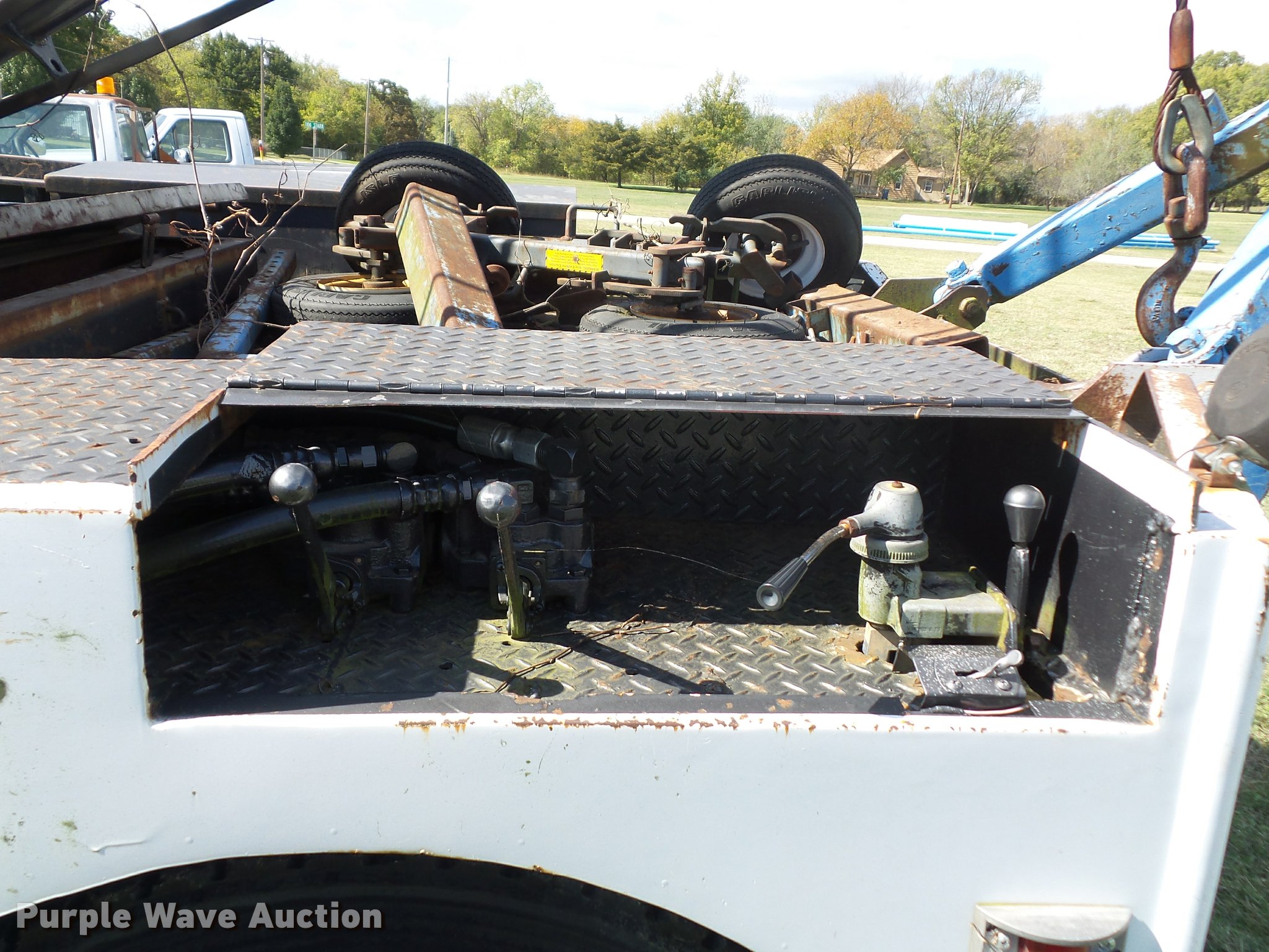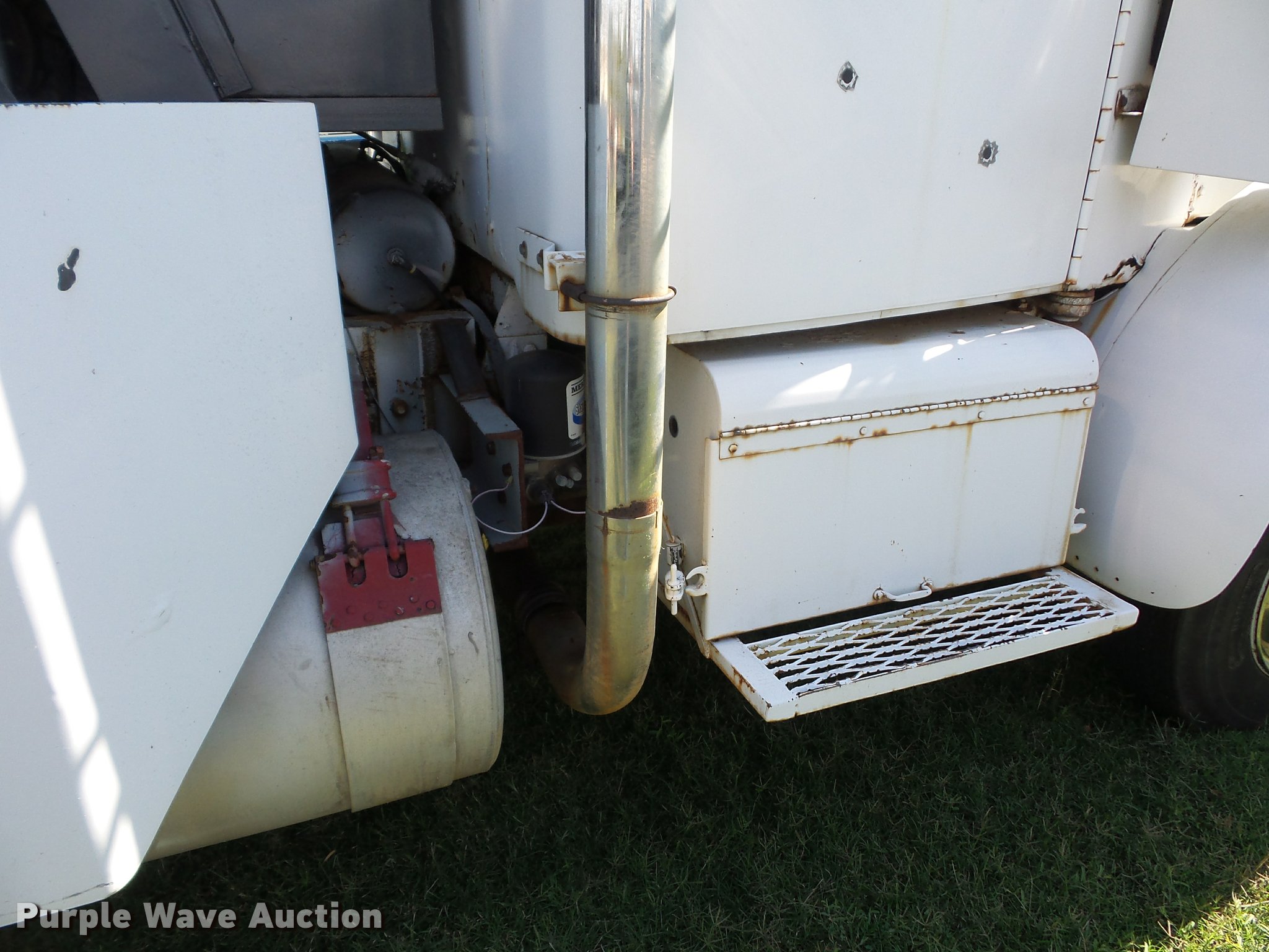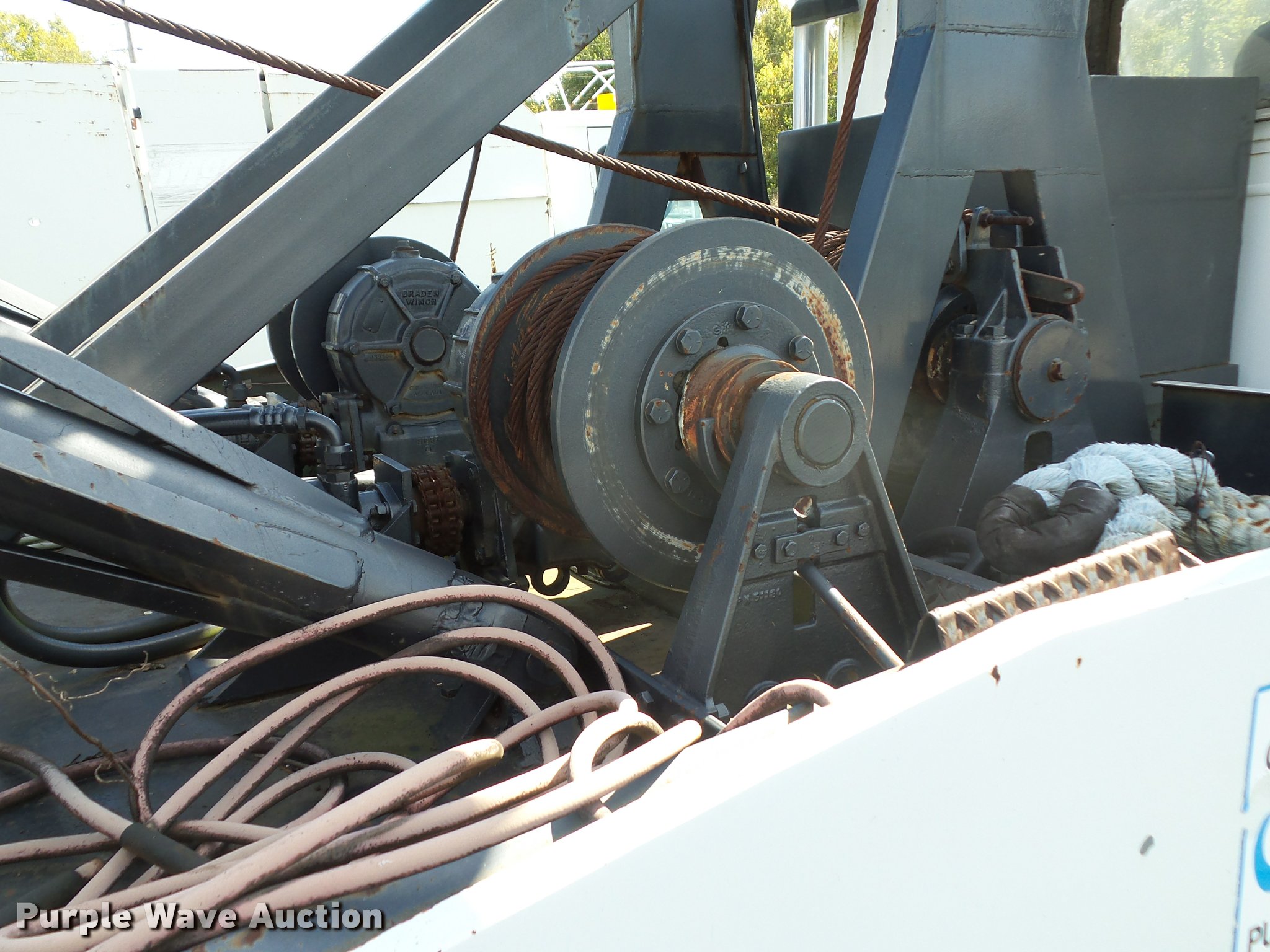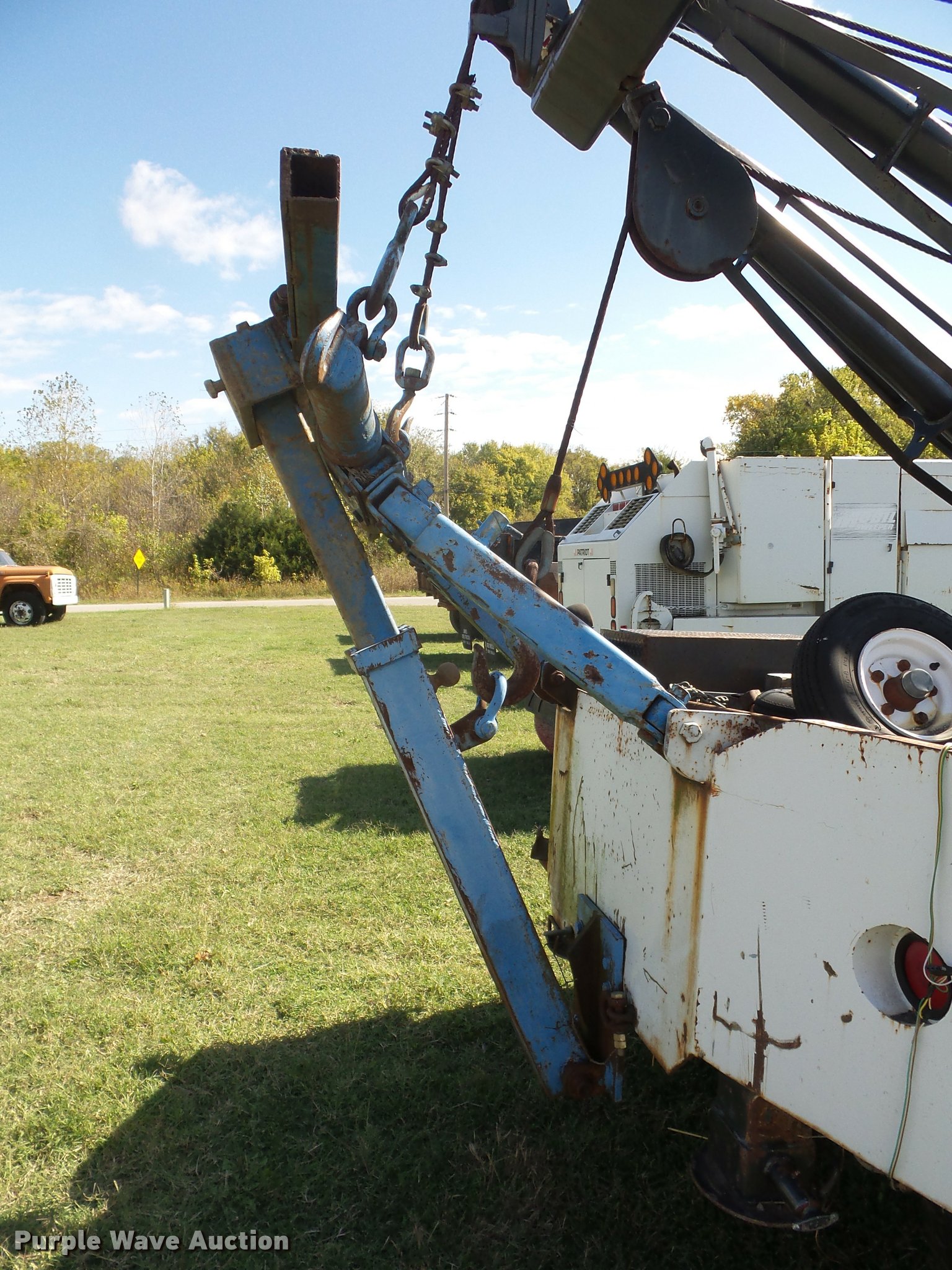 1965 Autocar tow truck. 18,414 miles on odometer, 9,877 hours on meter, Six cylinder turbo diesel engine, Manual transmission, Tandem axle, Heat, Air suspension seat, PTO, Rear hydraulic outriggers, Spring suspension, Air brakes, 11R24.5 tires, Dead battery, Cracked windshield, Unit has to be jump started. Kansas title. DC7564T57139. City of Coffeyville. 1106 Stark. Coffeyville, KS 67337