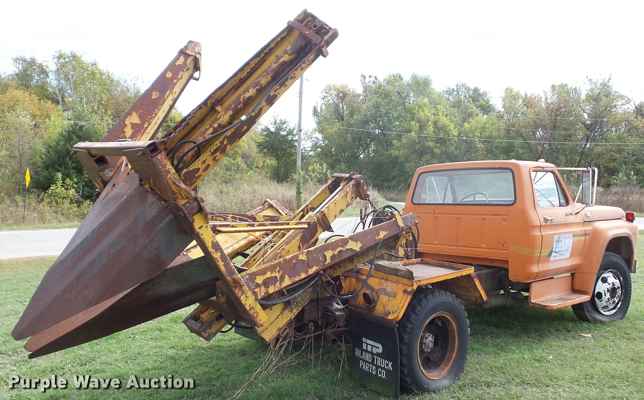 This 1974 Ford F600 truck with tree spade will sell to the highest bidder regardless of price.