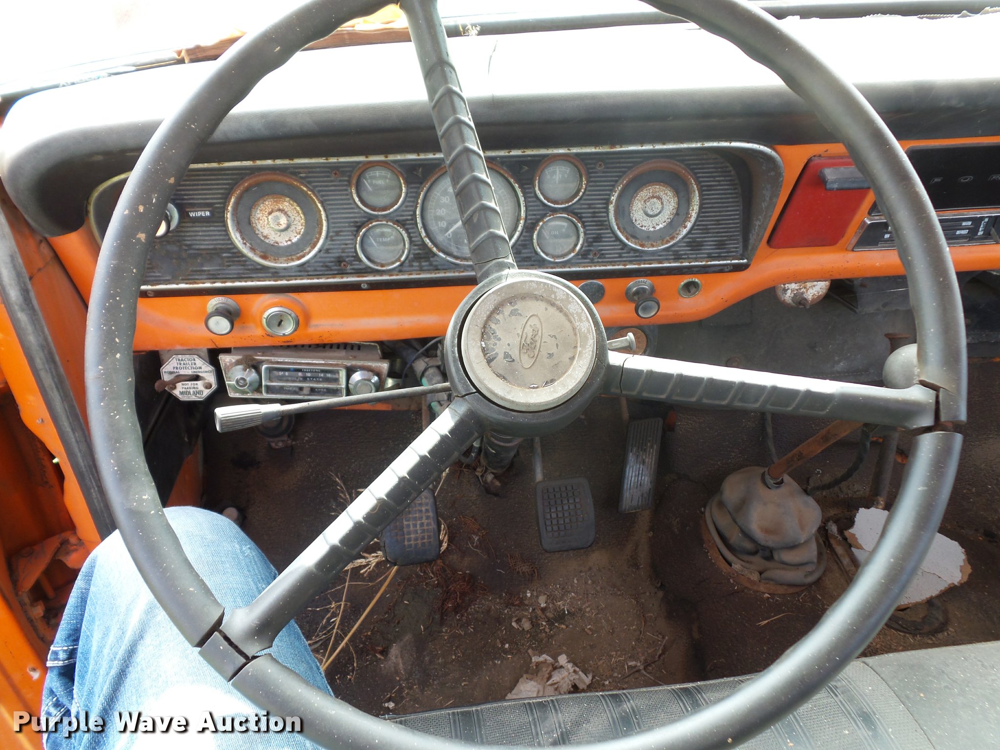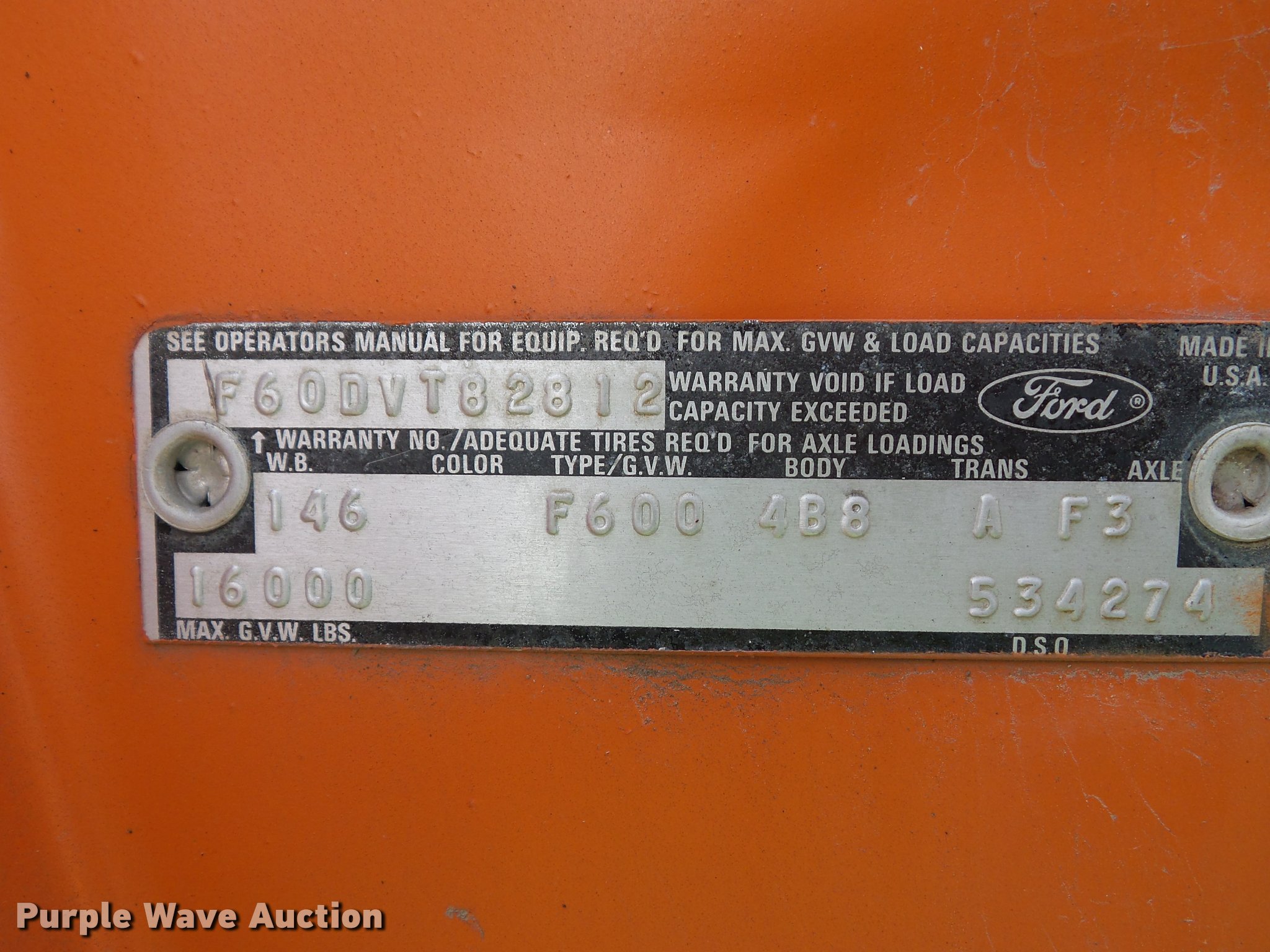 Purple Wave is selling a used Tree Spade in Kansas. This item is a 1974 Ford F600 truck with tree spade with the following: 20,409 miles on odometer, Actual mileage unknown, Eight cylinder gas engine, Four speed manual transmission, Heat, Manual windows and locks, Vinyl interior, PTO, 146" wheelbase, 10-20 front tires, 8.25-20 rear tires, GVWR 16,000 lbs, Dead battery, Unknown operating condition