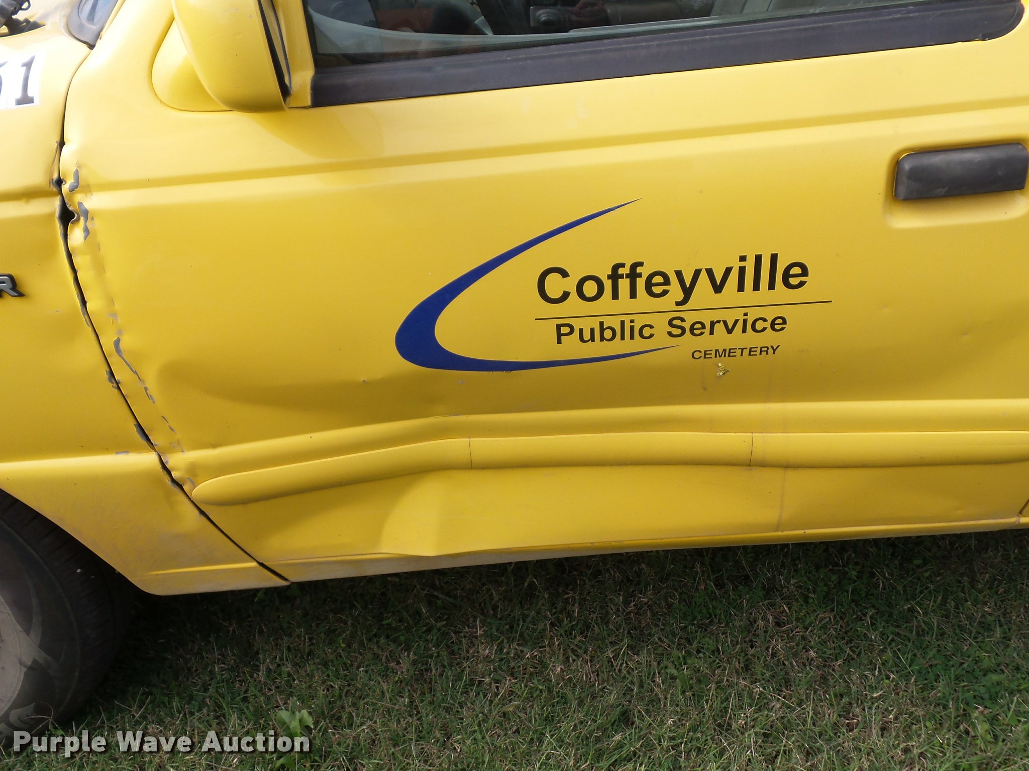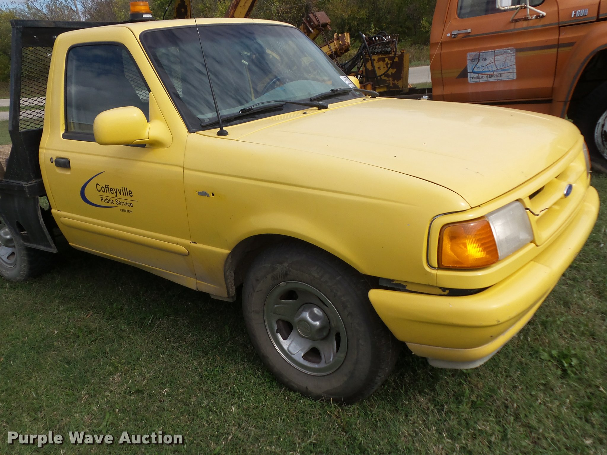1995 Ford Ranger flatbed pickup truck. 204,432 miles on odometer, 2.3L L4 SOHC 8V gas engine, Five speed manual transmission, AC and heat, AM/FM/cassette, Manual windows and locks, Cloth interior, 6'L x 76"W flatbed, 235/75R15 tires, Dead battery, Clutch may need to be replaced, Non-operational unit. Kansas title. 1FTCR10A1SPA51356. City of Coffeyville. 1106 Stark. Coffeyville, KS 67337