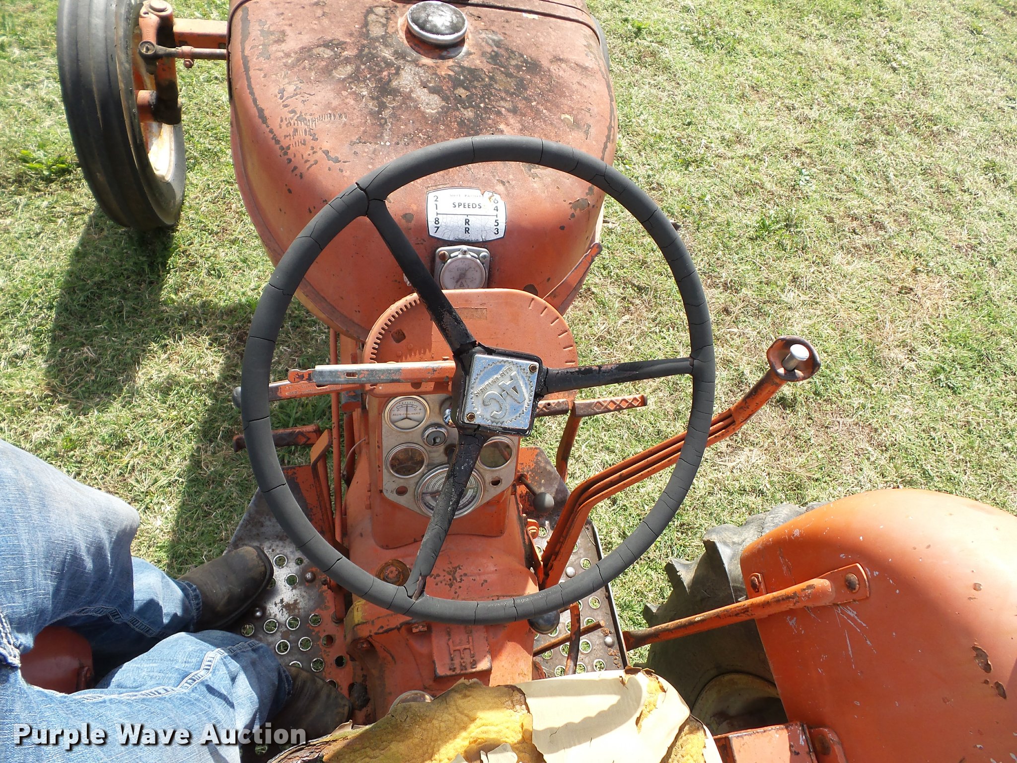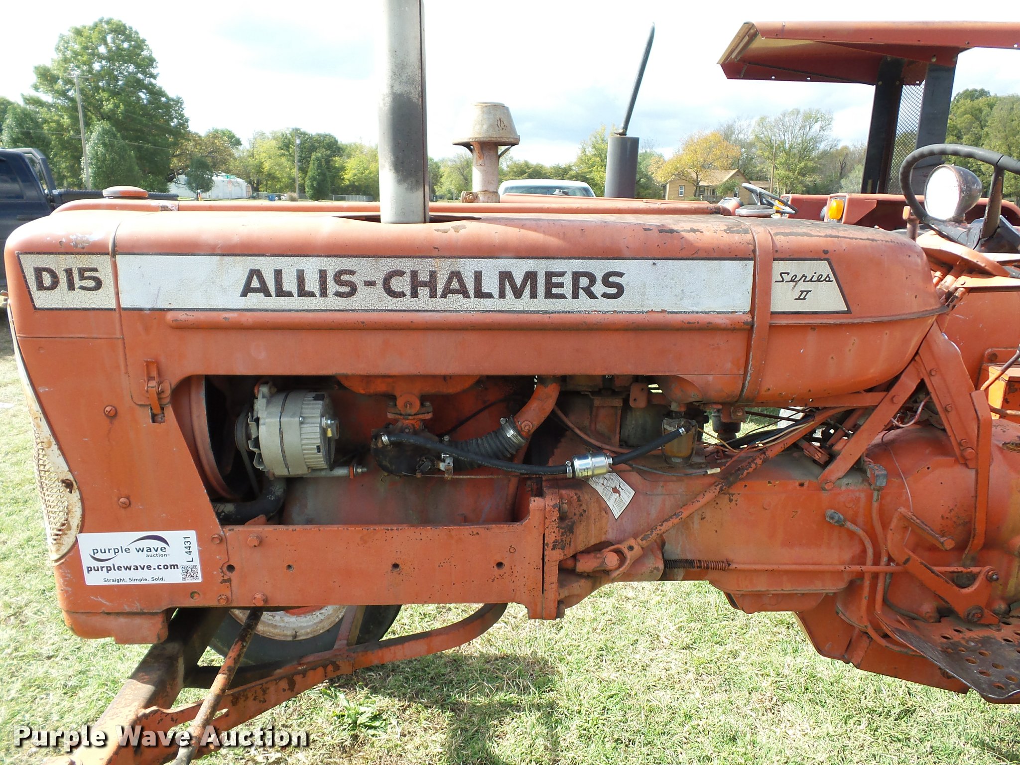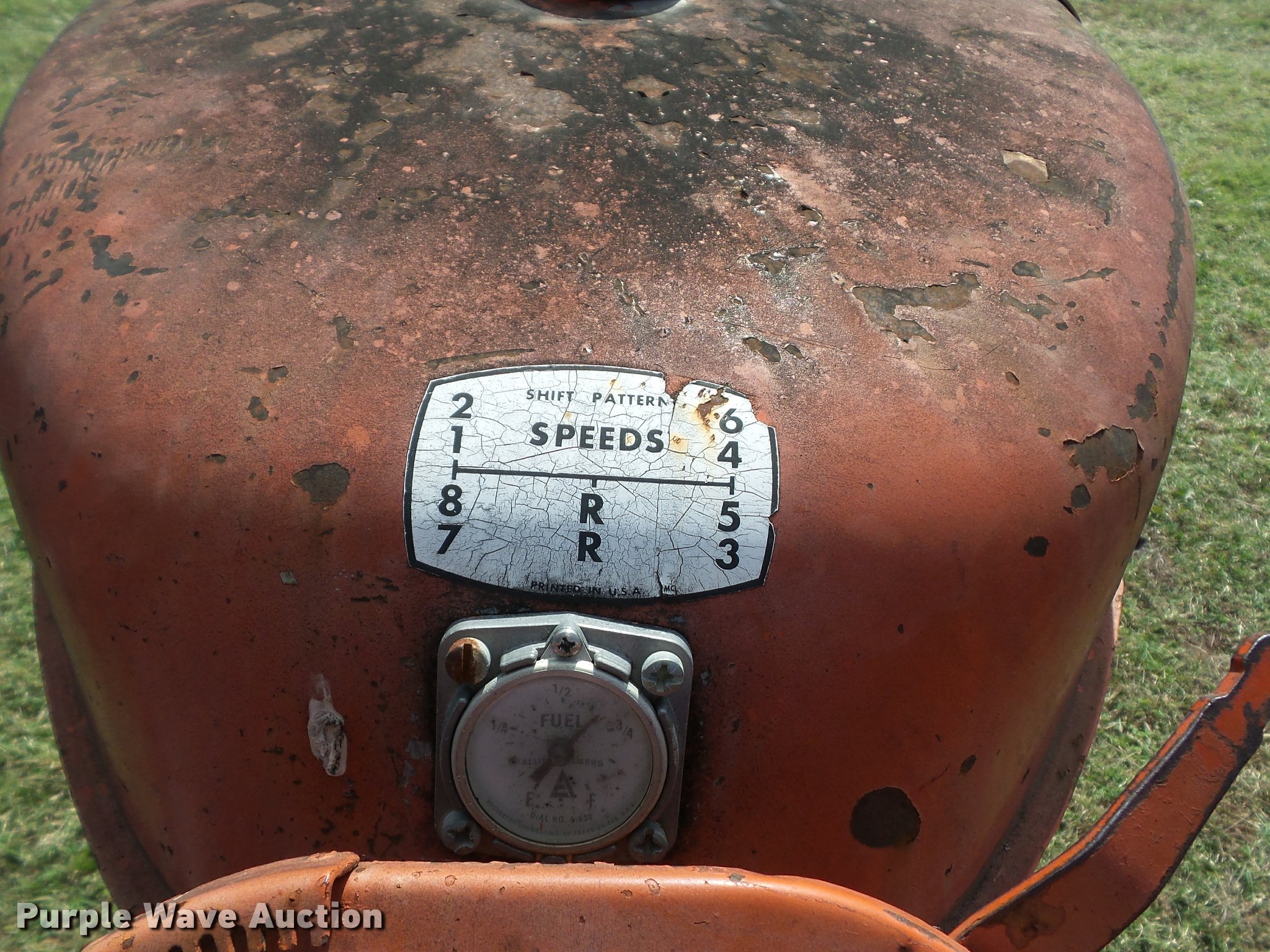 Purple Wave is selling a used Tractor in Kansas. This item is a Allis Chalmers D13 tractor with the following: 3,974 hours on meter, Four cylinder gas engine, Manual transmission, 8F-2R gears, Three point, 540 PTO, Draw bar, Rear hydraulic remote, 6.50-16 front tires, 14.9-26 rear tires, Dead battery, Non-operational unit