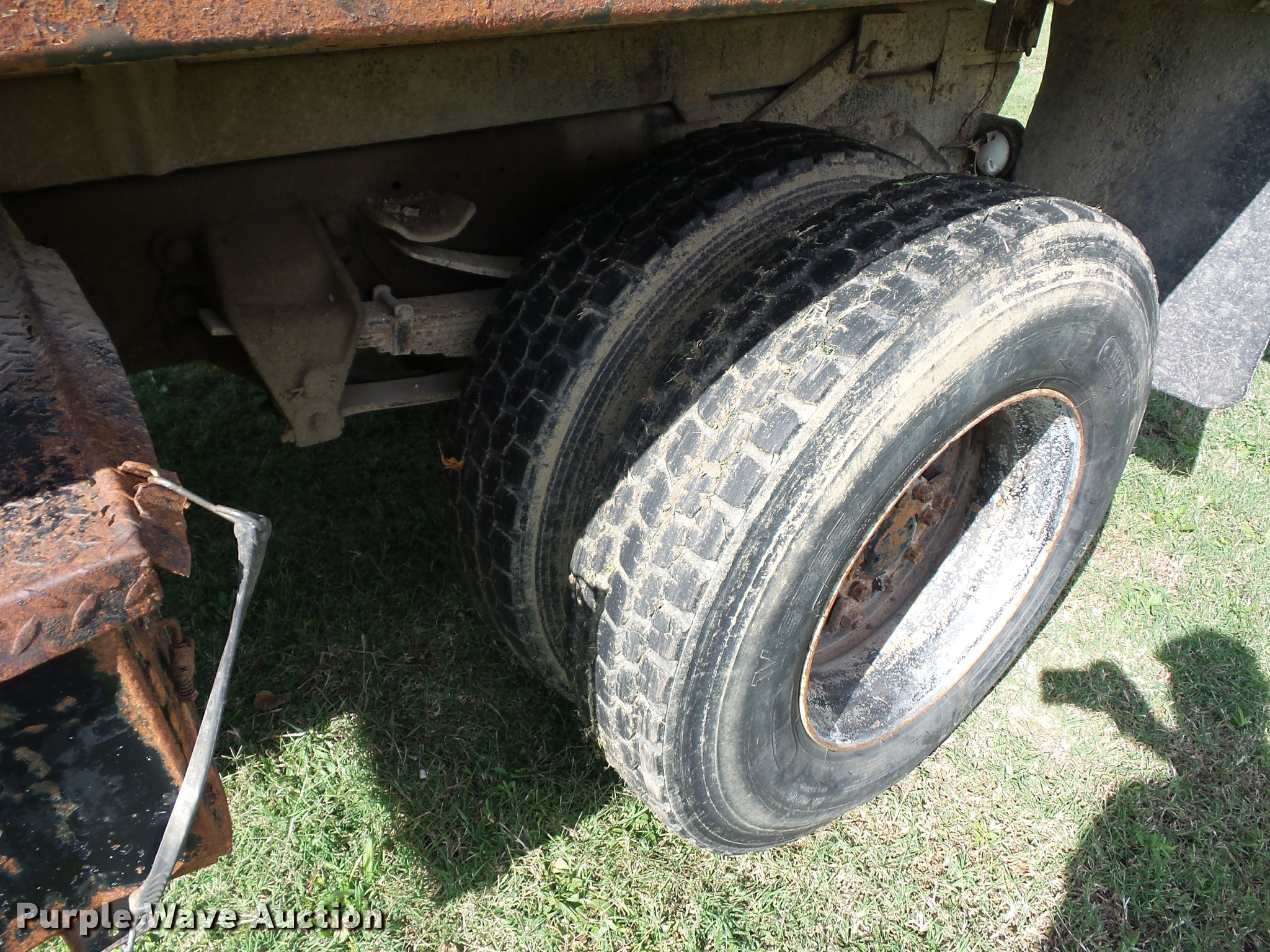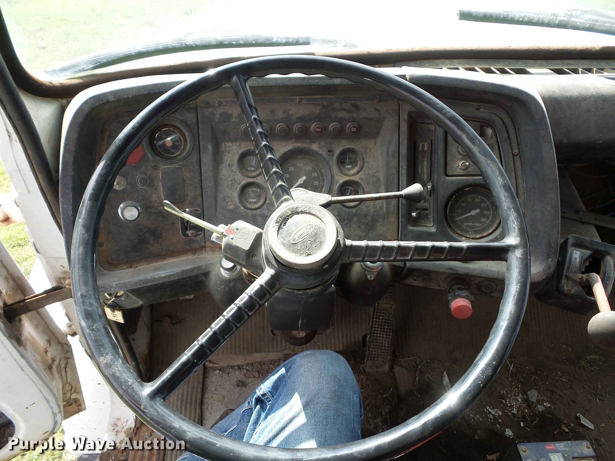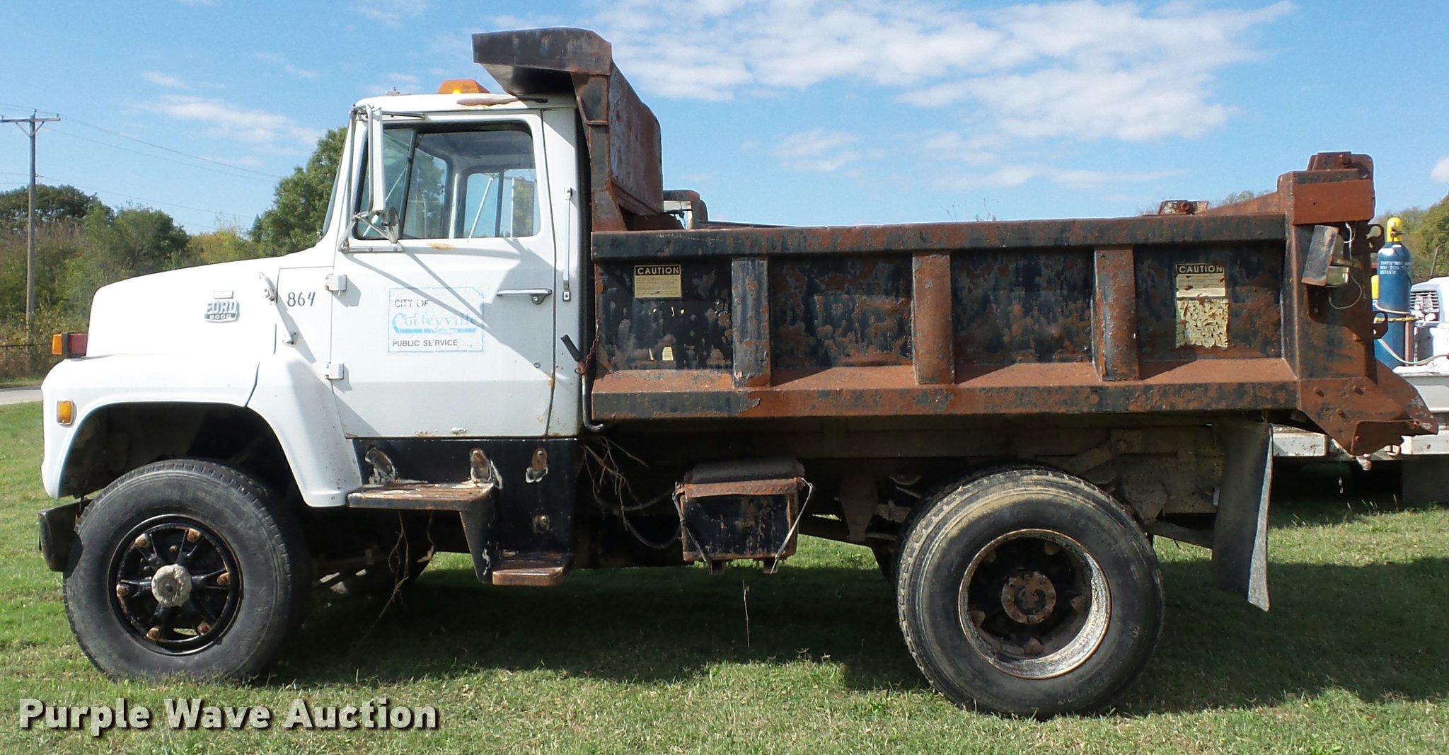 Purple Wave is selling a used Construction Dump Truck in Kansas. This item is a 1985 Ford 8000 dump truck with the following: 197,234 miles on odometer, Caterpillar 3208 10.4L V8 diesel engine, Automatic transmission, Single axle, Heat, Air suspension seat, Galion steel dump bed, 10'L x 94"W, 26" side height, Pintle hitch, Spring suspension, Air brakes, 11R22.5 tires