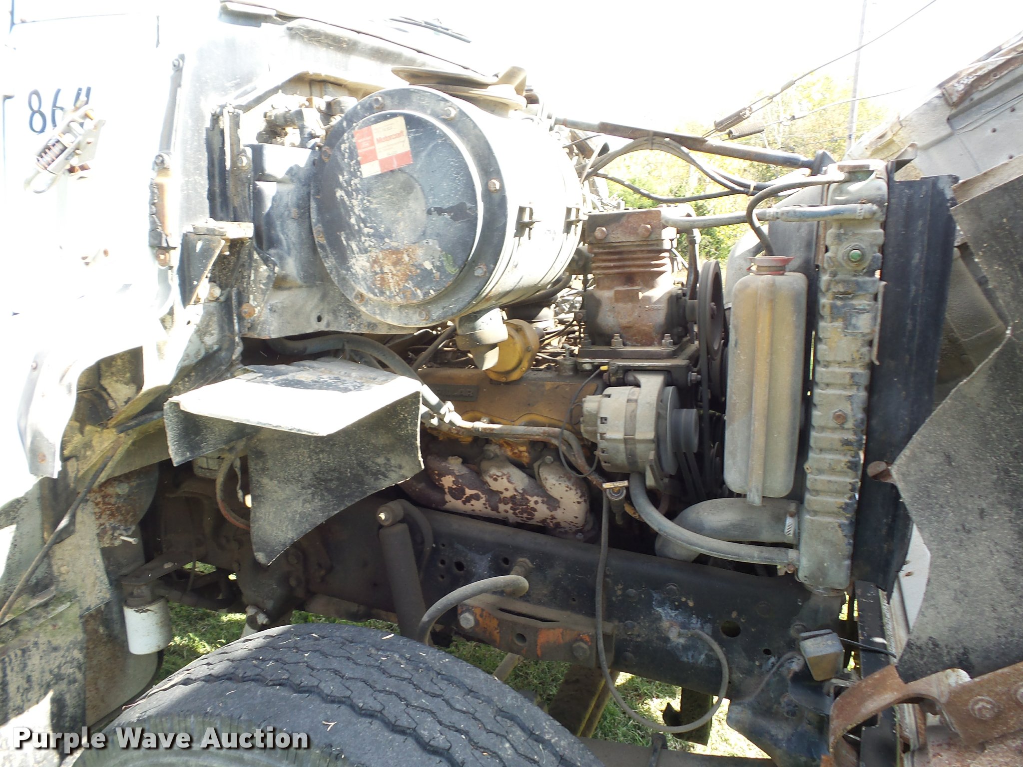 1985 Ford 8000 dump truck. 197,234 miles on odometer, Caterpillar 3208 10.4L V8 diesel engine, Automatic transmission, Single axle, Heat, Air suspension seat, Galion steel dump bed 10'L x 94"W, 26" side height, Pintle hitch, Spring suspension, Air brakes, 11R22.5 tires. Kansas title. Title distribution may be delayed up to 14 days from verification of funds. 1FDYR80U1FVA12031. City of Coffeyville. 1106 Stark. Coffeyville, KS 67337
