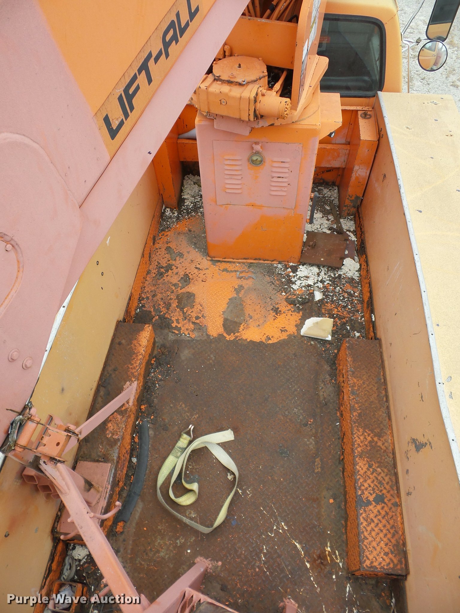Purple Wave is selling a used Bucket Truck in Missouri. This item is a 1997 Ford F800 bucket truck with the following: 165,092 miles on odometer, Cummins ISB 5.9L L6 turbo diesel engine, Six speed manual transmission, Single axle, Heat, AM/FM, Lift All LAFTFRM-36-15 boom, 350 lbs platform capacity, 36' max lift height, Ground and platform controls, Serial 5275079636TFBM, Pintle hitch, Spring suspension, Air brakes, 9R22.5 tires, One service bed door hinge broken