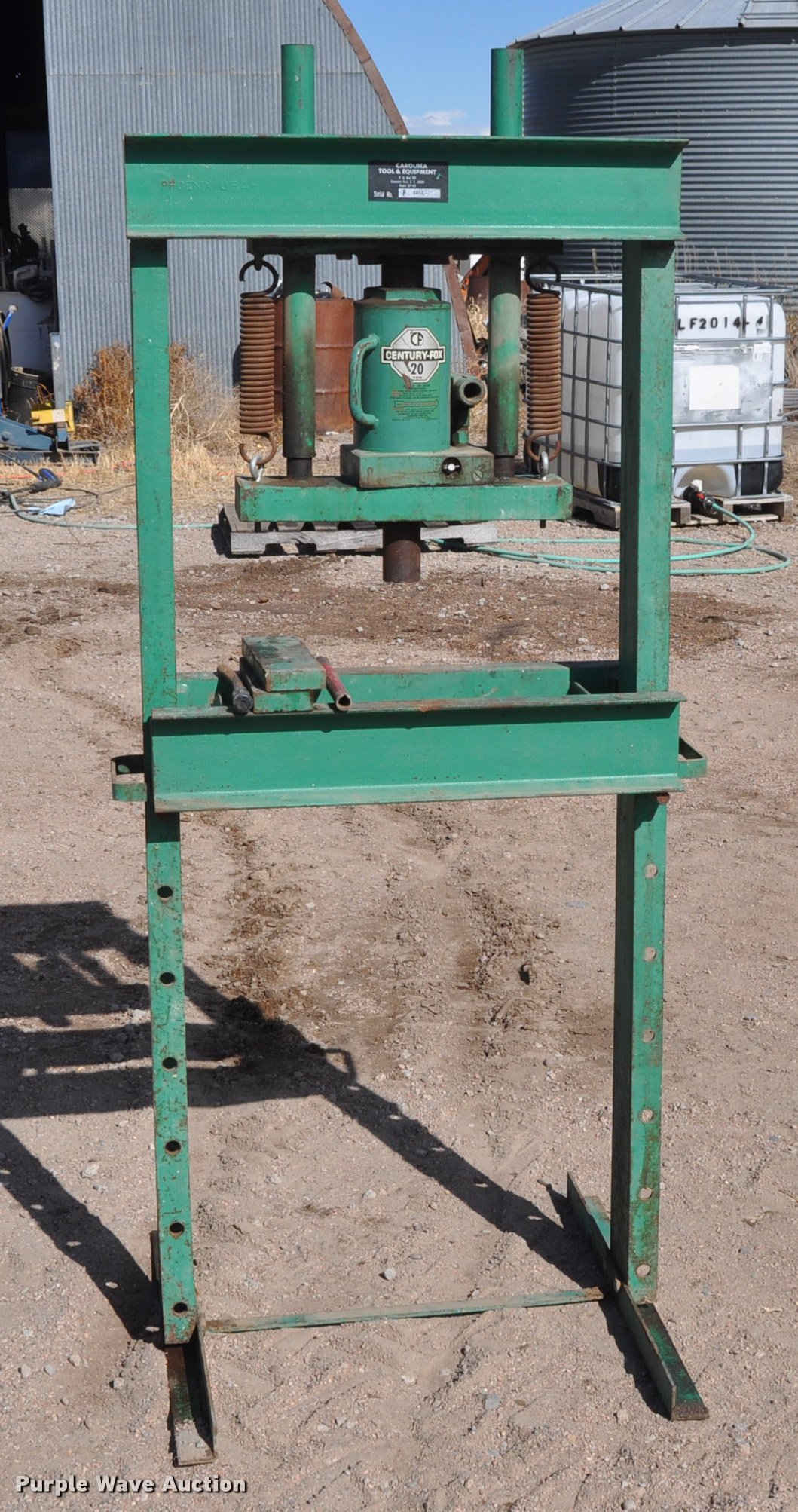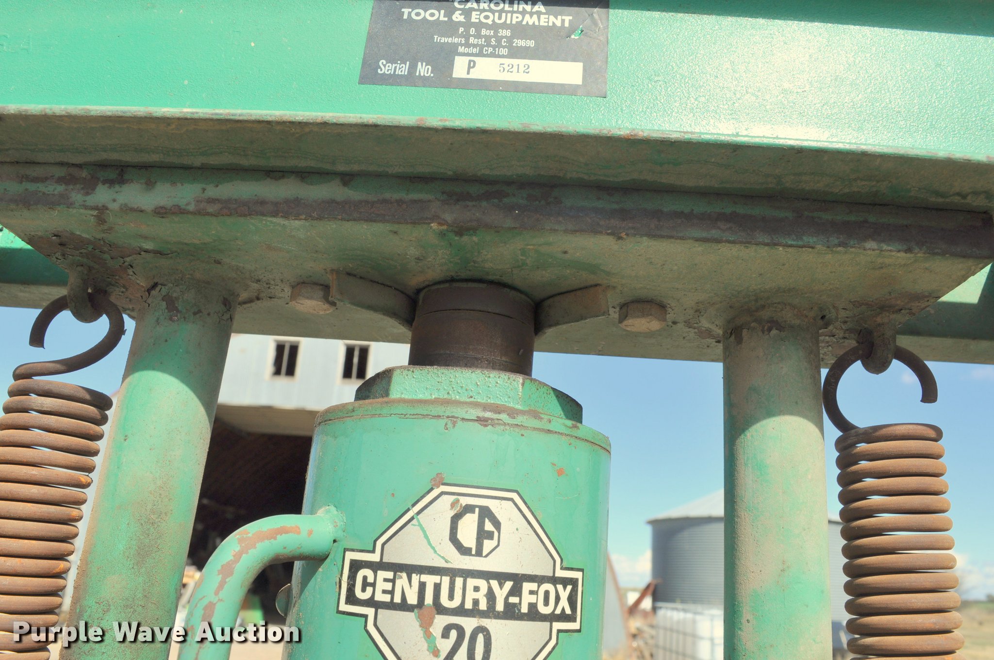 Carolina Tool & Equipment hydraulic press. 20 ton jack, Serial 5212. View all Dennis Peterson Retirement items. Dennis Peterson Retirement Auction. 21985 County Rd 2. Julesburg, CO 80737
