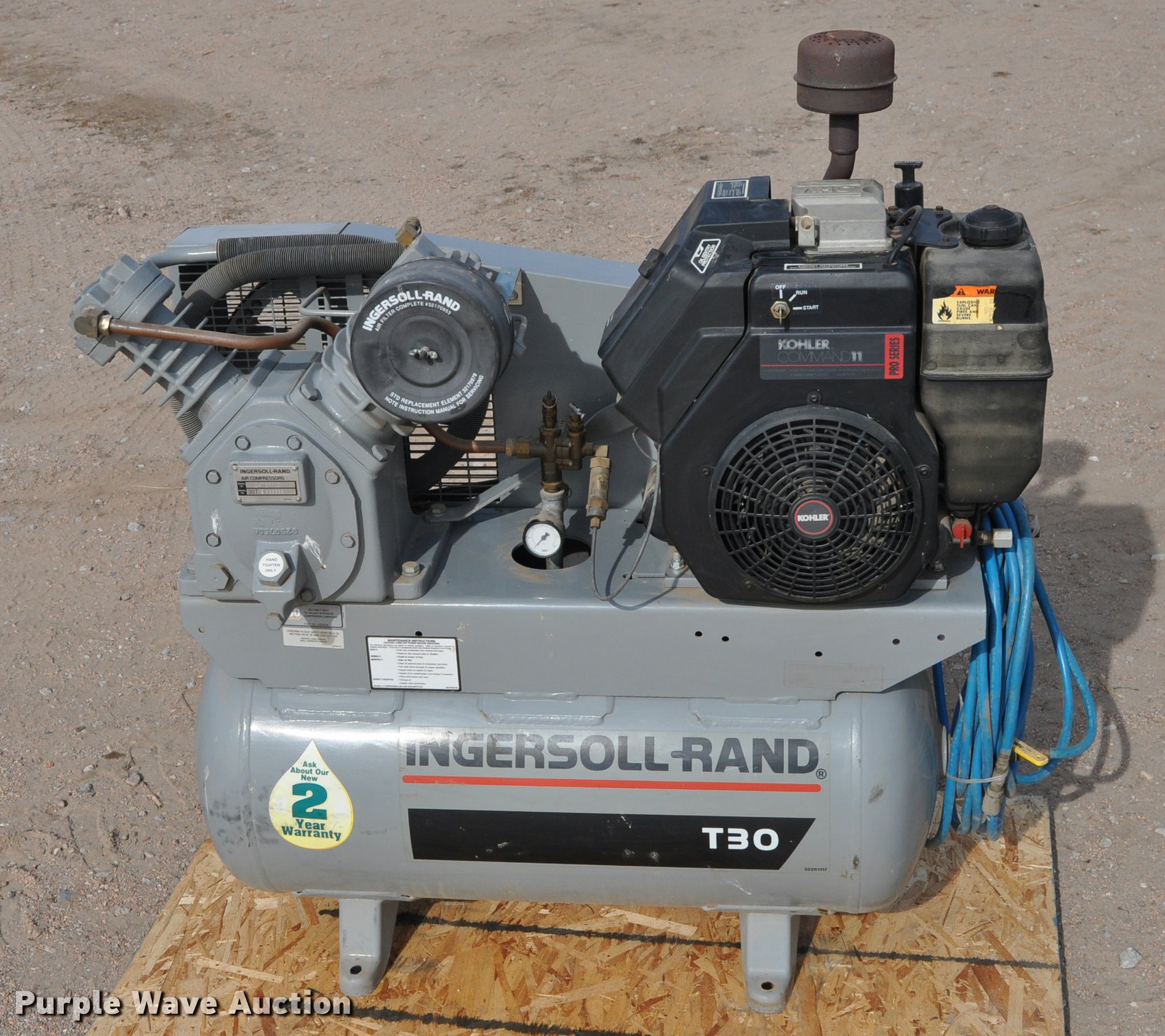 Ingersoll Rand T30 air compressor. Kohler Command II Pro series 398cc gas engine, Twin cylinder compressor, 30 gallon tank, Serial 30TC826669. View all Dennis Peterson Retirement items. Dennis Peterson Retirement Auction. 21985 County Rd 2. Julesburg, CO 80737