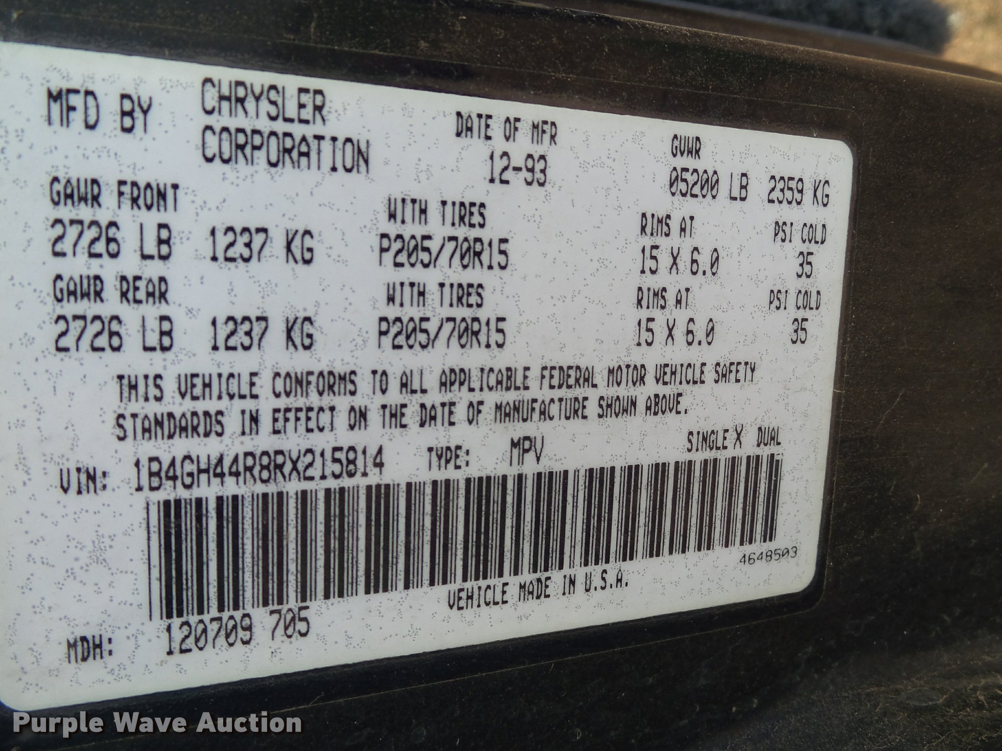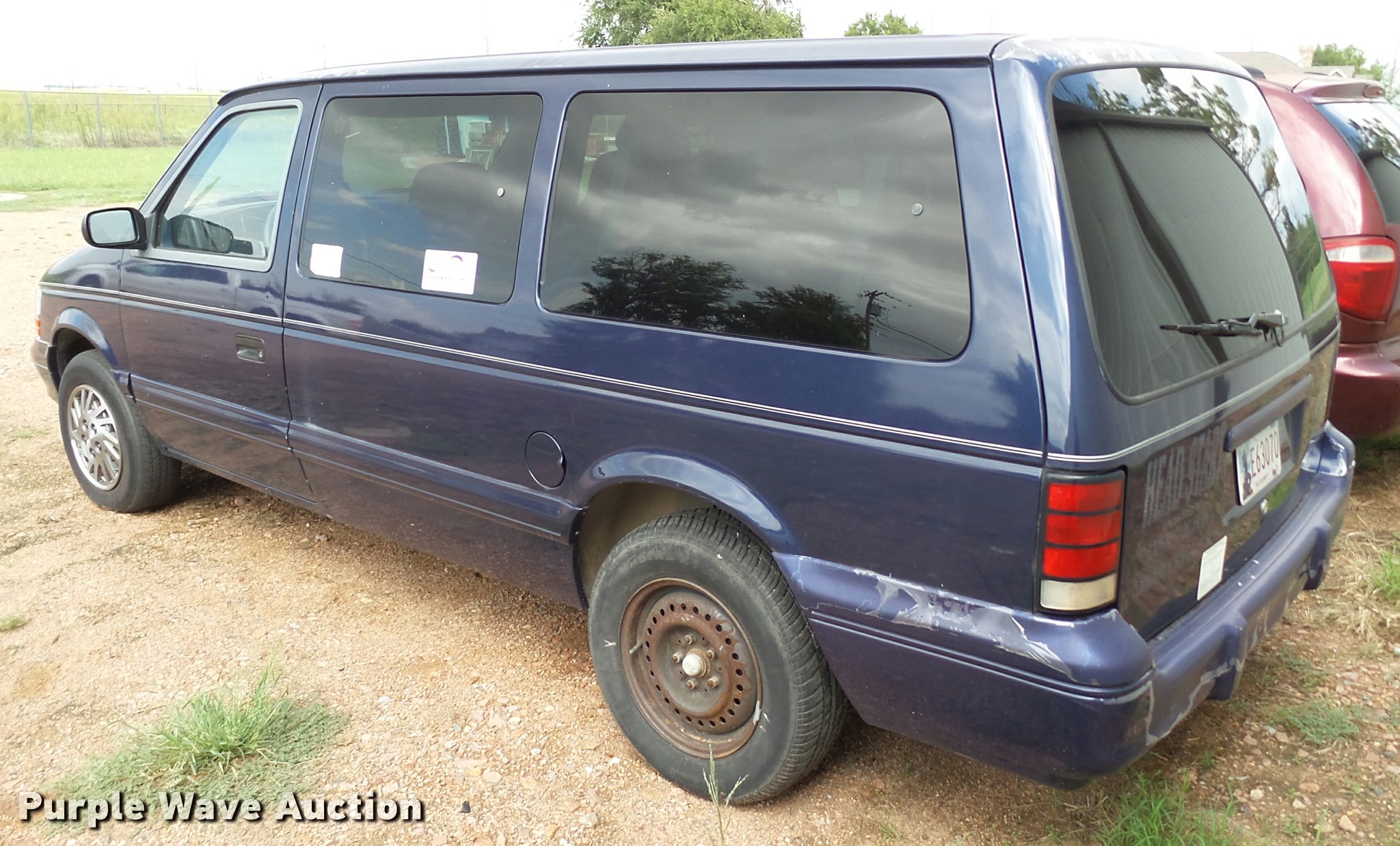 Purple Wave is selling a used Passenger Vehicle in Oklahoma. This item is a 1994 Dodge Grand Caravan van with the following: 150,034 miles on odometer, 3.3L V6 OHV 12V gas engine, Automatic transmission, AC and heat, Tilt, Cruise, AM/FM/cassette, Power windows and locks, Cloth interior, 205/70R15 tires, Dead battery