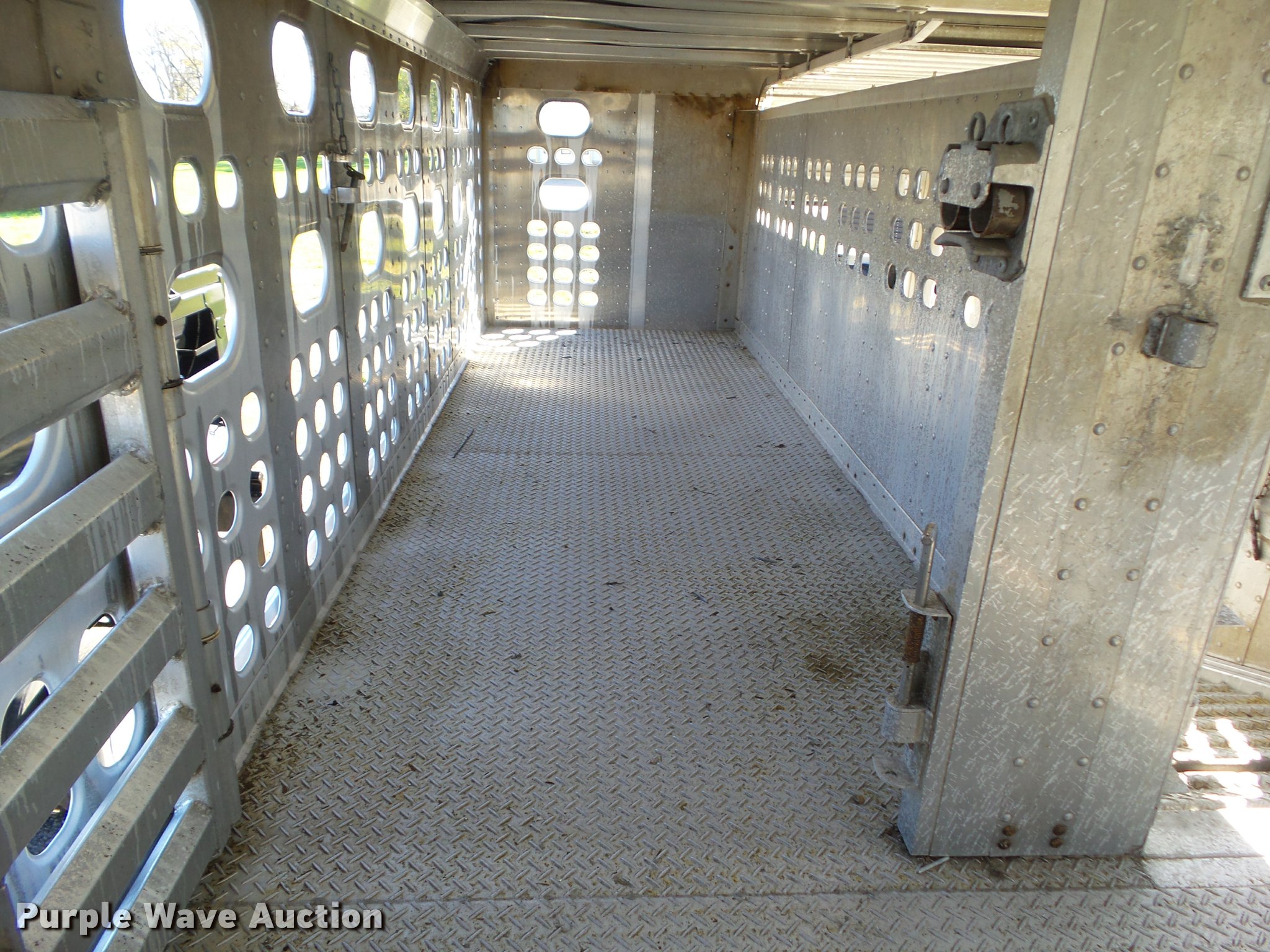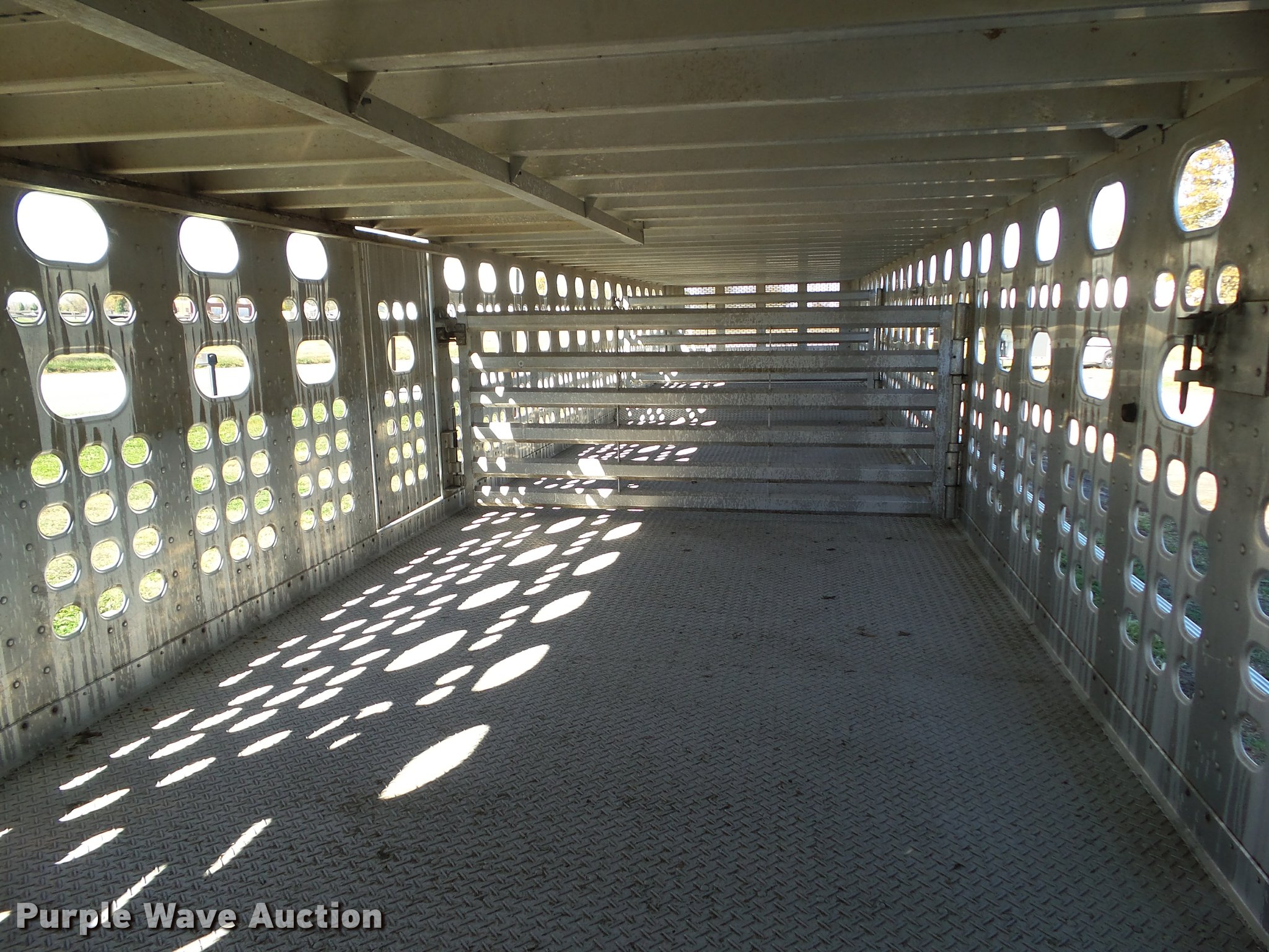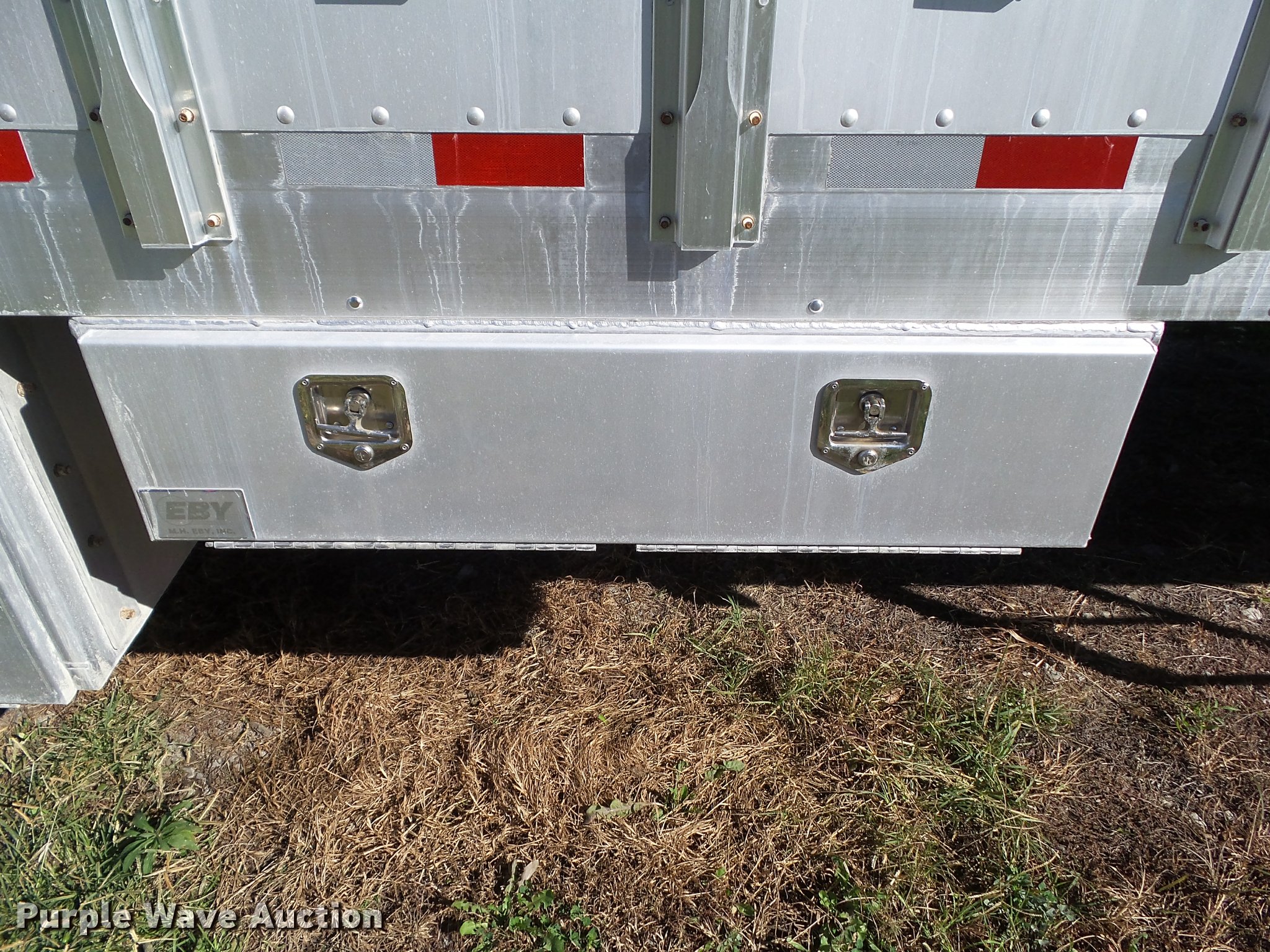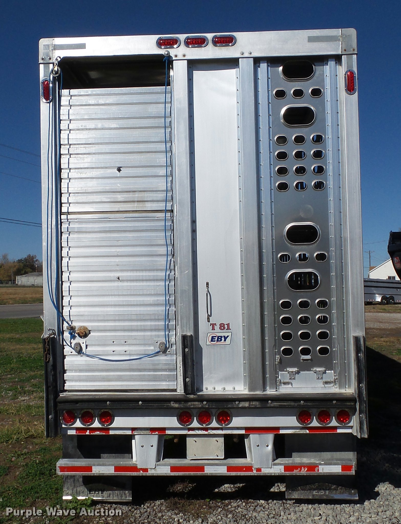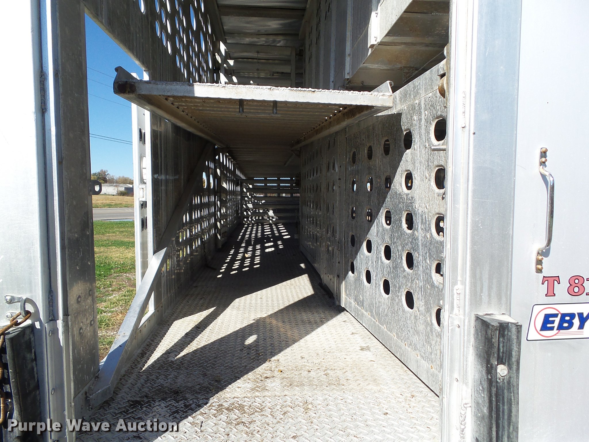 Purple Wave is selling a used Livestock Trailer in Iowa. This item is a 2007 Eby livestock trailer with the following: 53'L x 102"W, 98" interior width, 88" from king pin to landing gear, Two decks, (6) gates, Roll up rear gate, Clean-out door, Dock bumper, (2) roof mounted slide hatches, Spare tire carrier, Aluminum construction, Under-mounted toolbox, Fifth wheel plate, Dual leg landing gear, Air suspension, Air brakes, Tandem spread axles, Aluminum wheels, 11R22.5 tires, GVWR 66,000 lbs, GAWR 20,000 lbs