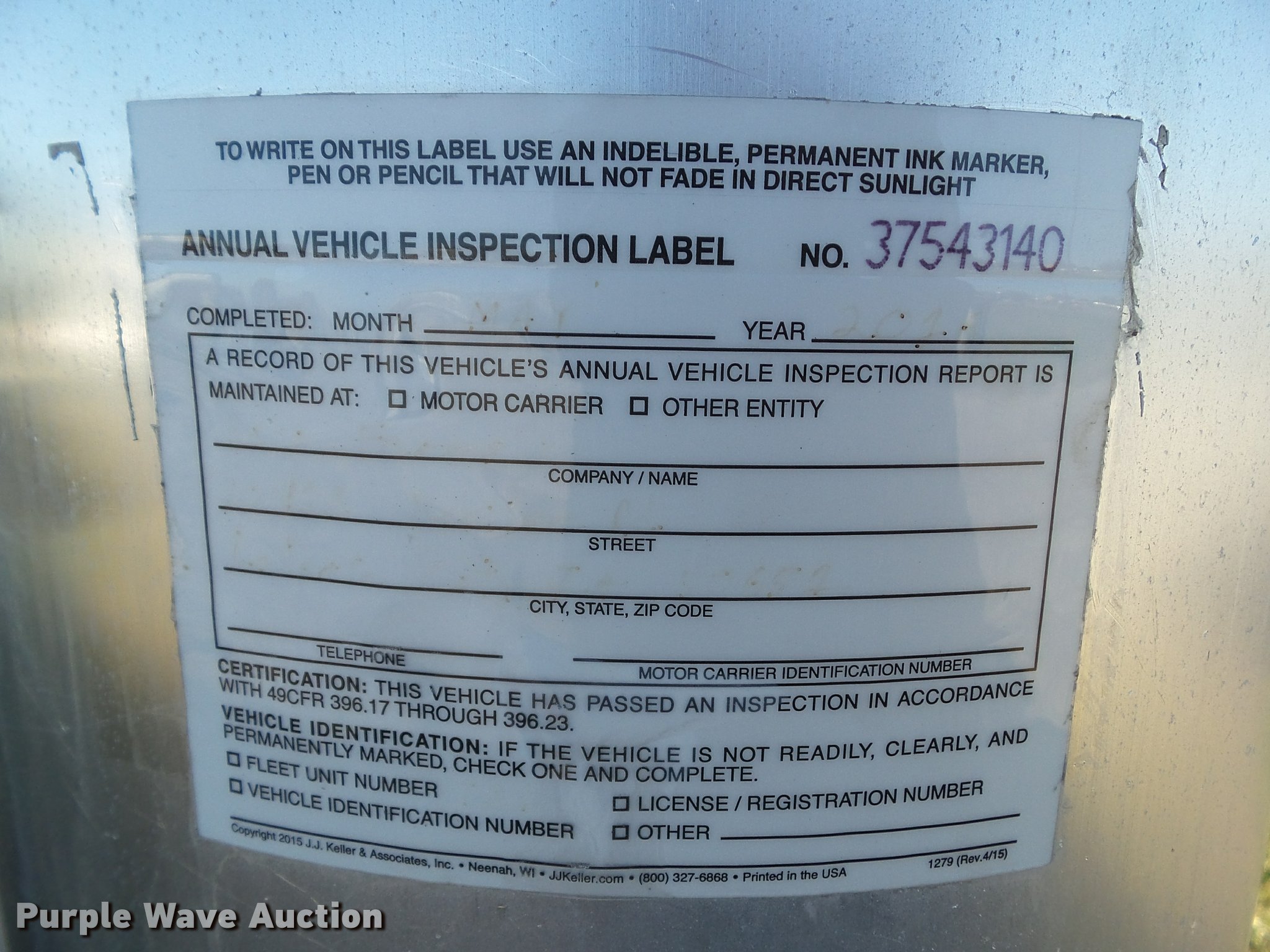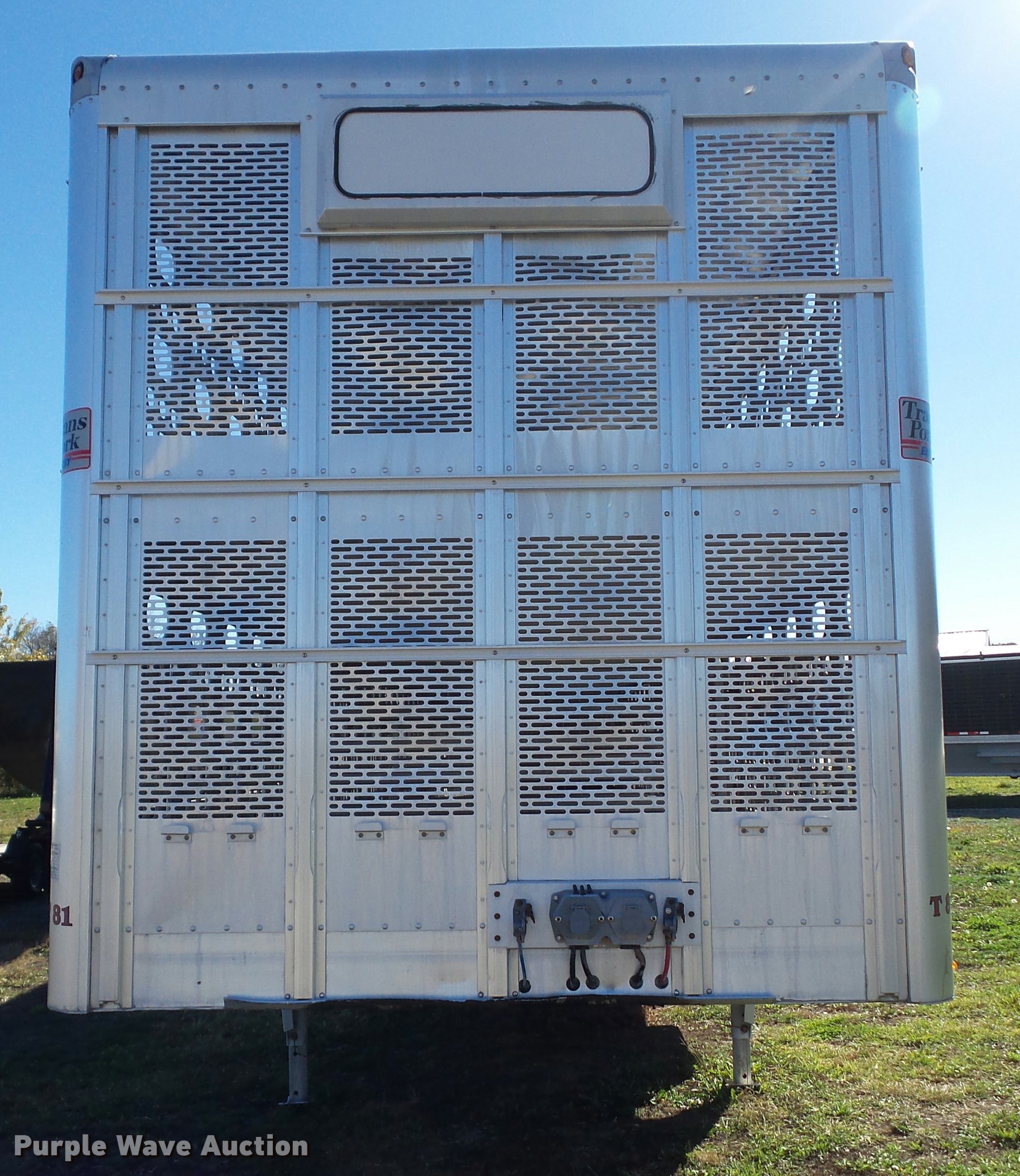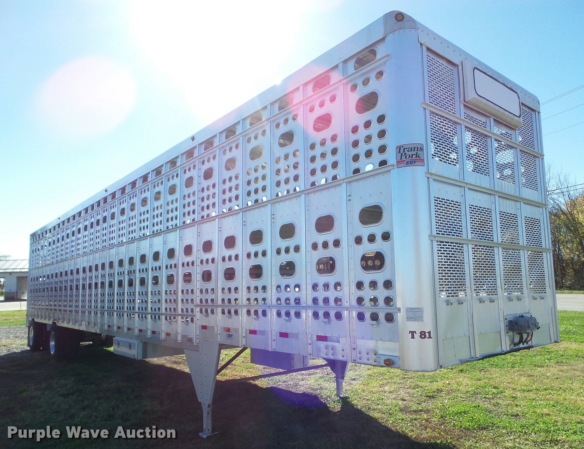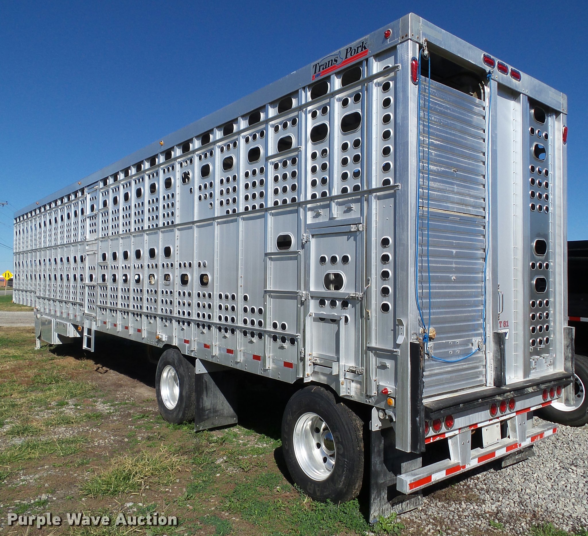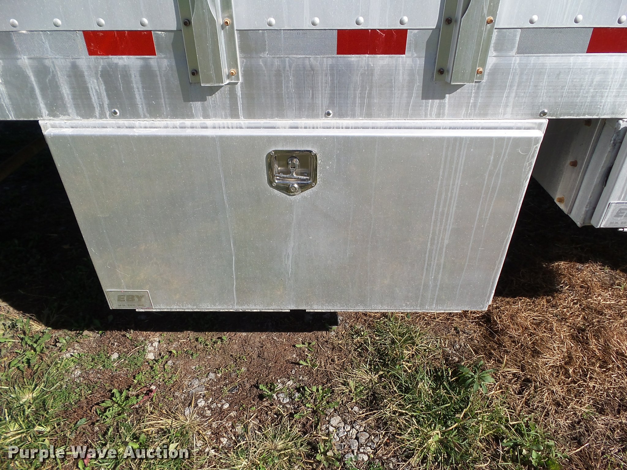 Purple Wave is selling a used Livestock Trailer in Iowa. This item is a 2007 Eby livestock trailer with the following: 53'L x 102"W, 98" interior width, 88" from king pin to landing gear, Two decks, (6) gates, Roll up rear gate, Clean-out door, Dock bumper, (2) roof mounted slide hatches, Spare tire carrier, Aluminum construction, Under-mounted toolbox, Fifth wheel plate, Dual leg landing gear, Air suspension, Air brakes, Tandem spread axles, Aluminum wheels, 11R22.5 tires, GVWR 66,000 lbs, GAWR 20,000 lbs