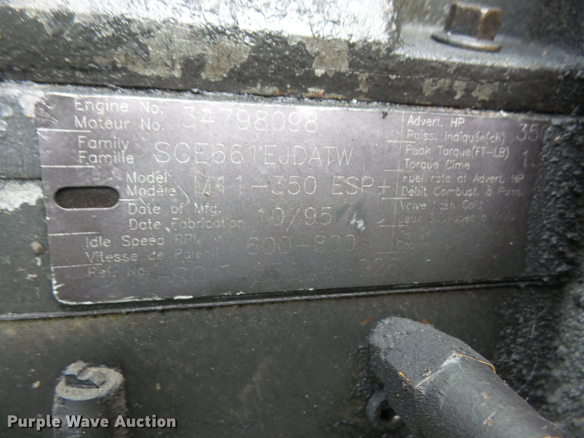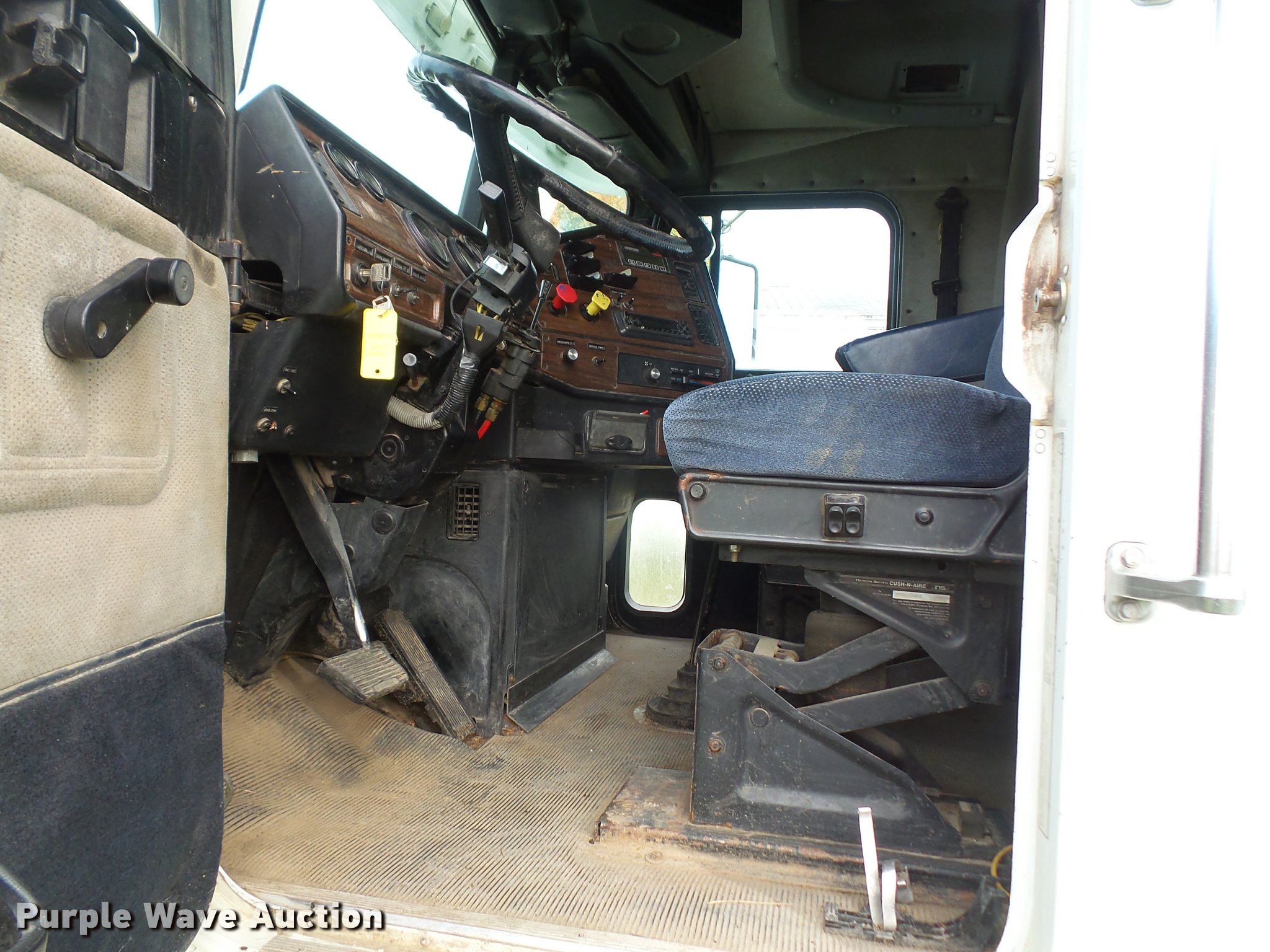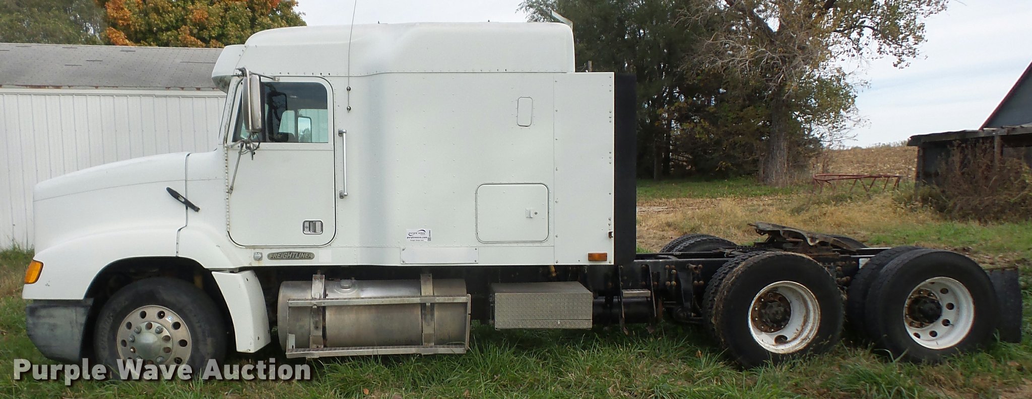 Purple Wave is selling a used Truck Tractor in Kansas. This item is a 1996 Freightliner FLD112 semi truck with the following: 784,453 miles on odometer, Cummins M11 10.8L L6 turbo diesel engine, 350 HP, Nine speed manual transmission, Tandem axle, Inter-axle differential lock, AC and heat, AC belt missing, Tilt, Cruise, AM/FM/CD, Heated mirrors, Air suspension seat, Air ride cab, 60" sleeper, Single bed, Storage cabinets, Dump valves, Single front exhaust stack, Sliding fifth wheel plate, Dual fuel tanks, Air suspension, Air brakes, 295/75R22.5 front tires, 11R22.5 rear tires, GVWR 52,000 lbs, FAWR 12,000 lbs, IAWR 20,000 lbs, RAWR 20,000 lbs