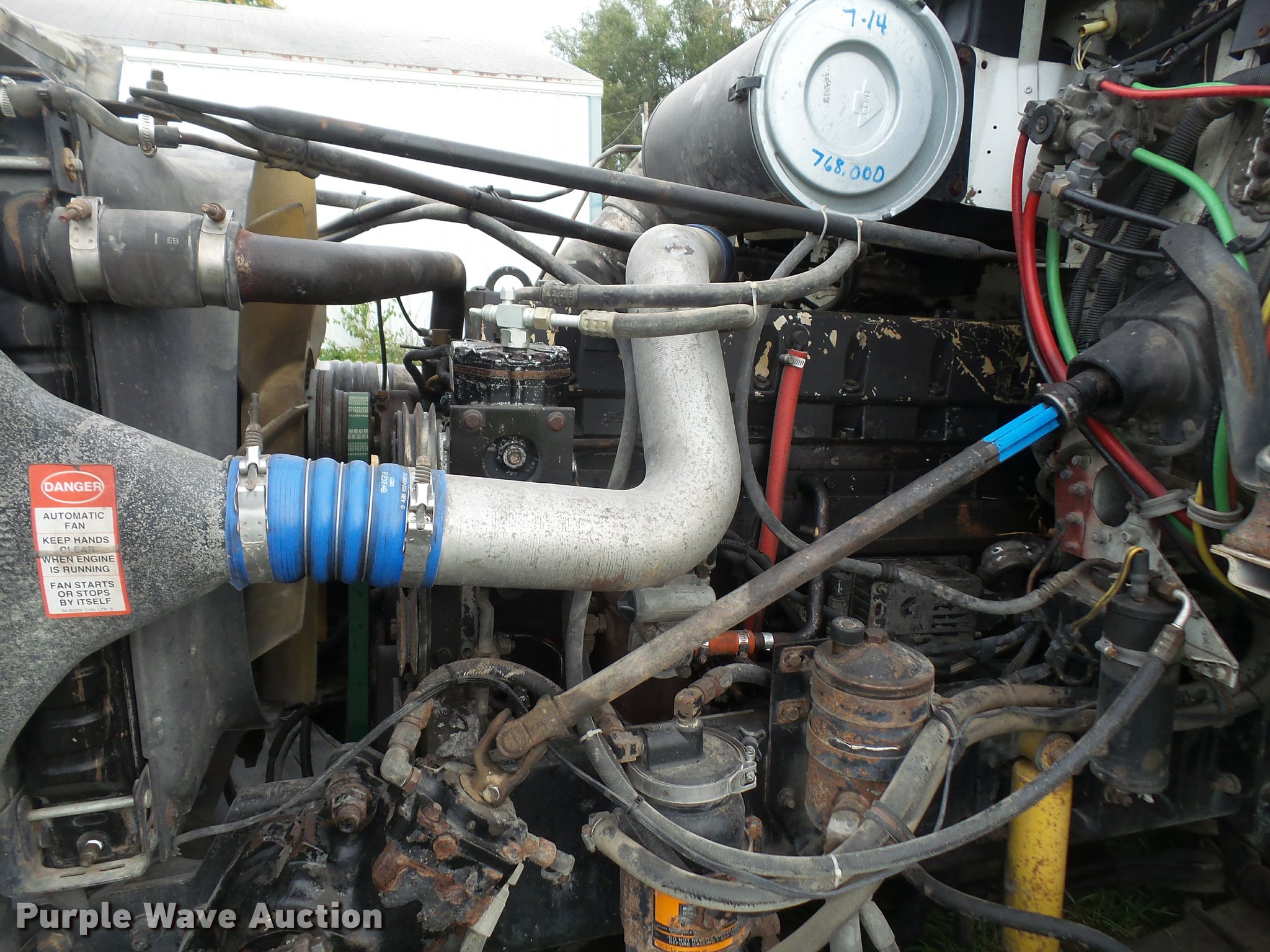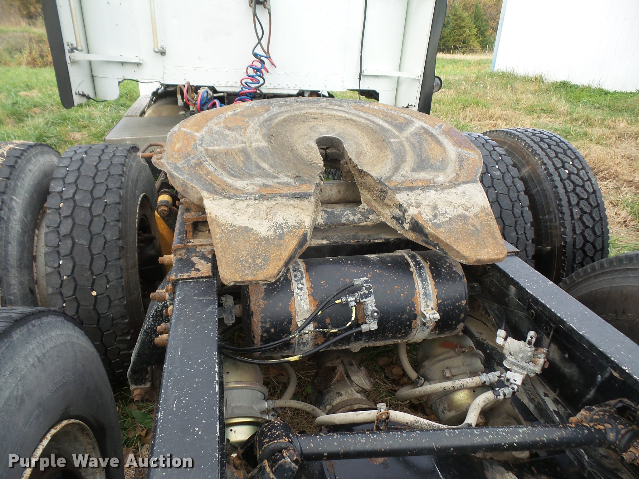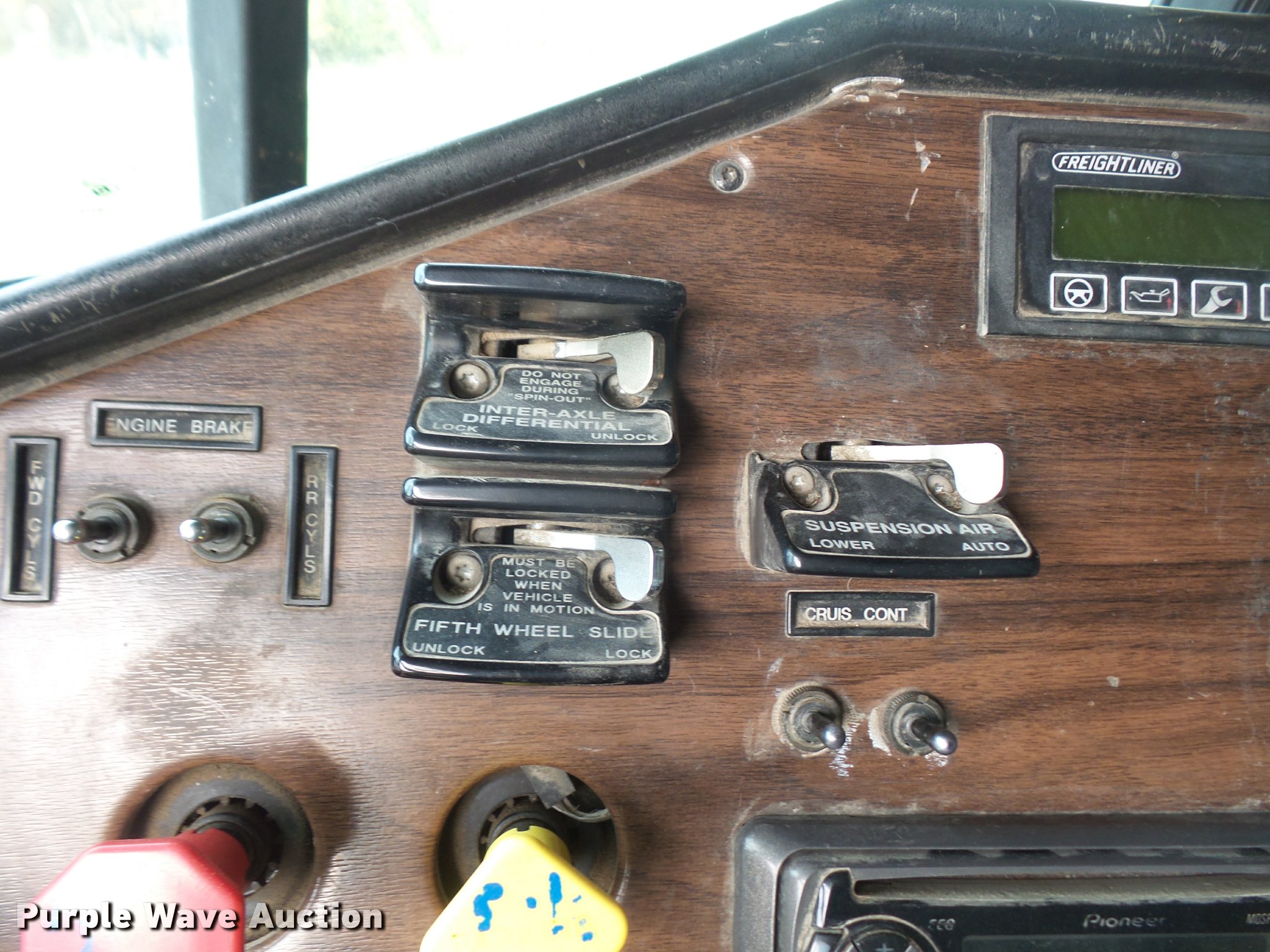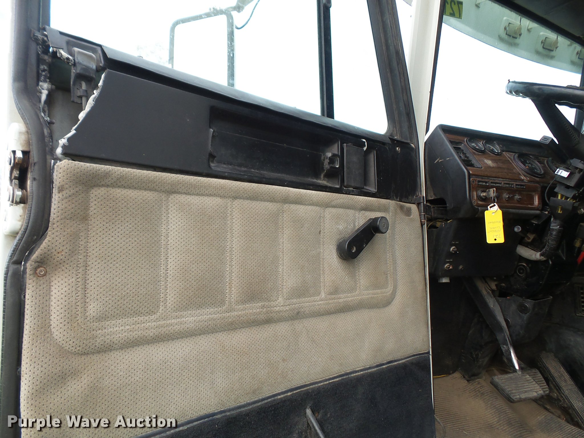 Purple Wave is selling a used Truck Tractor in Kansas. This item is a 1996 Freightliner FLD112 semi truck with the following: 784,453 miles on odometer, Cummins M11 10.8L L6 turbo diesel engine, 350 HP, Nine speed manual transmission, Tandem axle, Inter-axle differential lock, AC and heat, AC belt missing, Tilt, Cruise, AM/FM/CD, Heated mirrors, Air suspension seat, Air ride cab, 60" sleeper, Single bed, Storage cabinets, Dump valves, Single front exhaust stack, Sliding fifth wheel plate, Dual fuel tanks, Air suspension, Air brakes, 295/75R22.5 front tires, 11R22.5 rear tires, GVWR 52,000 lbs, FAWR 12,000 lbs, IAWR 20,000 lbs, RAWR 20,000 lbs