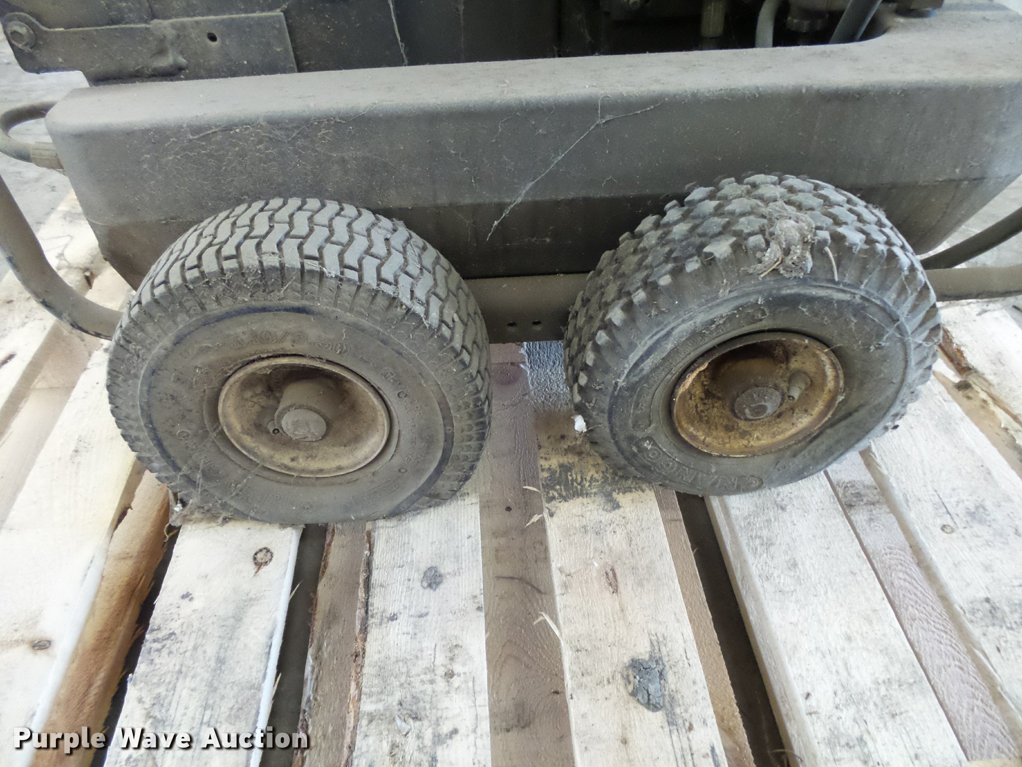 Purple Wave is selling a used Pressure Washer in Missouri. This item is a Pressure washer with the following: Model 2003, Honda GX160 gas engine, 5.5 HP, 10'L hose, 410/13.5-4 tires, (2) tires flat, Unknown operating condition