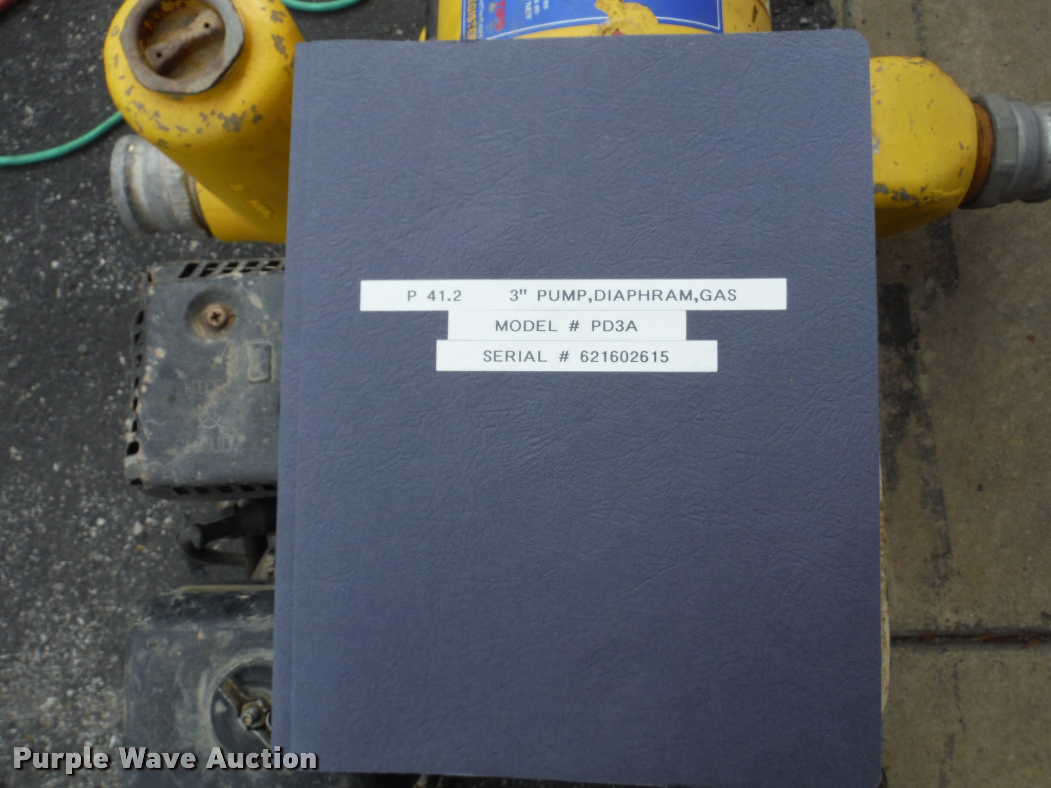 Purple Wave is selling a used Pump in Illinois. This item is a 1994 Wacker PDA3 diaphram pump with the following: Honda gas engine, 4 HP, 3", 88 gallon per minute discharge rate, Serial 621602615