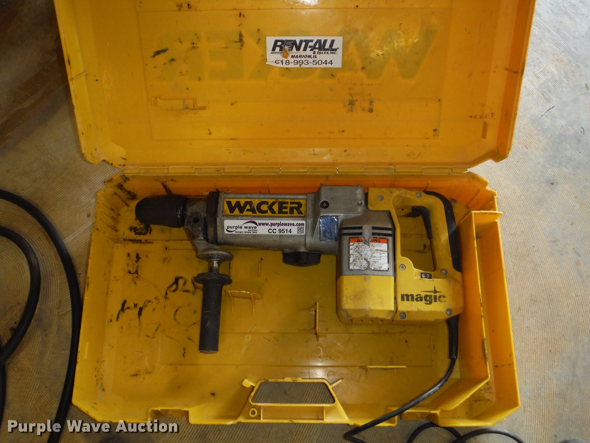 Purple Wave is selling a used Tools in Illinois. This item is a 2007 Wacker EHB11 hammer drill with the following: 2" chuck, Uses SDS-Max shanked bits, Serial 1753646