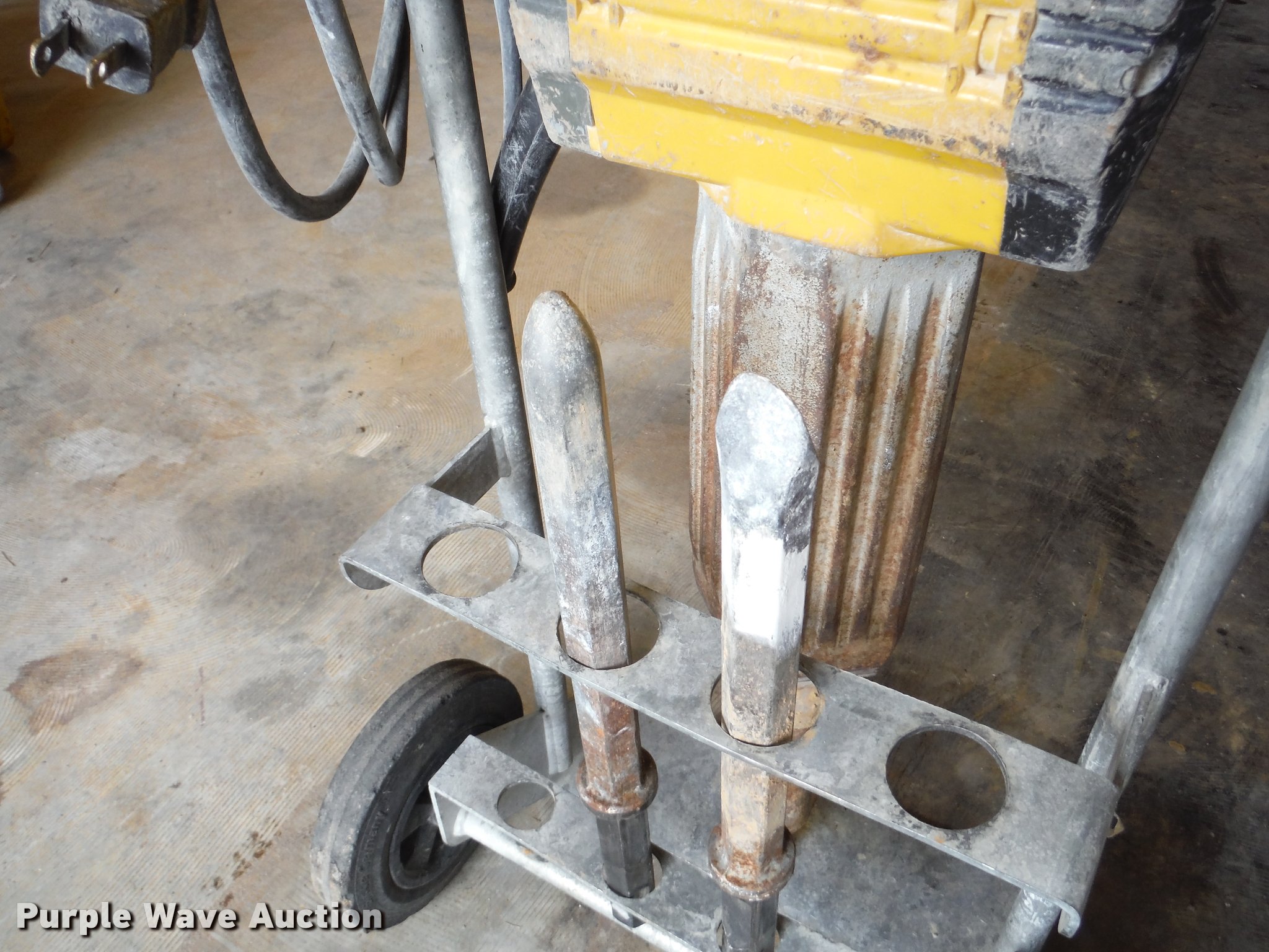 Purple Wave is selling a used Tools in Illinois. This item is a 2012 Wacker EH27 hammer with the following: Chisel, Pointed tool, Cart