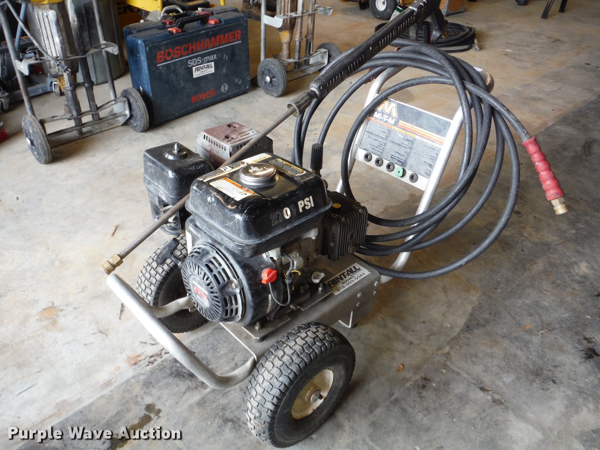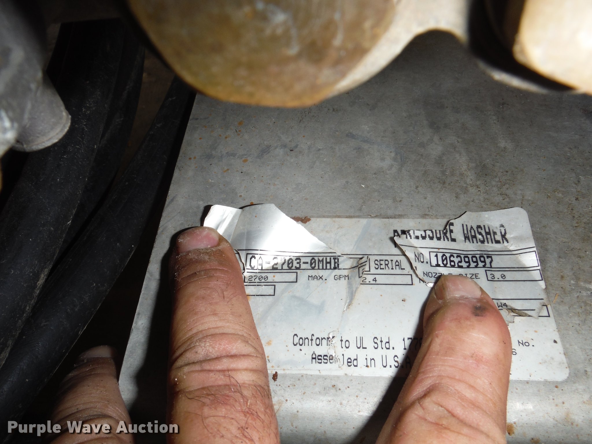 Purple Wave is selling a used Pressure Washer in Illinois. This item is a 2012 Mi-T-M CA-27030-MHB pressure washer with the following: Honda gas engine, 6.5 HP, 2,700 psi at 2.4 gallons per minute, 25'L hose, Wand, Serial 10629997