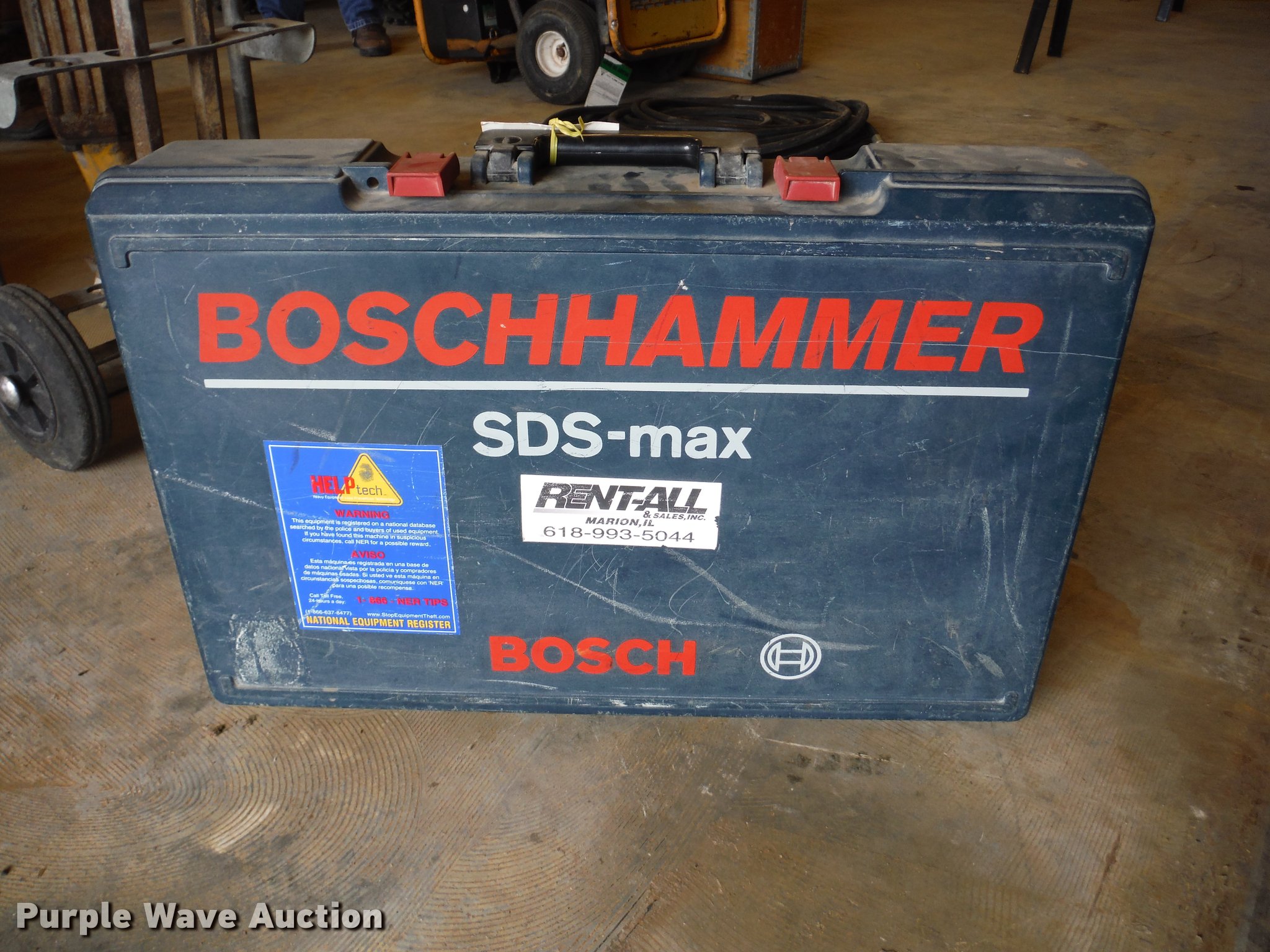 Purple Wave is selling a used Tools in Illinois. This item is a Bosch 11223EVS hammer drill with the following: 2" chuck, Case, Uses SDS-Max shanked bits