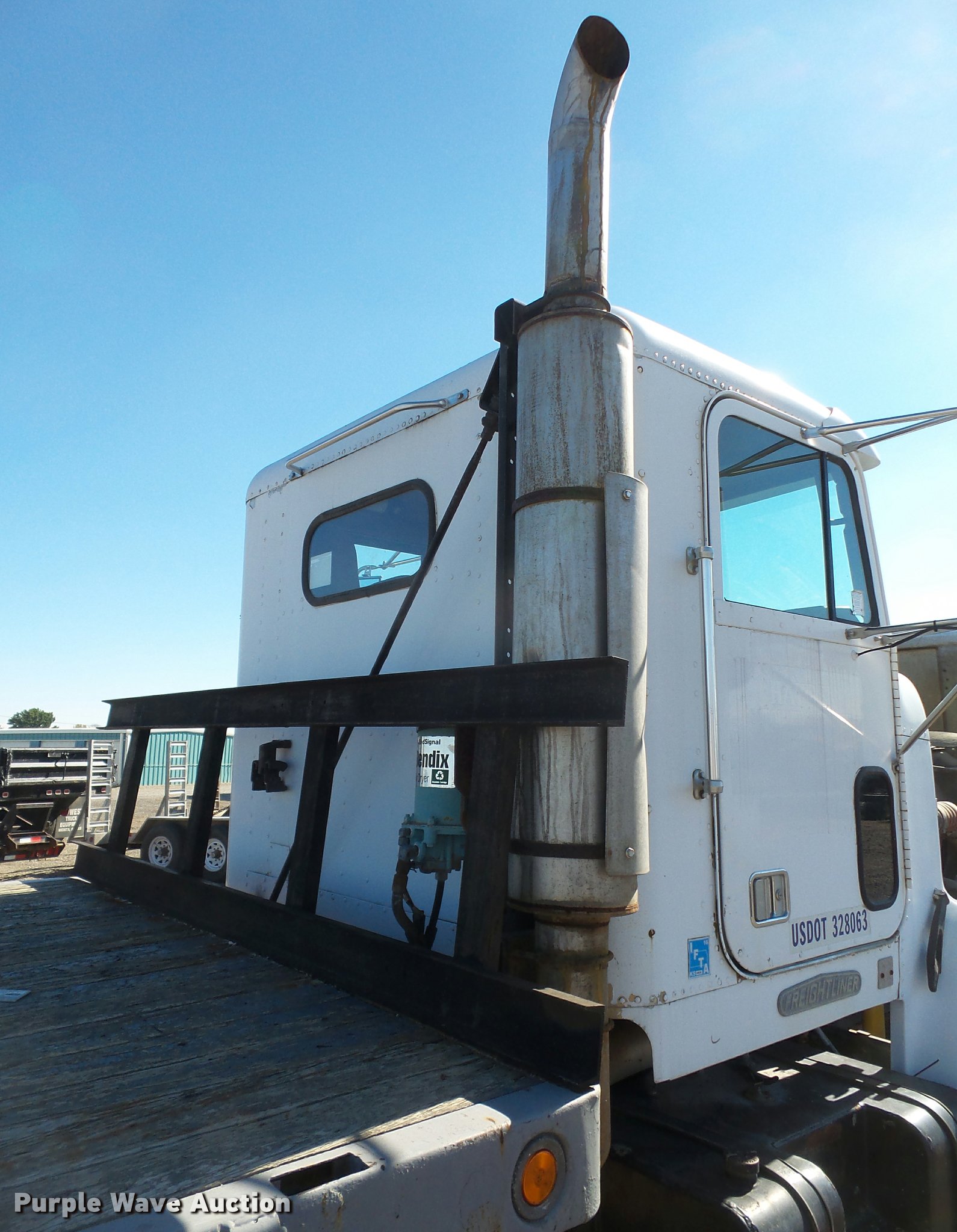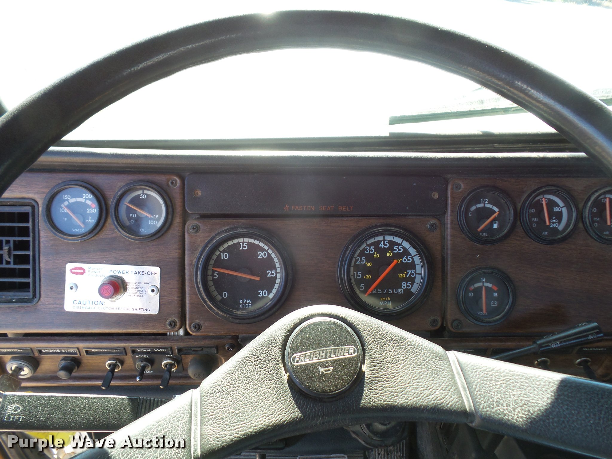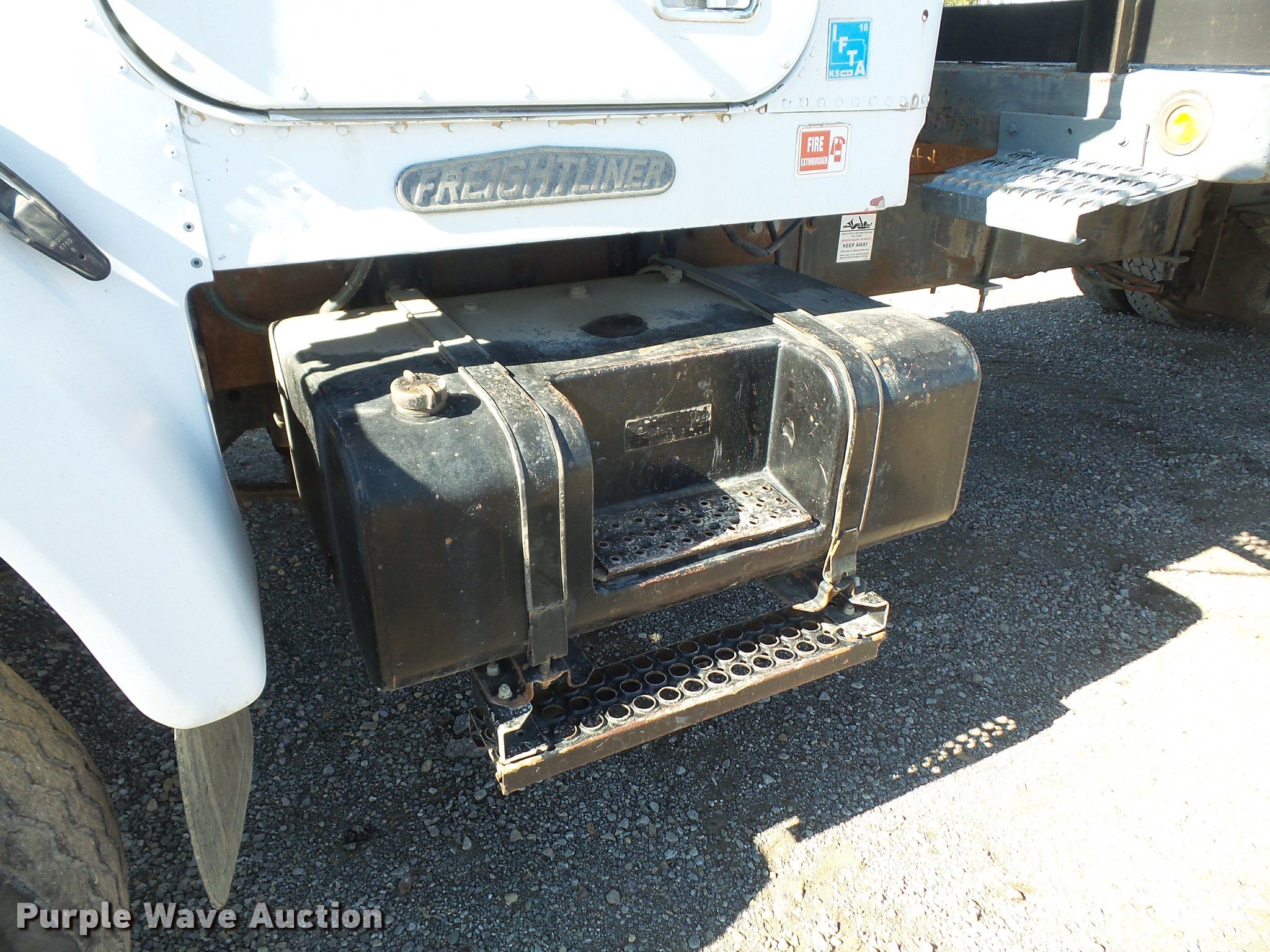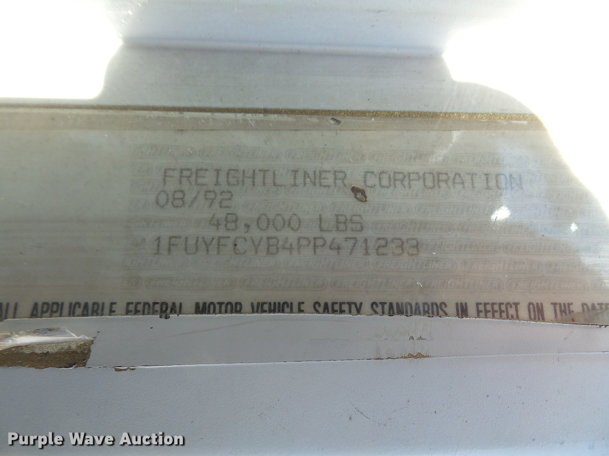 Purple Wave is selling a used Flat Bed Truck in Kansas. This item is a 1993 Freightliner FLD120SD flatbed truck with the following: 25,750 miles on odometer, Actual mileage unknown, Cummins N14 14.0L L6 turbo diesel engine, 350 HP, Eaton Fuller RTX14609 nine speed manual transmission, Tandem axle, Inter-axle differential lock, AC and heat, AM/FM, Heated mirrors, Air suspension seat, PTO, 21'L x 96"W flatbed, Wood deck, Single exhaust stack, Dual fuel tanks, Spring over walking beam suspension, Air brakes, 385/65R22.5 front tires, 285/75R22.5 rear tires, GVWR 48,000 lbs, No PTO output shaft, Unit# 193FW4