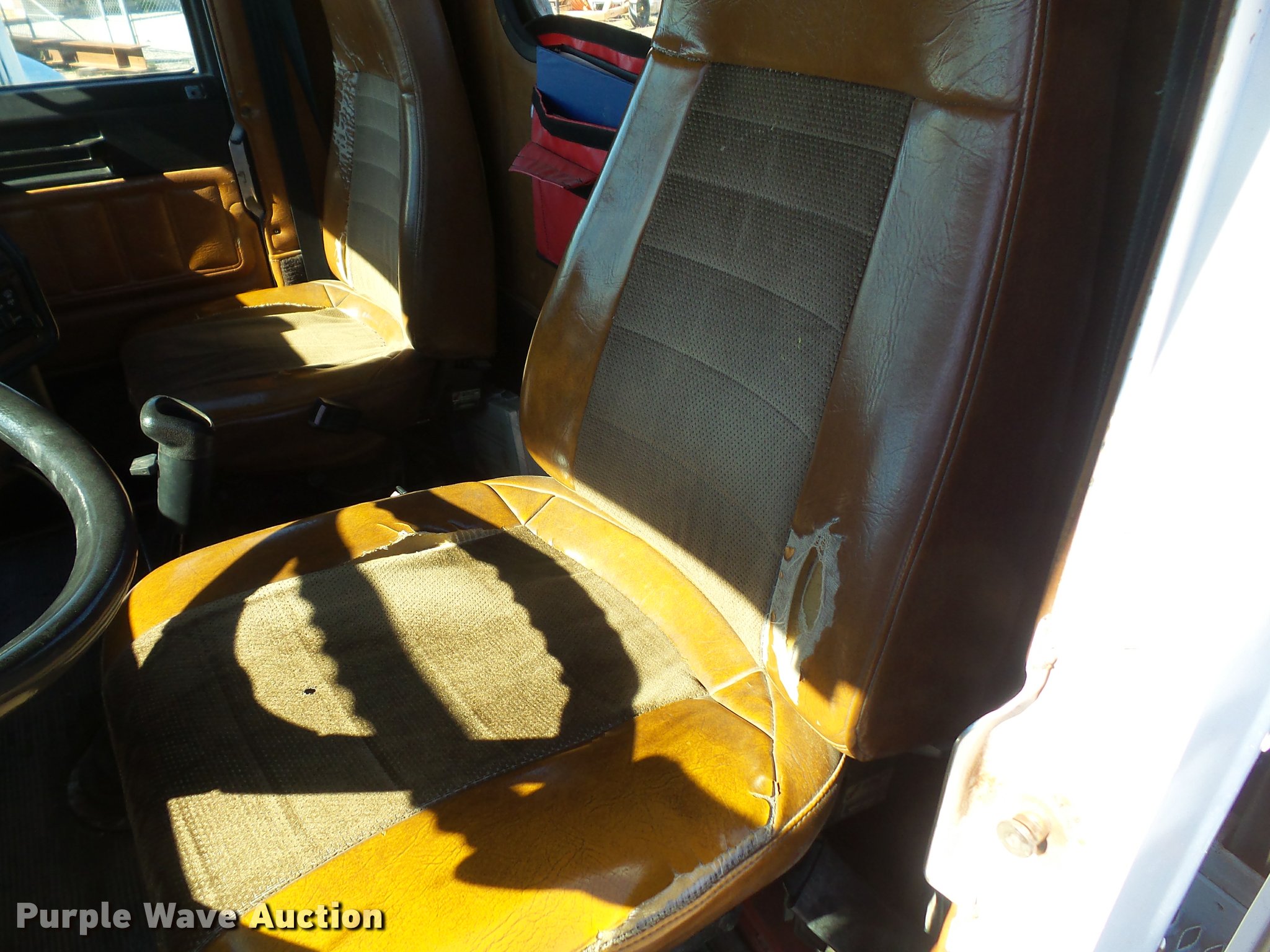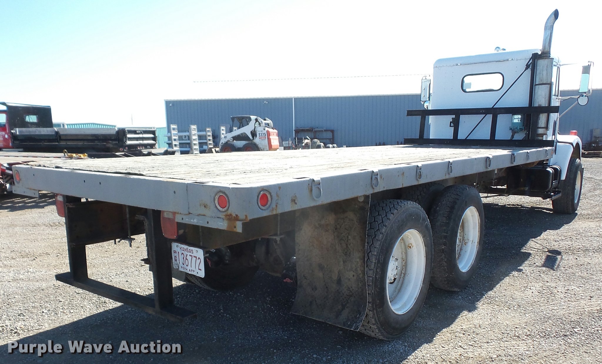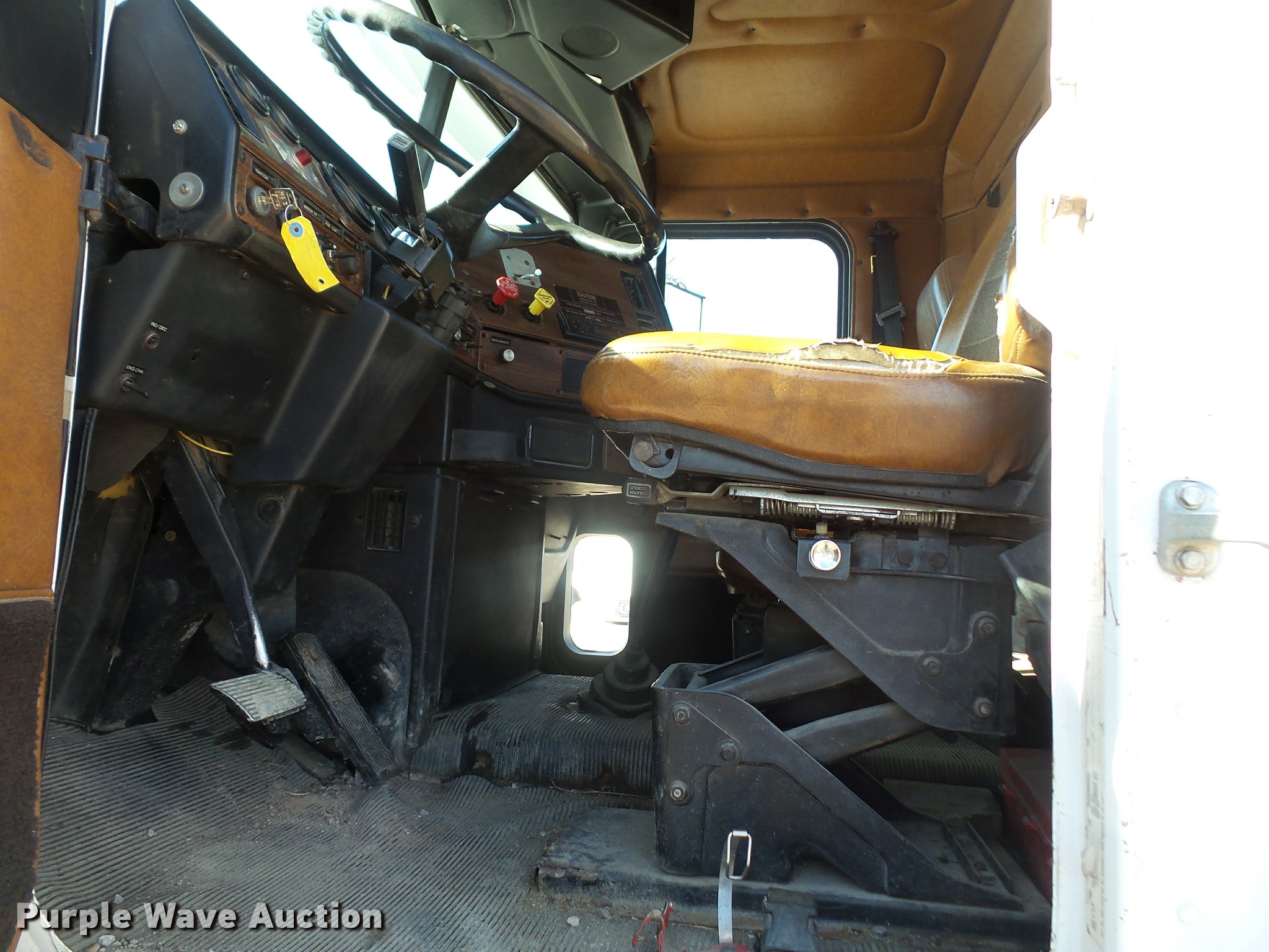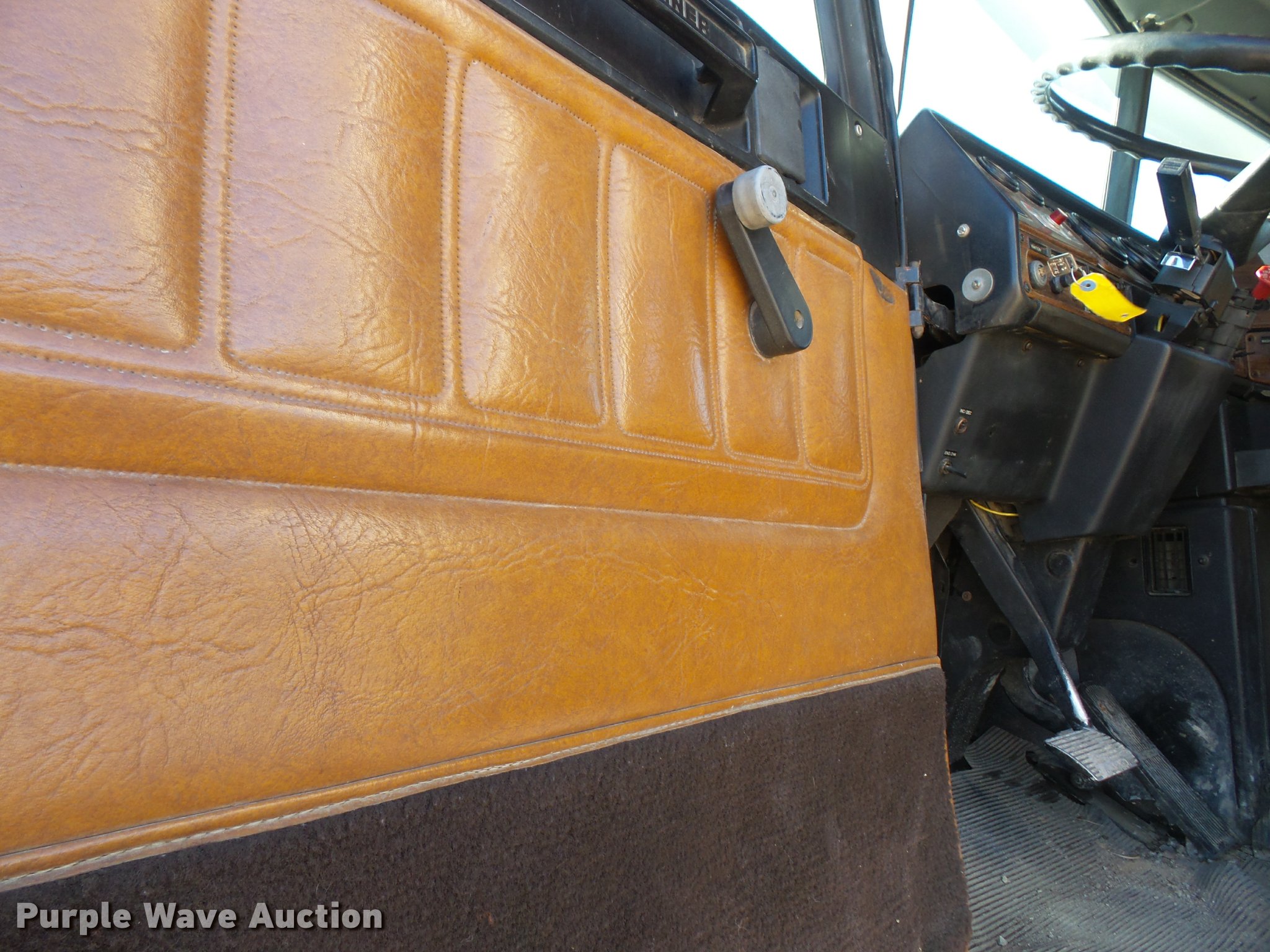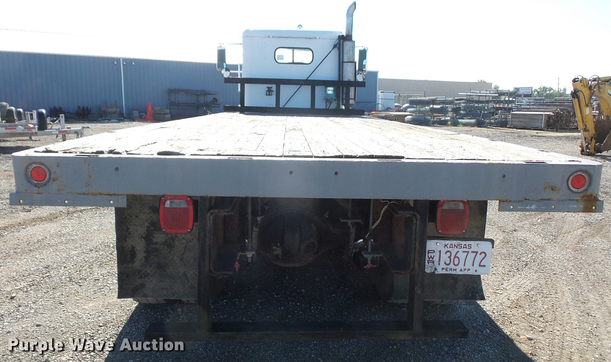 Purple Wave is selling a used Flat Bed Truck in Kansas. This item is a 1993 Freightliner FLD120SD flatbed truck with the following: 25,750 miles on odometer, Actual mileage unknown, Cummins N14 14.0L L6 turbo diesel engine, 350 HP, Eaton Fuller RTX14609 nine speed manual transmission, Tandem axle, Inter-axle differential lock, AC and heat, AM/FM, Heated mirrors, Air suspension seat, PTO, 21'L x 96"W flatbed, Wood deck, Single exhaust stack, Dual fuel tanks, Spring over walking beam suspension, Air brakes, 385/65R22.5 front tires, 285/75R22.5 rear tires, GVWR 48,000 lbs, No PTO output shaft, Unit# 193FW4