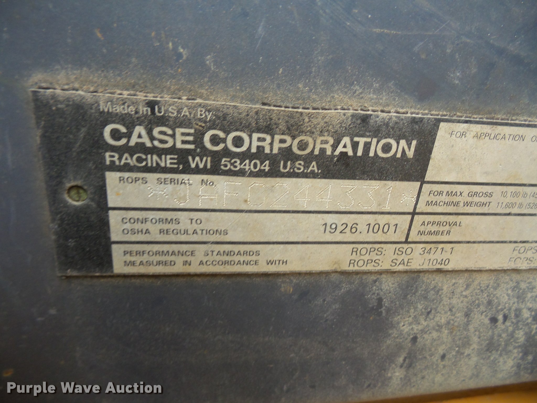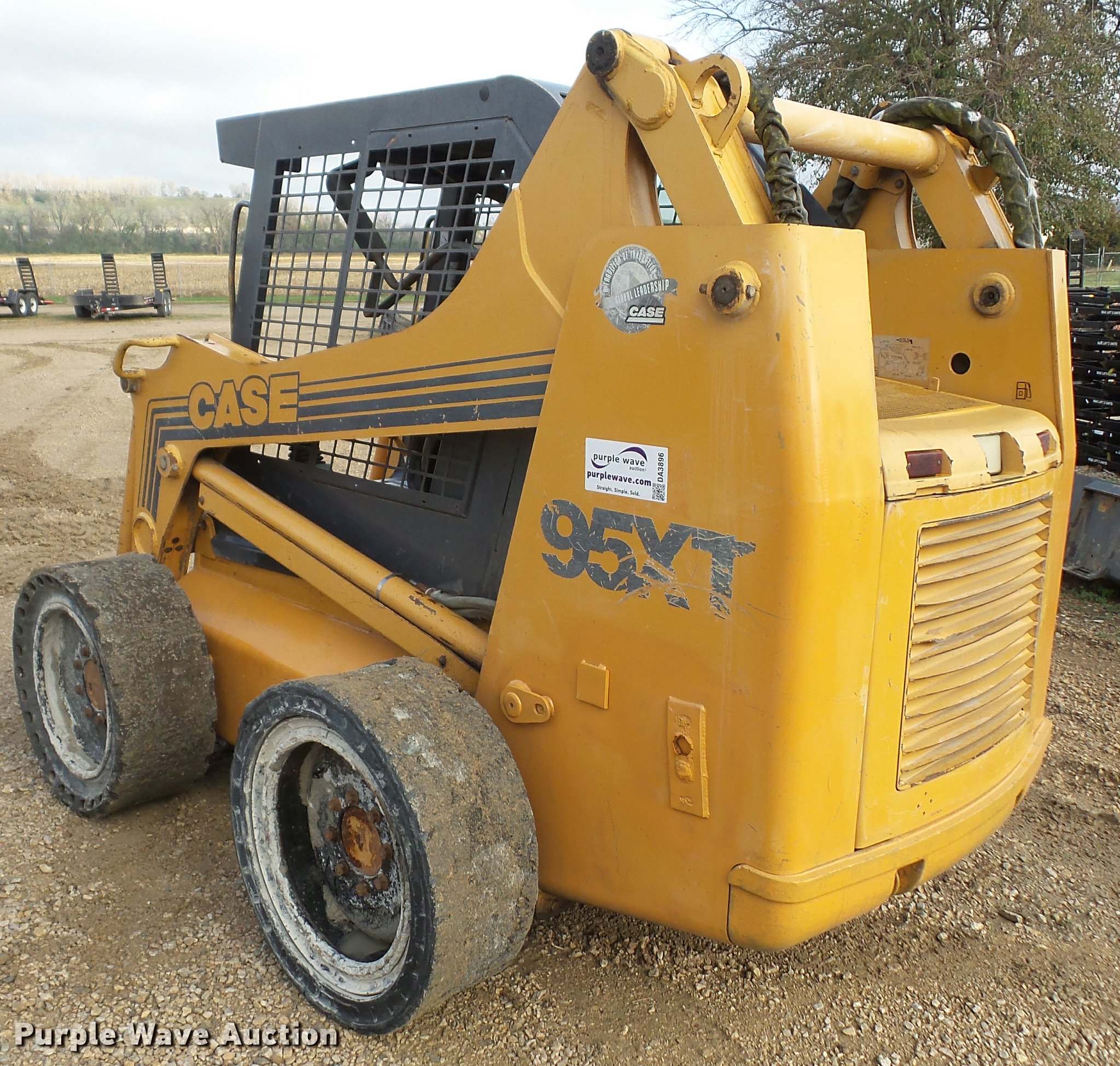 Purple Wave is selling a used Skid Steer Loader in Kansas. This item is a 1997 Case 95XT skid steer with the following: Unknown hours on meter, Hour meter inoperable, Four cylinder diesel engine, Hydrostatic transmission, OROPS, Joystick controls, On/off switch for fuel pump, Auxiliary hydraulics, Hydraulic quick coupler, 33x12-120 solid tires, Serial JAF0237597