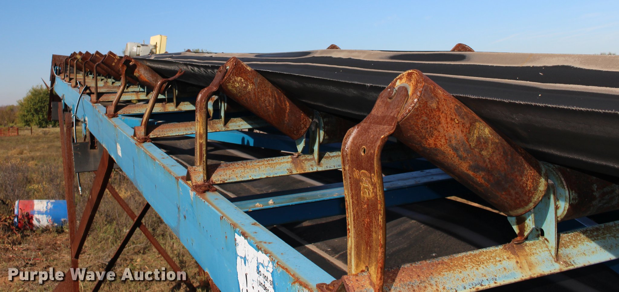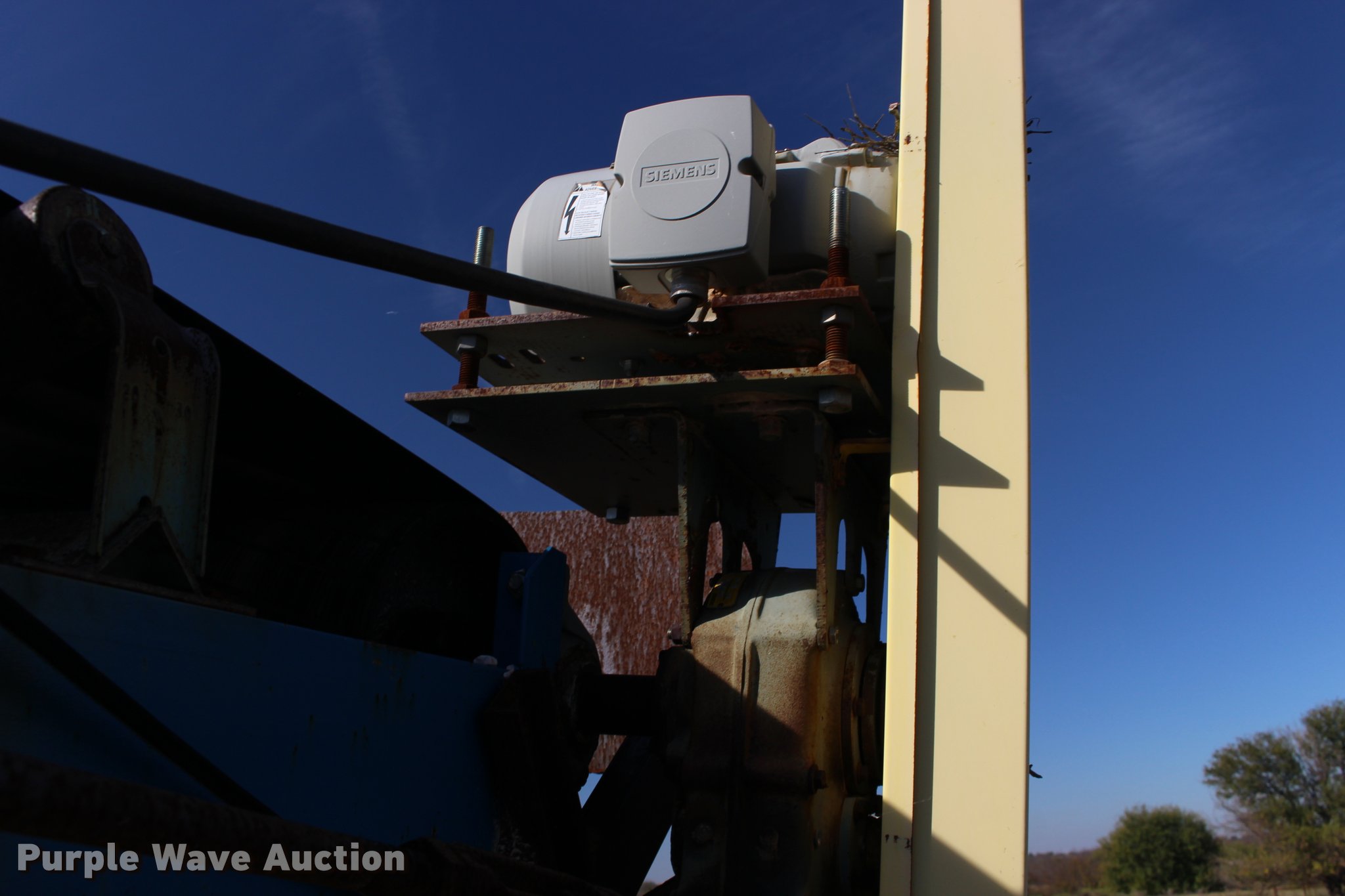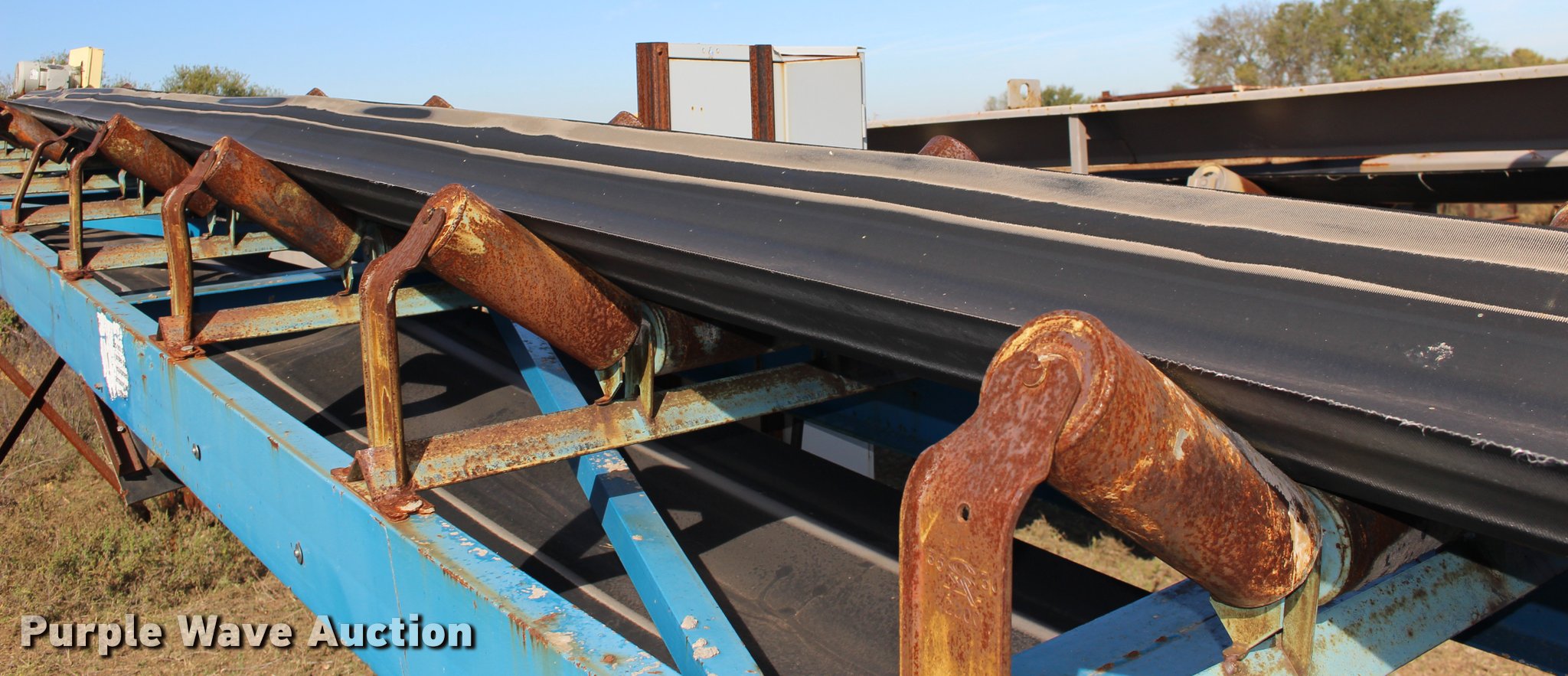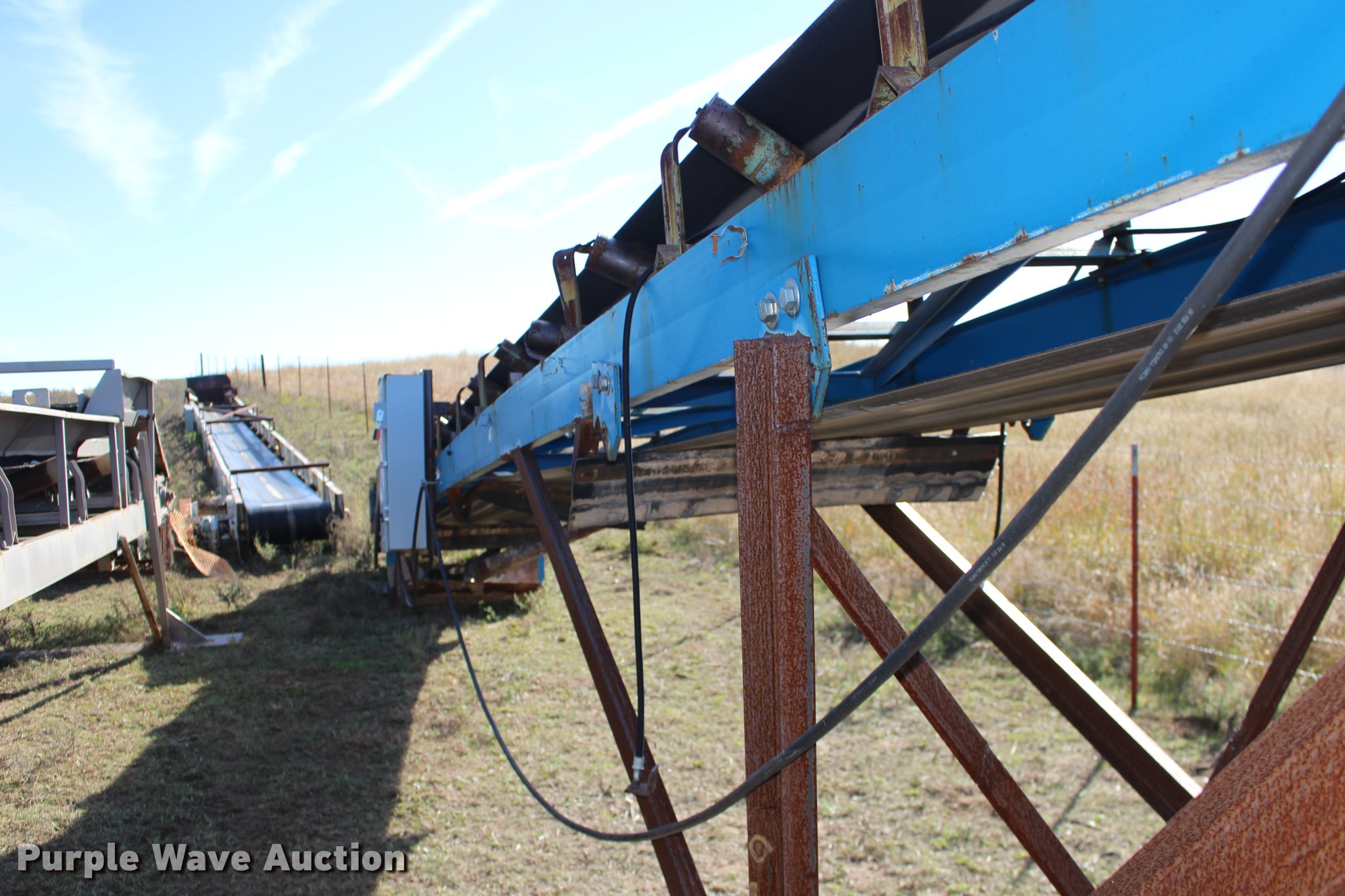Purple Wave is selling a used Conveyor in Kansas. This item is a Hoover CF30-44 aggregate conveyor with the following: Siemens electric motor, 10 HP, 208-230/460V, 44'L, 30"W belt, Serial 00-2029