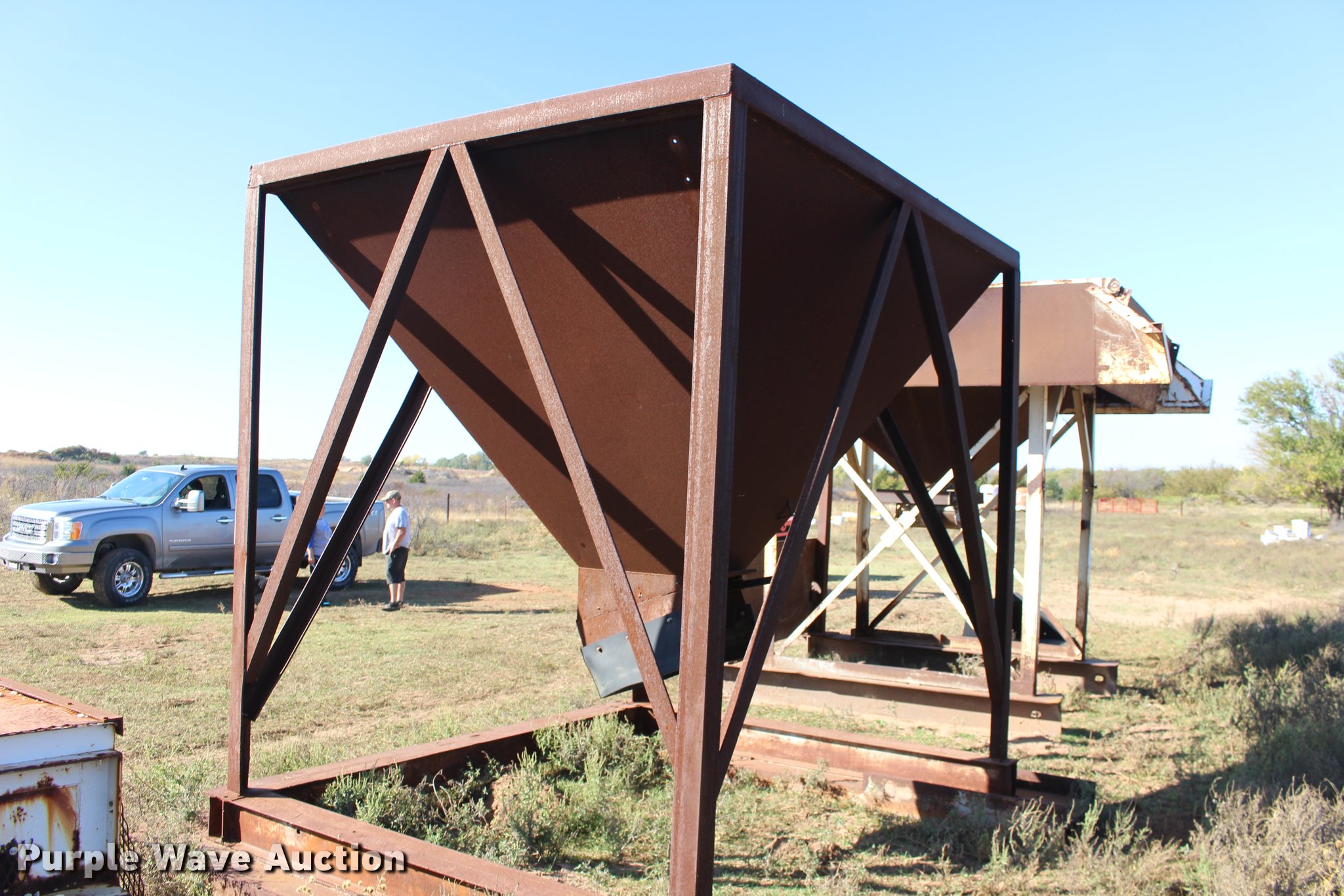 Purple Wave is selling a used Quarry or Aggregate Attach. in Kansas. This item is a Steel aggregate surge box with the following: 10' x 8' x 10'