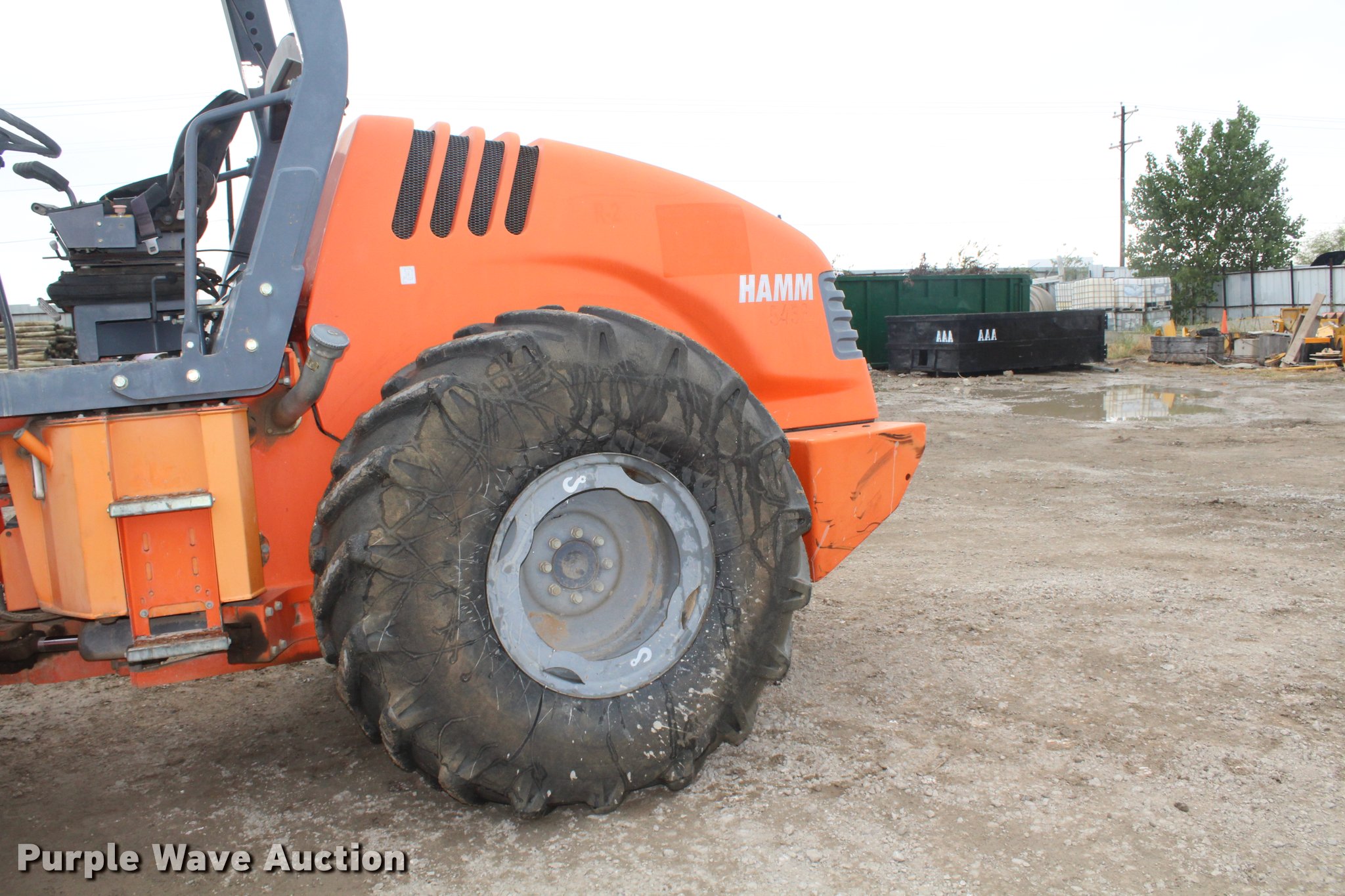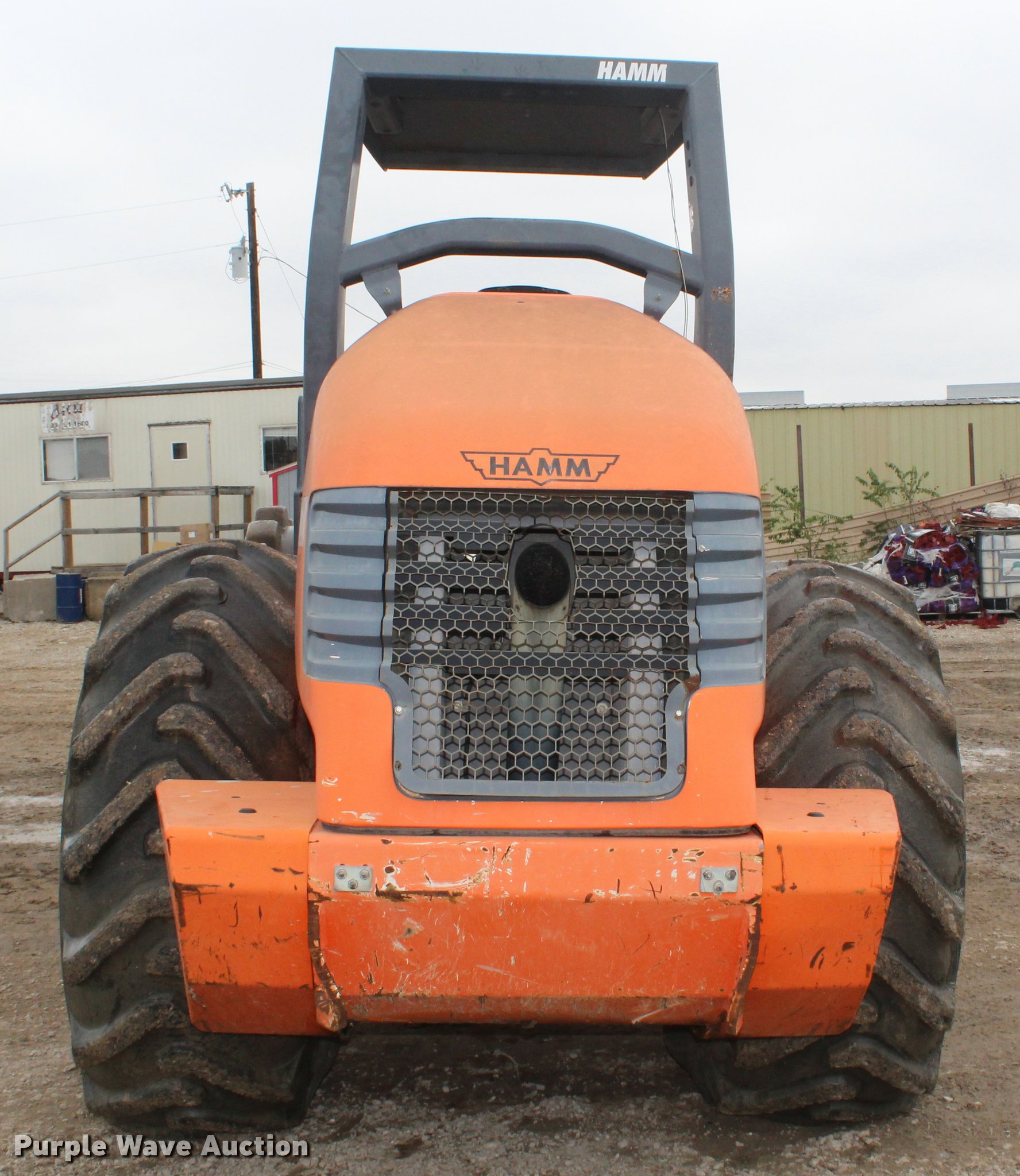 Purple Wave is selling a used Single Drum Roller Compactor in Texas. This item is a Hamm 3412P single drum roller with the following: 3,105 hours on meter, Duetz BF-4M-2012-C four cylinder turbo diesel engine, Hydrostatic transmission, Canopy, Tilt, Suspension seat, 84"W x 60" diameter padfoot drum, Front and rear drum scrapers, 23.1-26 rear tires, Unit must be jump started