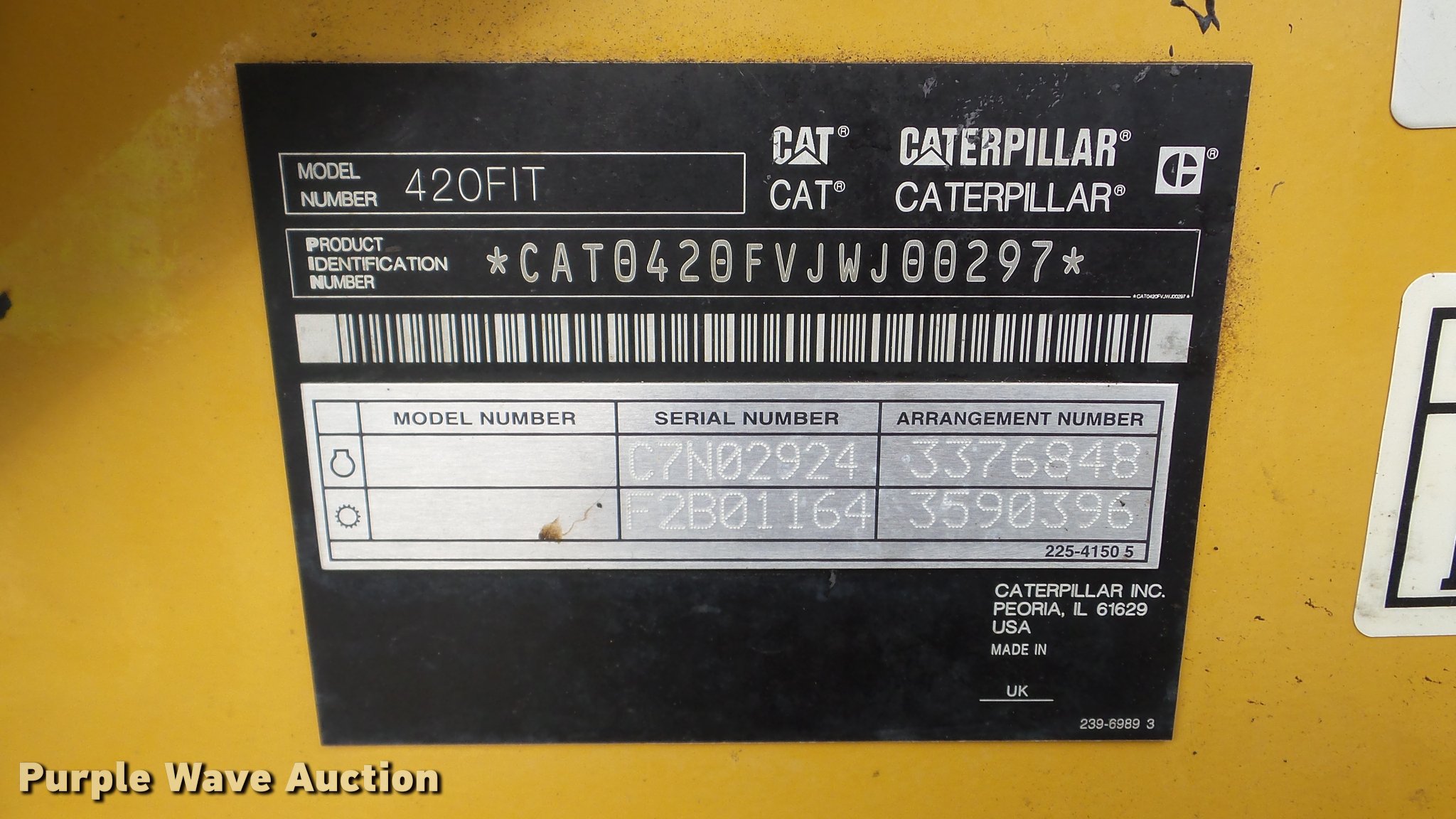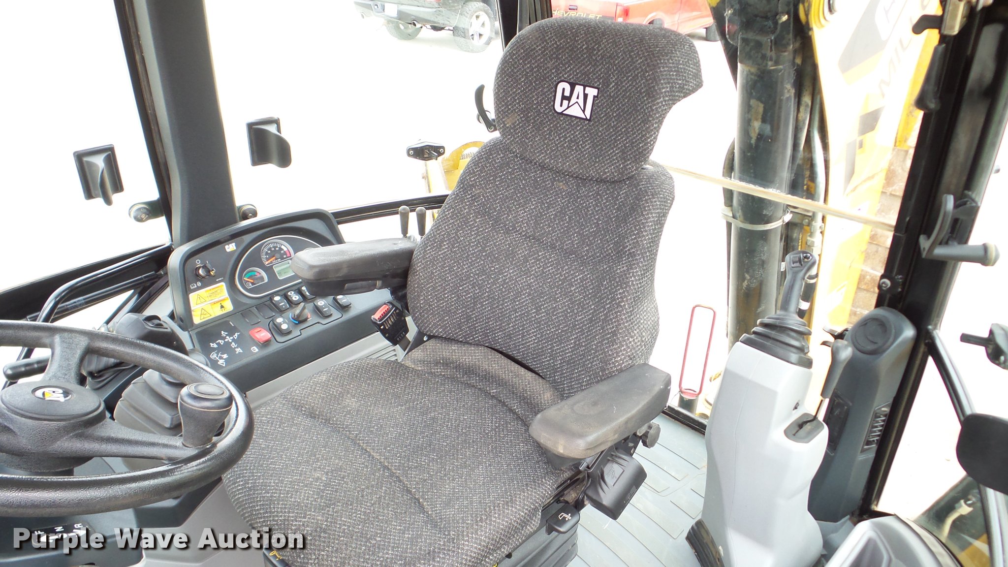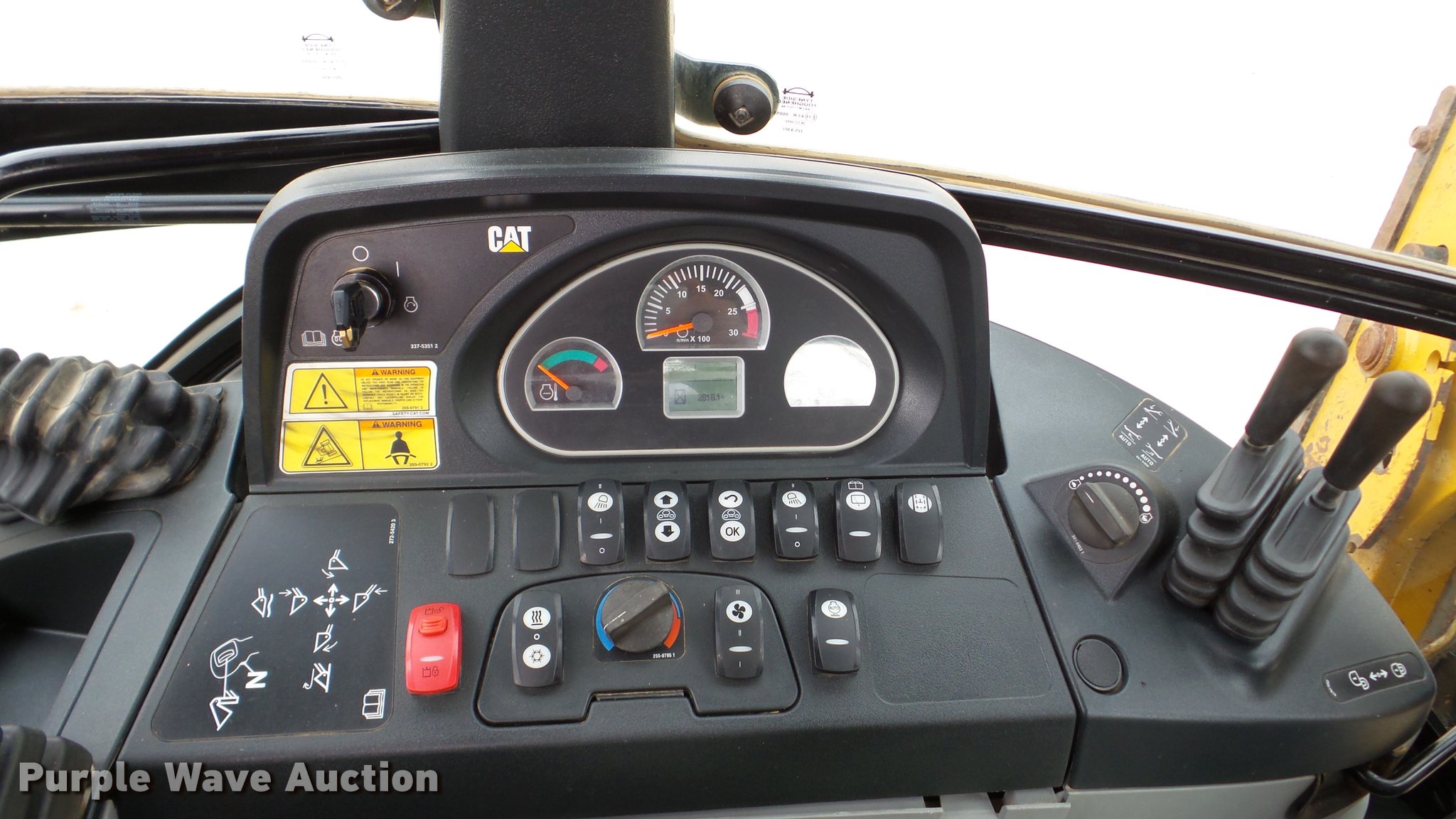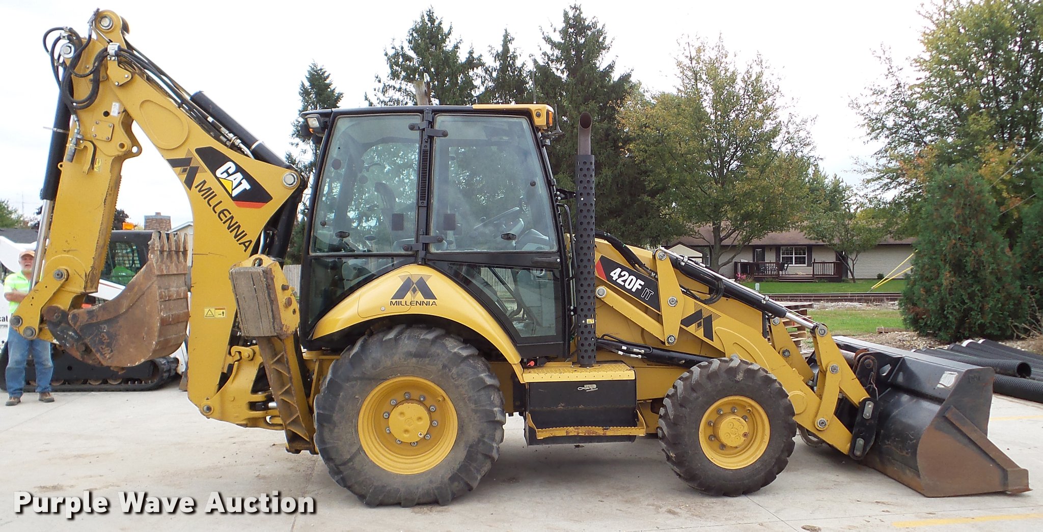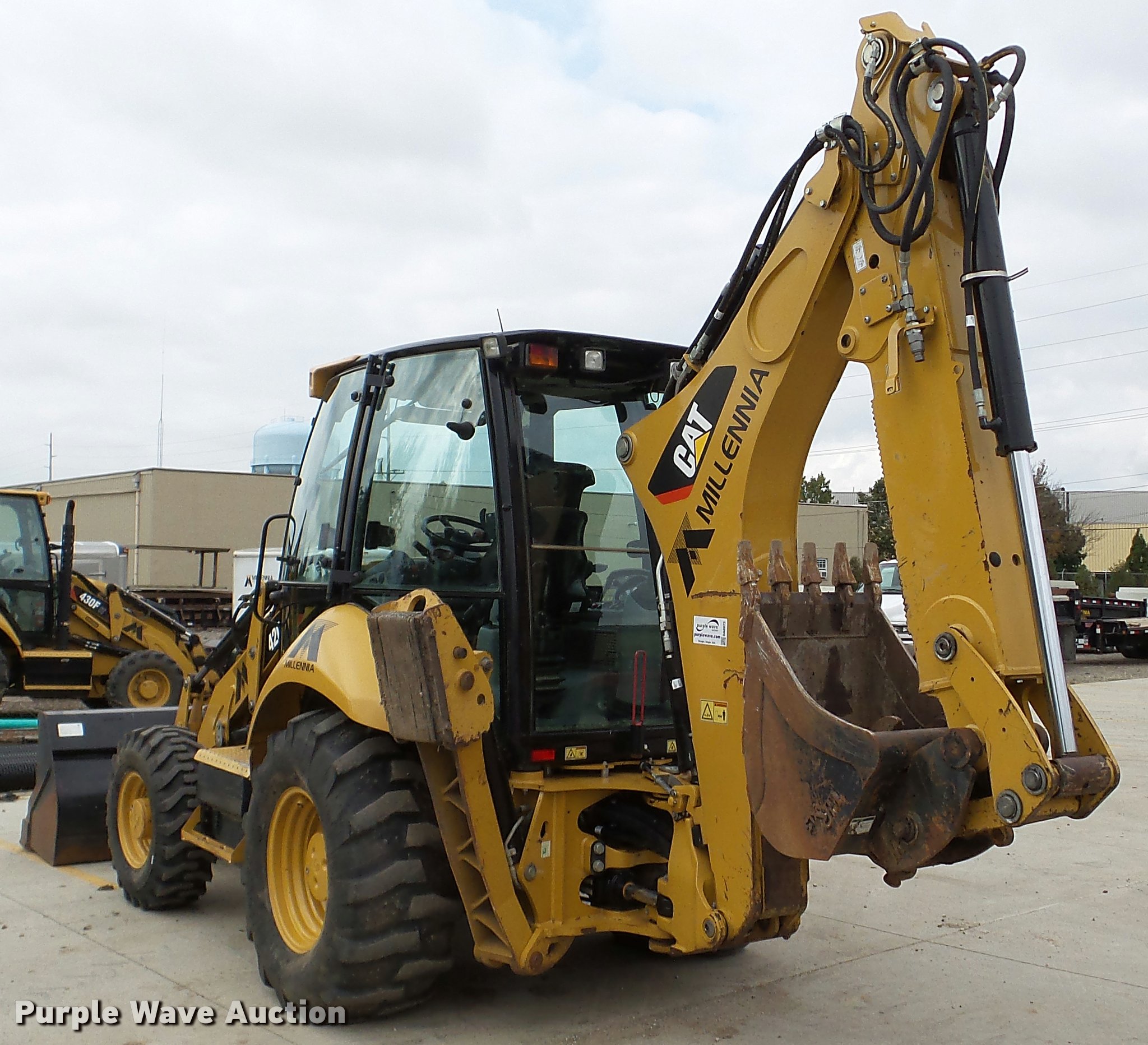 Purple Wave is selling a used Tractor Loader Backhoe in Illinois. This item is a 2013 Caterpillar 420F IT backhoe with the following: 2,818 hours on meter, Caterpillar C4.4 turbo diesel engine, Shuttle shift transmission, 4F-4R gears, Four wheel drive, EROPS, AC and heat, AM/FM, Tilt steering wheel, Air suspension seat, Wobble stick backhoe controls, Wipers, Front and rear work lights, Backup alarm, Caterpillar 251-1794 92"W loader bucket, Bolt-on cutting edge, Self-leveling bucket, Auxiliary hydraulics, E-stick, 72"W backhoe bucket, (5) teeth, Auxiliary hydraulics, Ride control, 12.5-18 front tires, 19.5L-24 rear tires, Serial CATD420FUJWJ00297