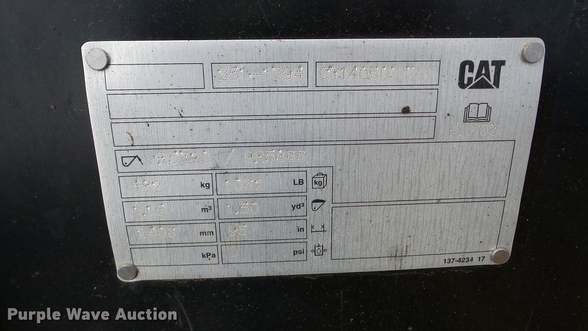 - Caterpillar 251-1794 92"W loader bucket