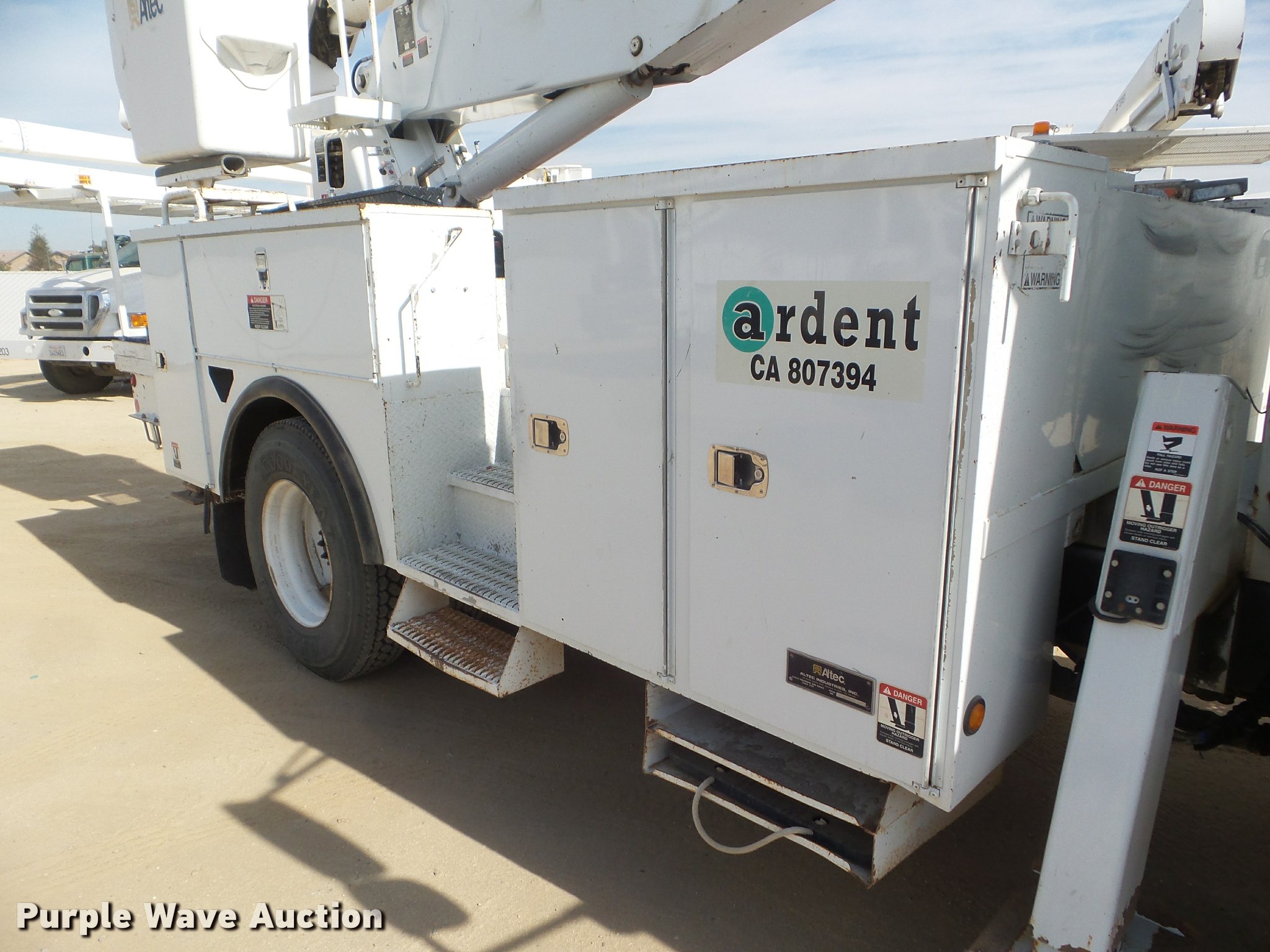 2009 International DuraStar 4300 bucket truck. 55,035 miles on odometer, 7,180 hours on meter, International MaxxForce DT DT466 7.6L L6 turbo diesel engine, Automatic transmission, Single axle, AC and heat, Cruise, AM/FM, Spring suspension seat, Beacon light, Front tow hooks, Trailer brake controller, PTO, Altec 16'L service bed Serial 971178574407/08, Shelving, Receiver hitch, Trailer wiring, Glad hand couplers, 2008 Altec AA755L boom Serial 0708BZ5703, 56' boom length, 600 lbs maximum lift capacity, Man basket, Platform and ground controls, Boom rotation, Articulating, insulated boom, Single fuel tank, 188" wheelbase, Spring suspension, Air brakes, 11R22.5 tires, GVWR 33,000 lbs, California emissions compliant, Boom rust Boom is not certified, Contents are not included, Unit# 1361. California title. 1HTMMAAN79H105156. Ardent Services. 4824 Rosedale Lane. Bakersfield, CA 93314