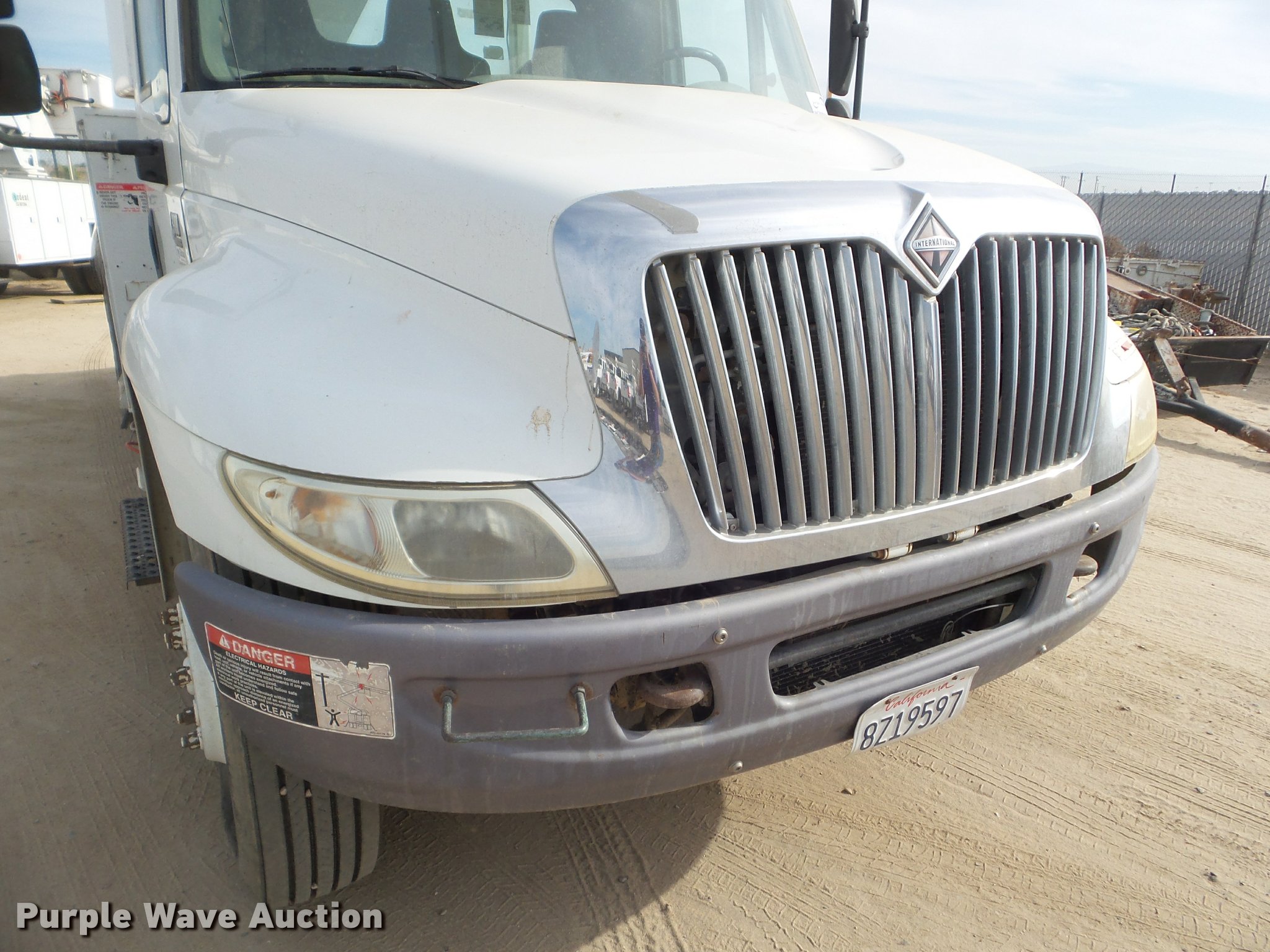 Purple Wave is selling a used Bucket Truck in California. This item is a 2008 International DuraStar 4300 bucket truck with the following: 51,418 miles on odometer, 5,631 hours on meter, International MaxxForce DT DT466 7.6L L6 turbo diesel engine, Automatic transmission, Single axle, AC and heat, Cruise, AM/FM, Heated mirrors, Spring suspension seat, Beacon light, Front tow hooks, PTO, Altec service bed, 16'L, Shelving, Pintle hitch, Trailer wiring, Glad hand couplers, 2007 Altec AA755L boom, 600 lbs maximum lift capacity, 56' maximum lift height, Man basket, Platform and ground controls, Boom rotation, Articulating, insulated boom, Single fuel tank, 188" wheelbase, Spring suspension, Air brakes, 11R22.5 tires, GVWR 33,000 lbs, Boom rusted, Boom is not certified, Vehicle is not California emissions compliant, Contents are not included, Unit# 1358