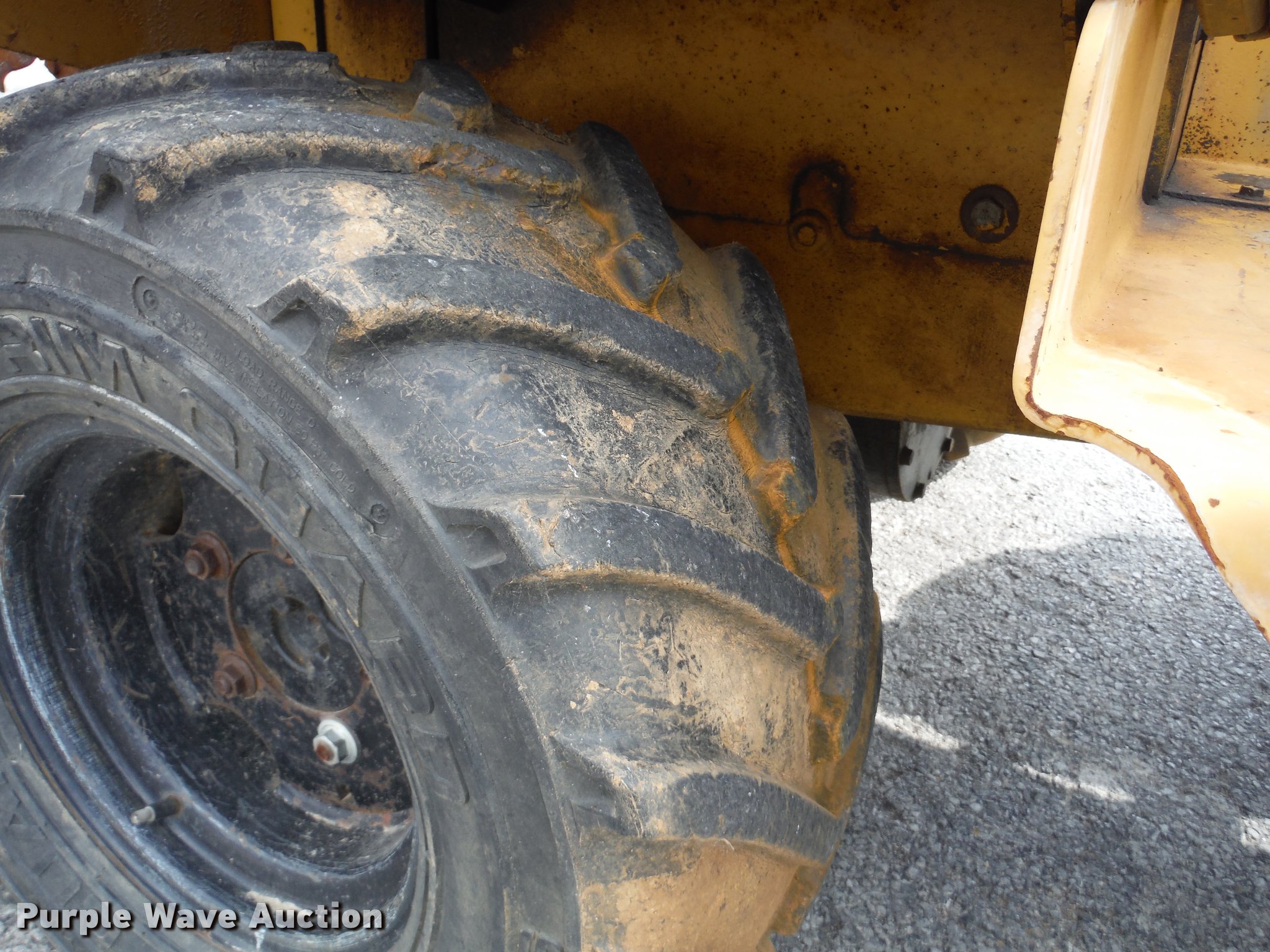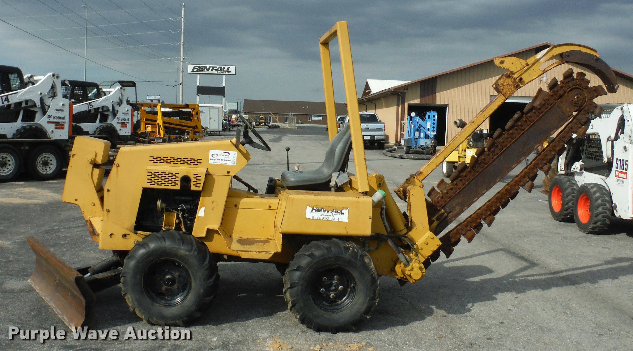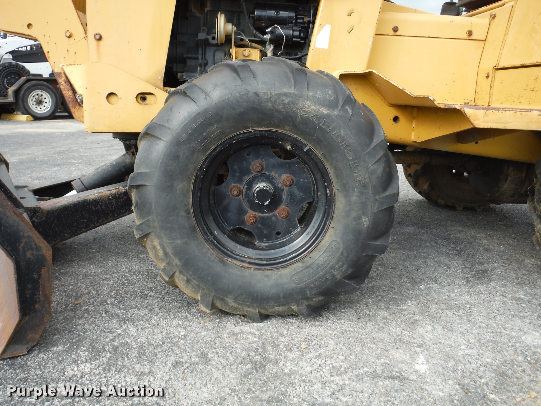 Purple Wave is selling a used Trencher or Rock Saw in Illinois. This item is a 1998 Vermeer V3550A trencher with the following: 1,749 hours on meter, Deutz F3L1011F three cylinder diesel engine, 43 HP, Hydrostatic transmission, Creep control, Four wheel drive, OROPS, Trencher model V3550TR, 60" boom length, 6" cutting width, 8" end idler diameter, 5"W crumber shoe, Four-way back fill blade, Front weights, 26 x 12.00-12 tires, Battery door hinges broken, Non-operational parking brake, Hydraulic oil leak, Possibly from blade swing cylinder, Serial 1VRS072P3W1000590