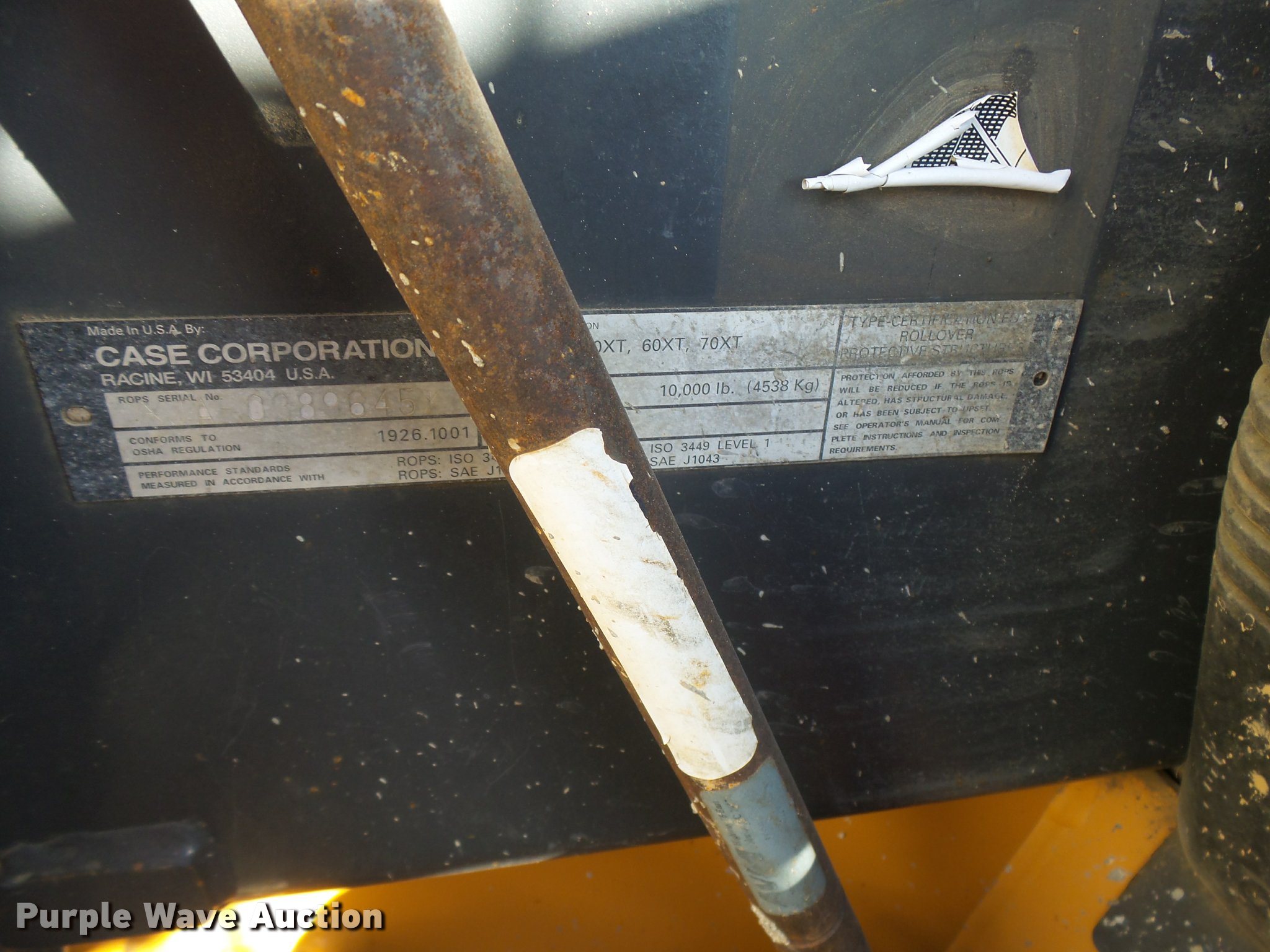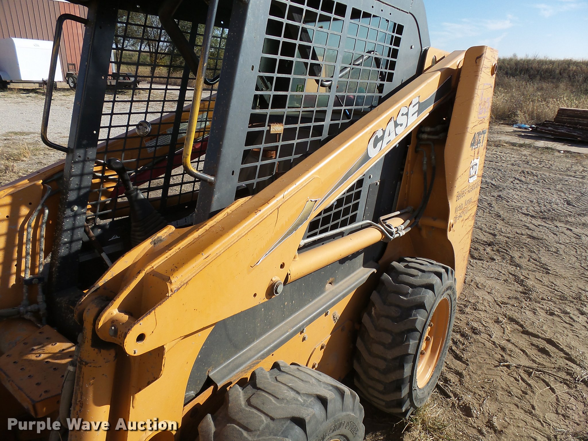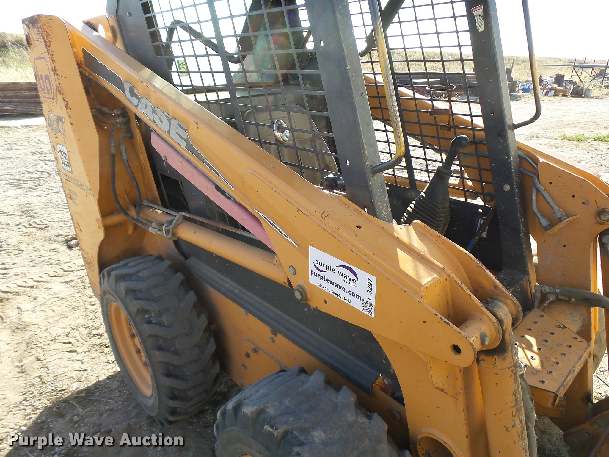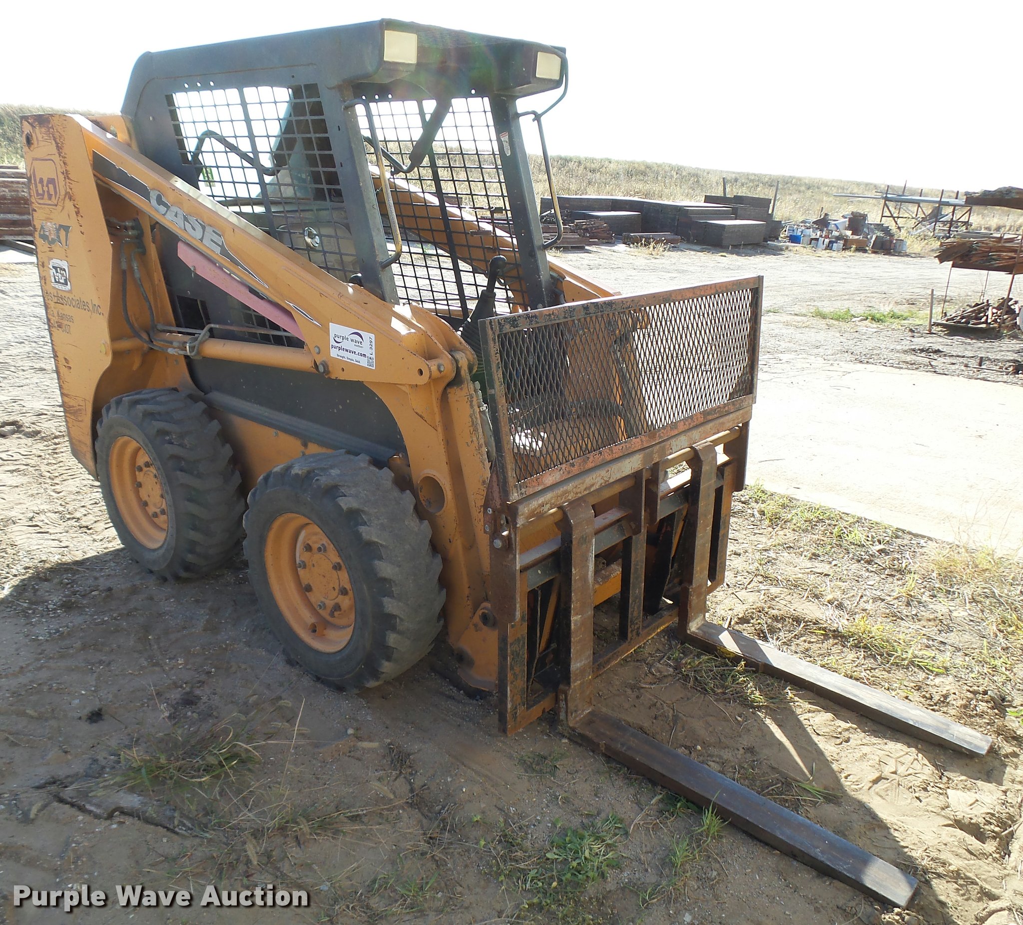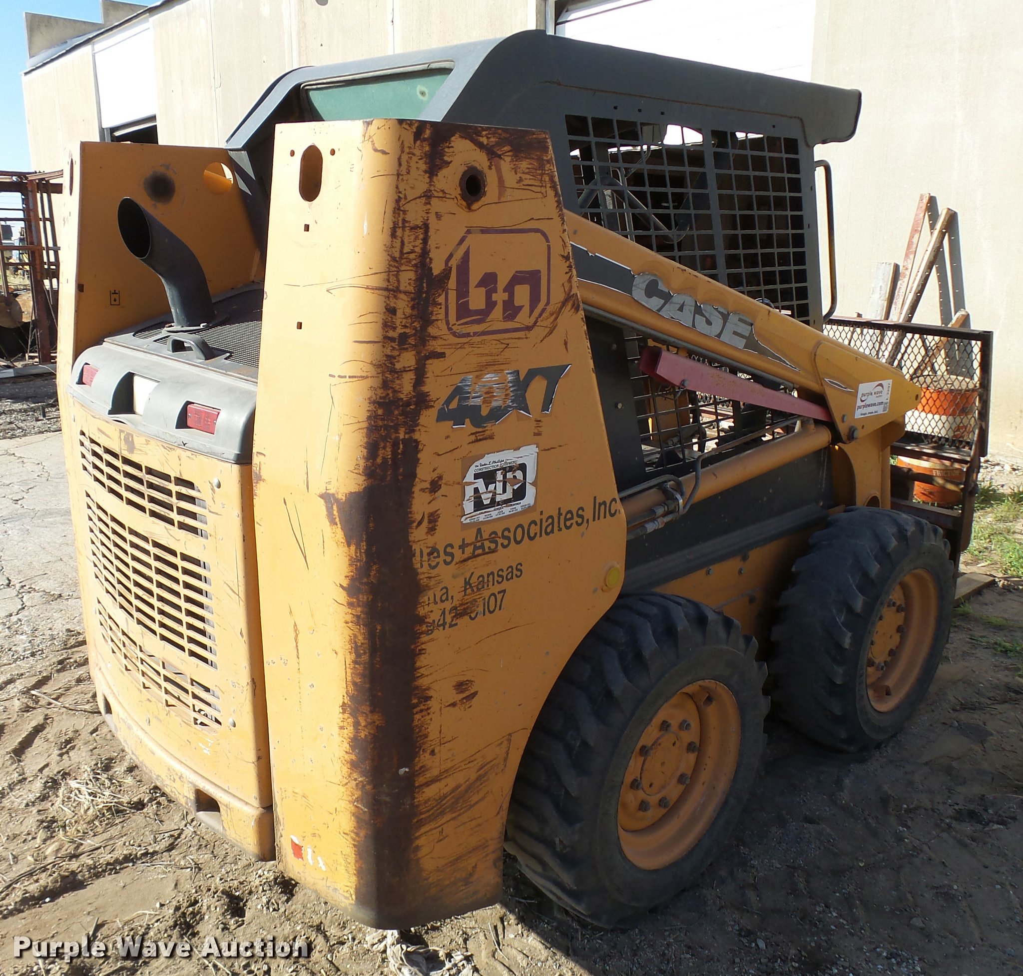 Purple Wave is selling a used Skid Steer Loader in Kansas. This item is a 2002 Case 40XT skid steer with the following: 5,422 hours on meter, Hour meter replaced at 2,775 hours on meter, 5,422 total machine hours, Hours may vary, unit is still in use, Four cylinder diesel engine, Hydrostatic transmission, Open station/canopy, Joystick controls, Spring suspension seat, Front and rear work lights, 65"W bucket, 36"L pallet forks, Front and rear work lights, 10-16.5 tires, Serial JAF0385062