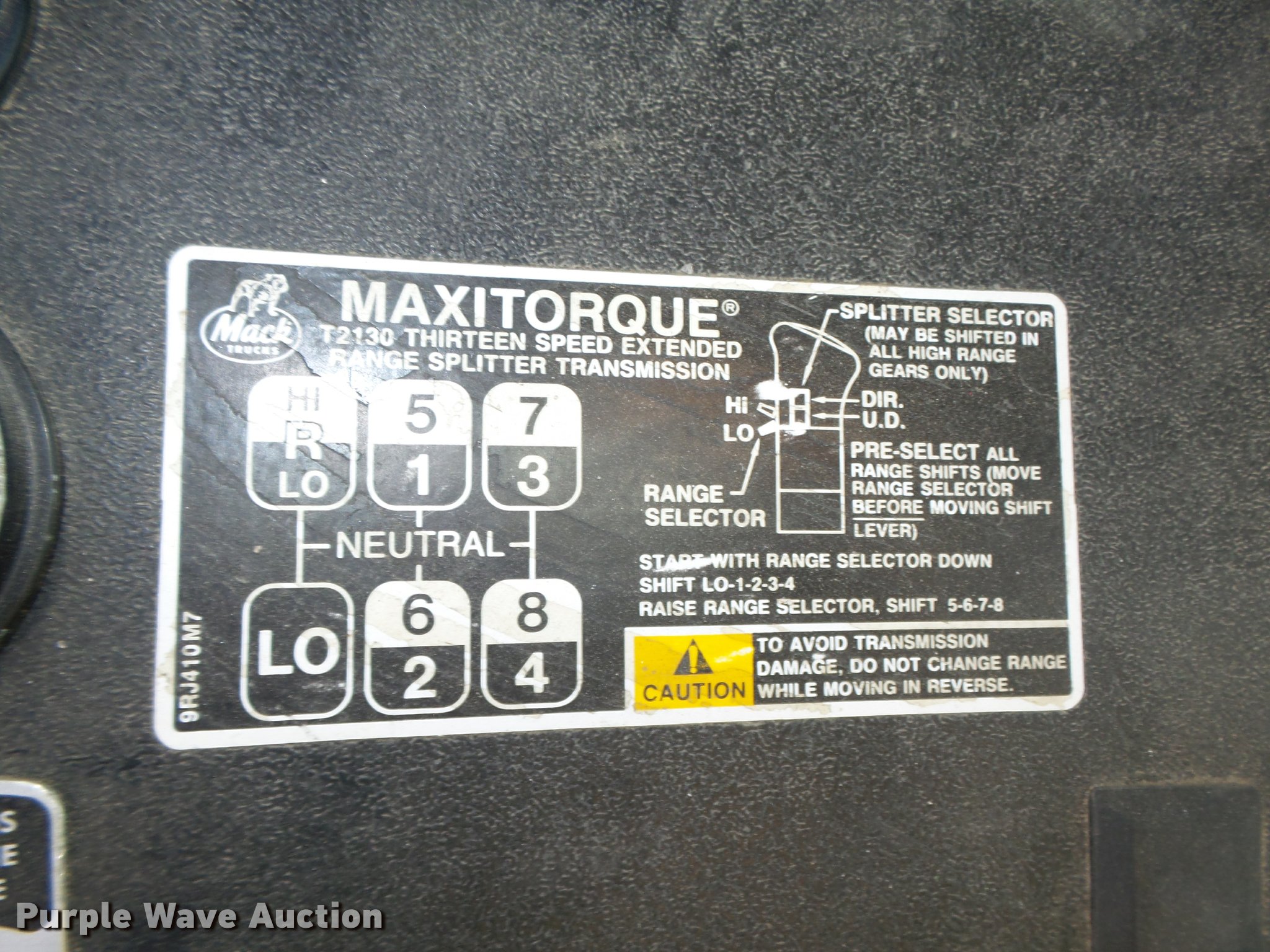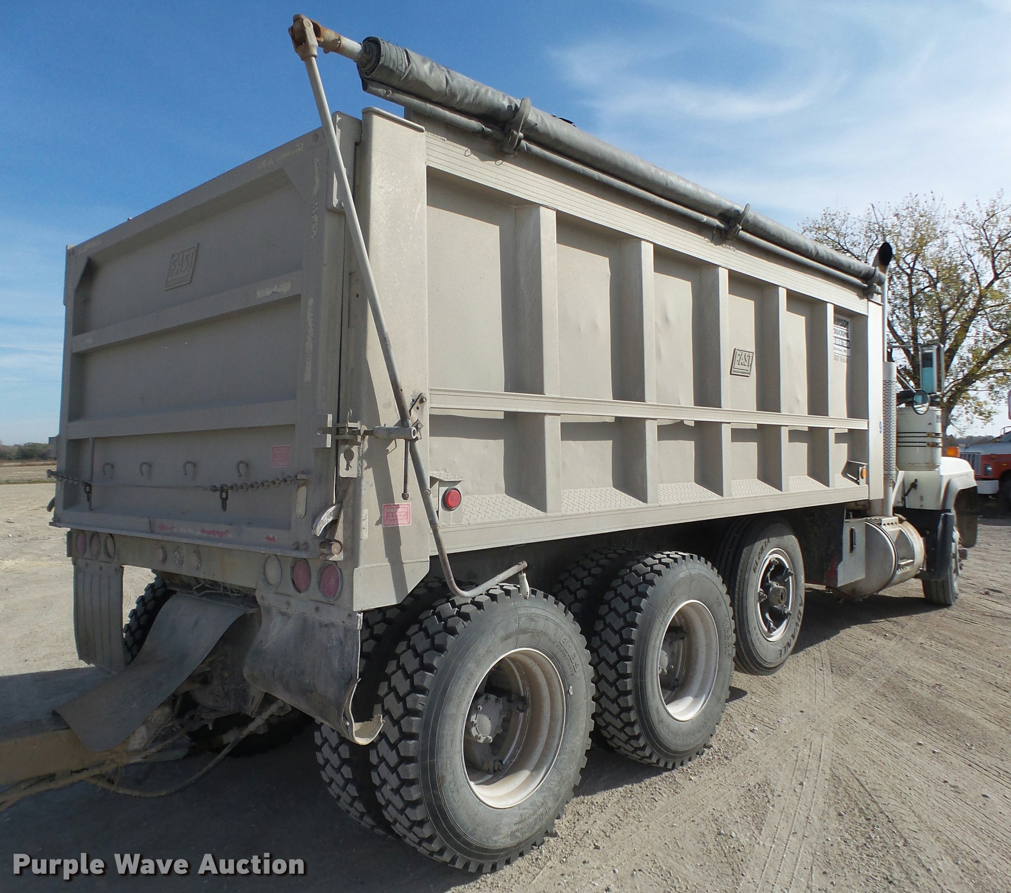 Purple Wave is selling a used Construction Dump Truck in Nebraska. This item is a 2000 Mack RD688S dump truck with the following: 862,927 miles on odometer, 30,094 hours on meter, Miles and hours may vary, unit is still in use, Mack E7 12.0L L6 turbo diesel engine, 460 HP, Maxitorque T2130 13 speed manual transmission, Triple axle, Inter-axle differential lock, AC and heat, AM/FM, Heated mirrors, Air suspension seat, Cobra 29LTD Classic CB radio, Air ride cab, Backup alarm, Block heater, PTO, East aluminum dump bed, 16'L x 96"W, 53" side height, 2" x 8" wood side boards, 113" from ground to top of sides, Single ram hoist, Rollover tarp, Air operated end gate, Serial AB637, Dual fuel tanks, Rear electric, hydraulic, and gladhand couplers, Single rear exhaust stack, Tow hooks, Pintle hitch, Trailer wiring, 228" wheelbase, Camelback suspension, Air brakes, Engine brake, Aluminum front wheels, 285/75R24.5 front tires, 11R22.5 air lift pusher axle tires, 11R22.5 rear tires, Remanufactured engine installed June 2014, Remanufactured transmission installed June 2015, Seat torn, Windshield cracked, Trailer is not included, Unit# 9