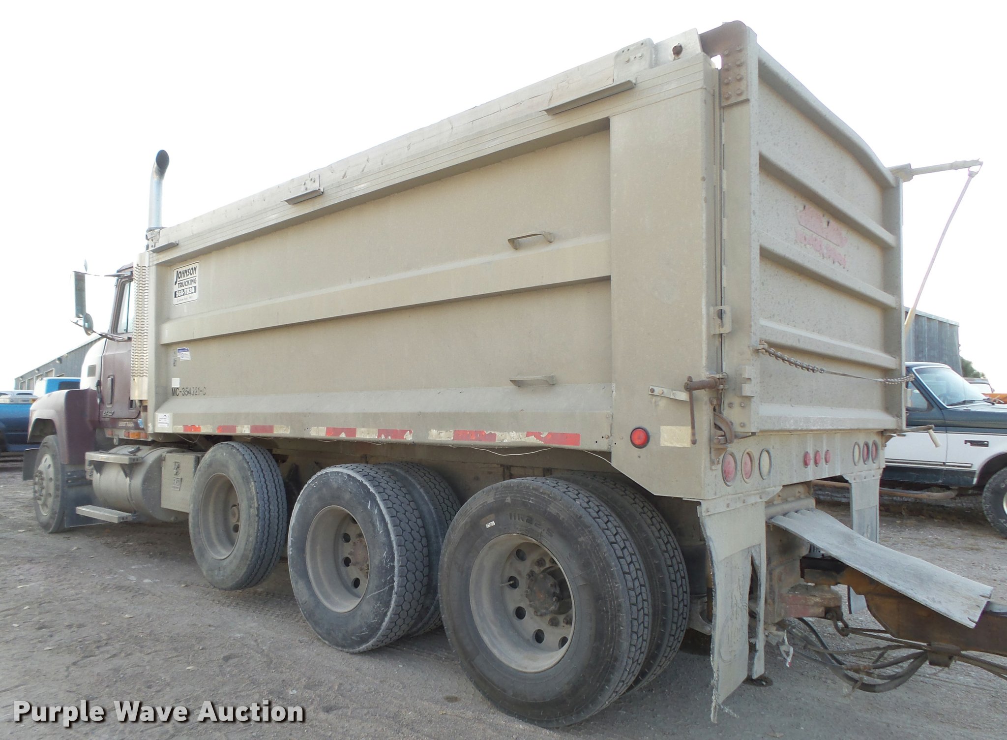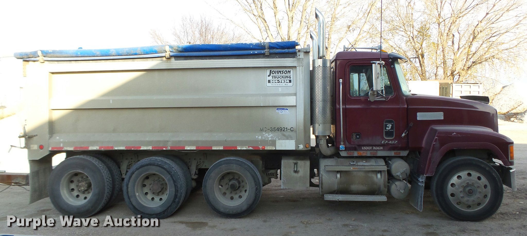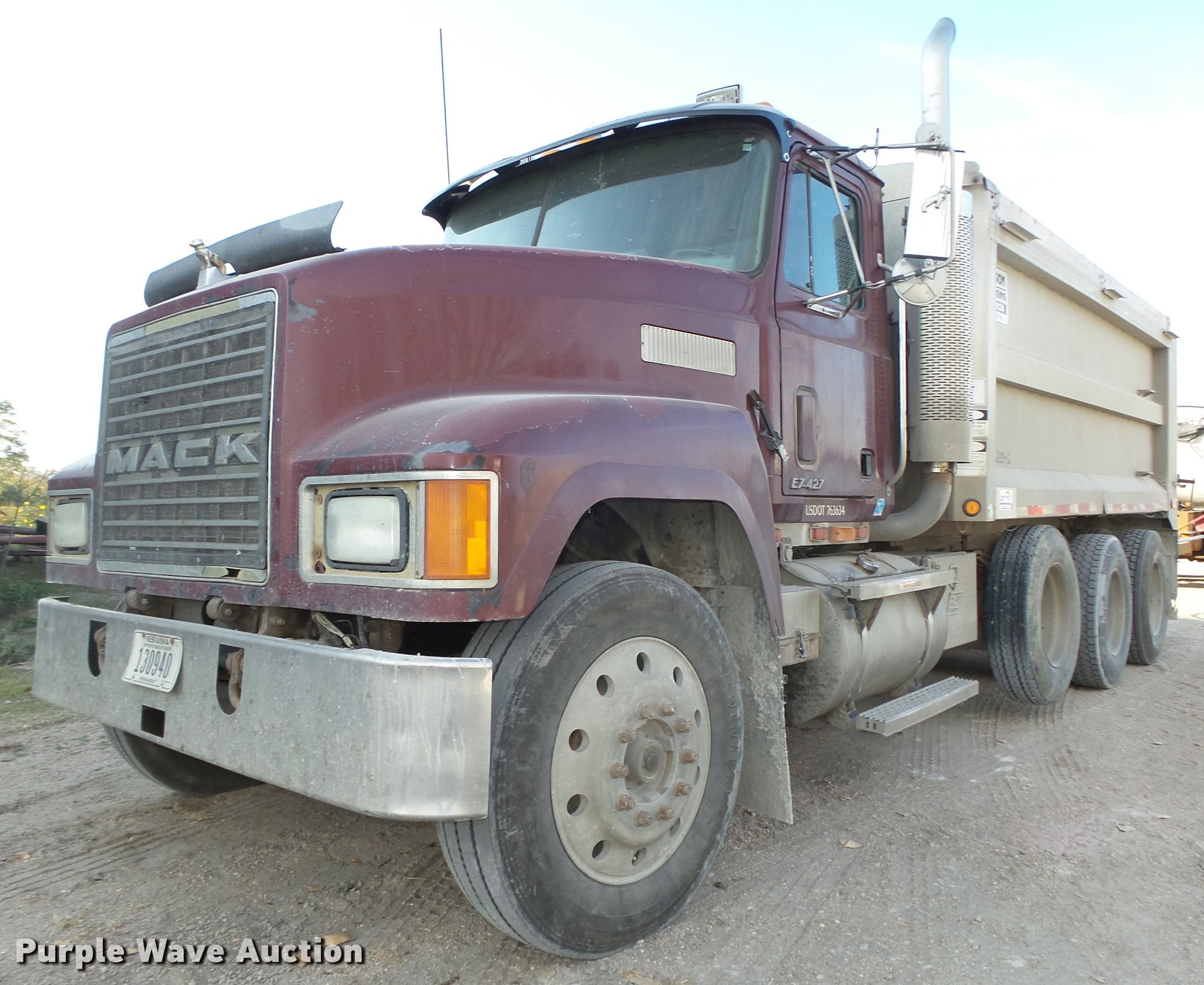 Purple Wave is selling a used Construction Dump Truck in Nebraska. This item is a 1998 Mack CH613 dump truck with the following: 143,690 miles on odometer, 38,335 hours on meter, Mack E7 12.0L L6 turbo diesel engine, 460 HP, Mack Maxitorque 13 speed manual transmission, Triple axle, AC and heat, Cruise, AM/FM/CD, cobra 29 CTD Classic CB radio, Heated mirrors, Air suspension seat, Air ride cab, Block heater, Exterior visor, PTO, Aluminum dump bed, 16'L x 96"W, 2" x 6" wood sideboards, 110" from ground to top of sideboards, Single ram hoist, Air operated end gate, Roll tarp, Toolboxes, Dual fuel tanks, Dual rear exhaust, Trailer wiring, Glad hand couplers, Hydraulic couplers, 230" wheelbase, Air suspension, Air brakes, Engine brake, Aluminum wheels, 285/75R24.5 front tires, 295/75R22.5 pusher axle tires, 11R22.5 rear tires, Trailer not included, Unit# 6