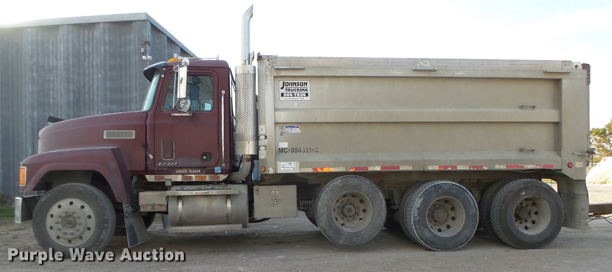 1998 Mack CH613 dump truck. 143,690 miles on odometer, 38,335 hours on meter, Mack E7 12.0L L6 turbo diesel engine 460 HP, Mack Maxitorque 13 speed manual transmission, Triple axle, AC and heat, Cruise, AM/FM/CD, cobra 29 CTD Classic CB radio, Heated mirrors, Air suspension seat, Air ride cab, Block heater, Exterior visor, PTO, Aluminum dump bed 16'L x 96"W, 2" x 6" wood sideboards, 110" from ground to top of sideboards, Single ram hoist, Air operated end gate, Roll tarp, Toolboxes, Dual fuel tanks, Dual rear exhaust, Trailer wiring, Glad hand couplers, Hydraulic couplers, 230" wheelbase, Air suspension, Air brakes, Engine brake, Aluminum wheels, 285/75R24.5 front tires, 295/75R22.5 pusher axle tires, 11R22.5 rear tires, Trailer not included, Unit# 6. Nebraska title. 1M2AA18C9WW077232. Johnson Trucking Sand & Gravel. 3163 S. 16th Street. Columbus, NE 68601